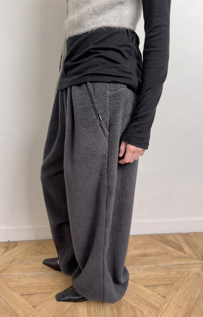 - シアリング素材のバンディングジョガーパンツ。