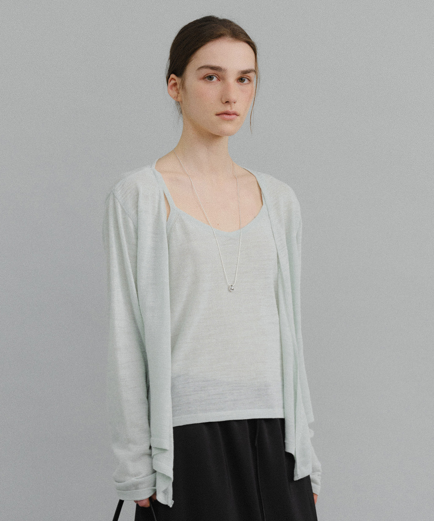 同じ糸で製作されたカーディガンとセットアップスタイリング時に最も魅力的なアイテムです。