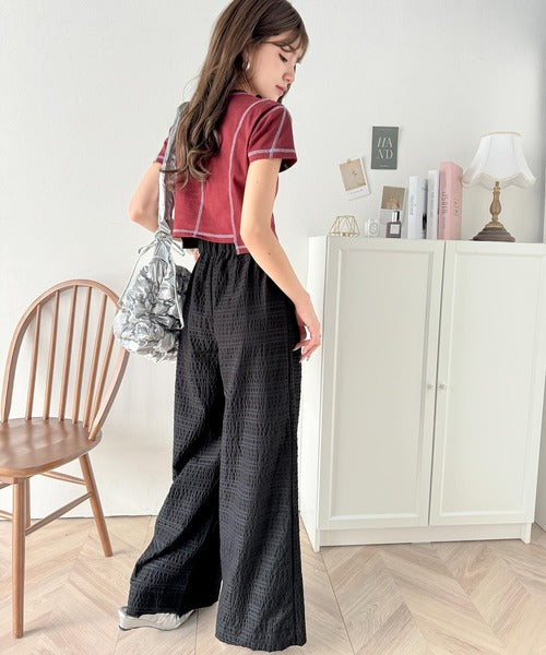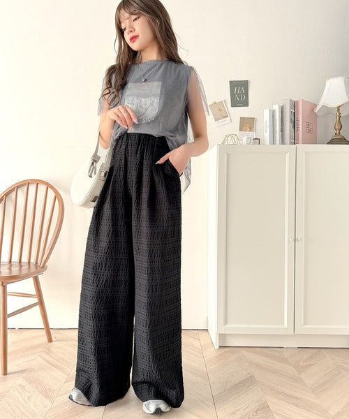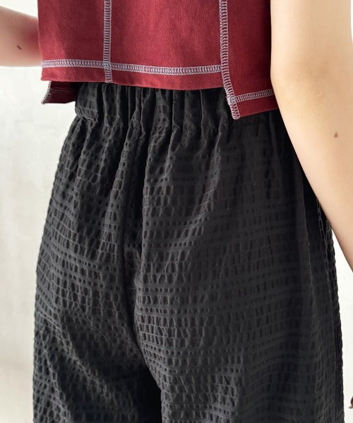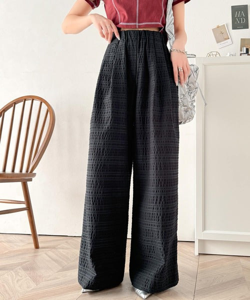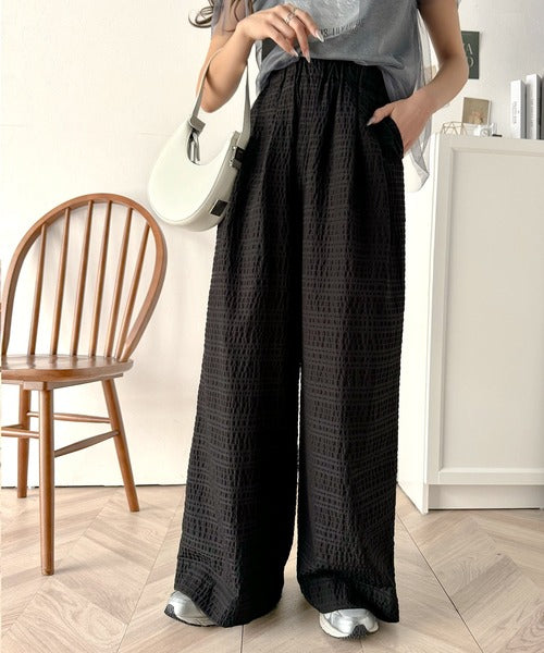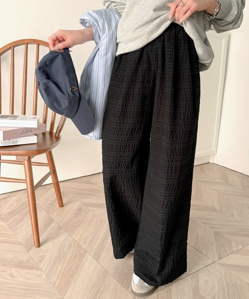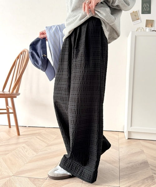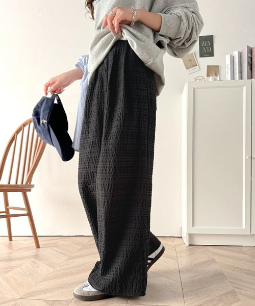 スタイリッシュデザイン&大人リラックシー。美脚魅せサッカー素材ワイドストレートイージーパンツ ce0940226