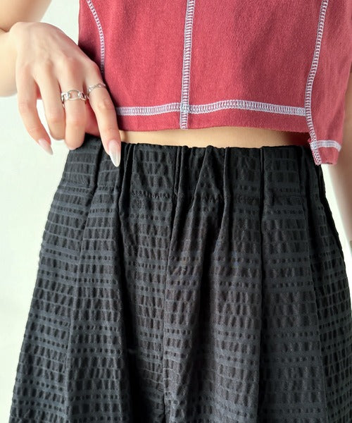 ウエストはよくあるゴムギャザーではなく、深めのタックを同時につくっているので、