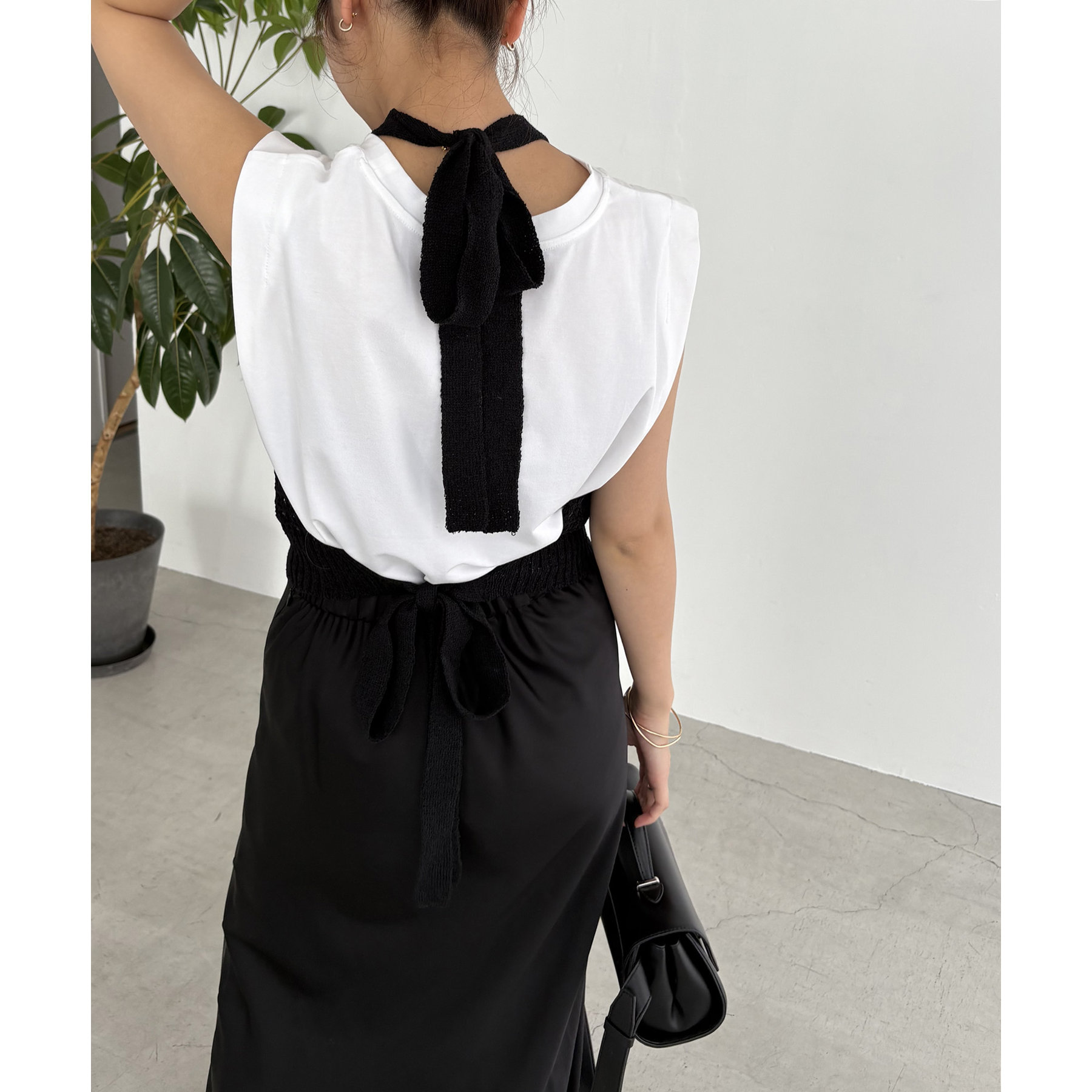 ・ホルターと裾のリボンは好みの長さで結べる