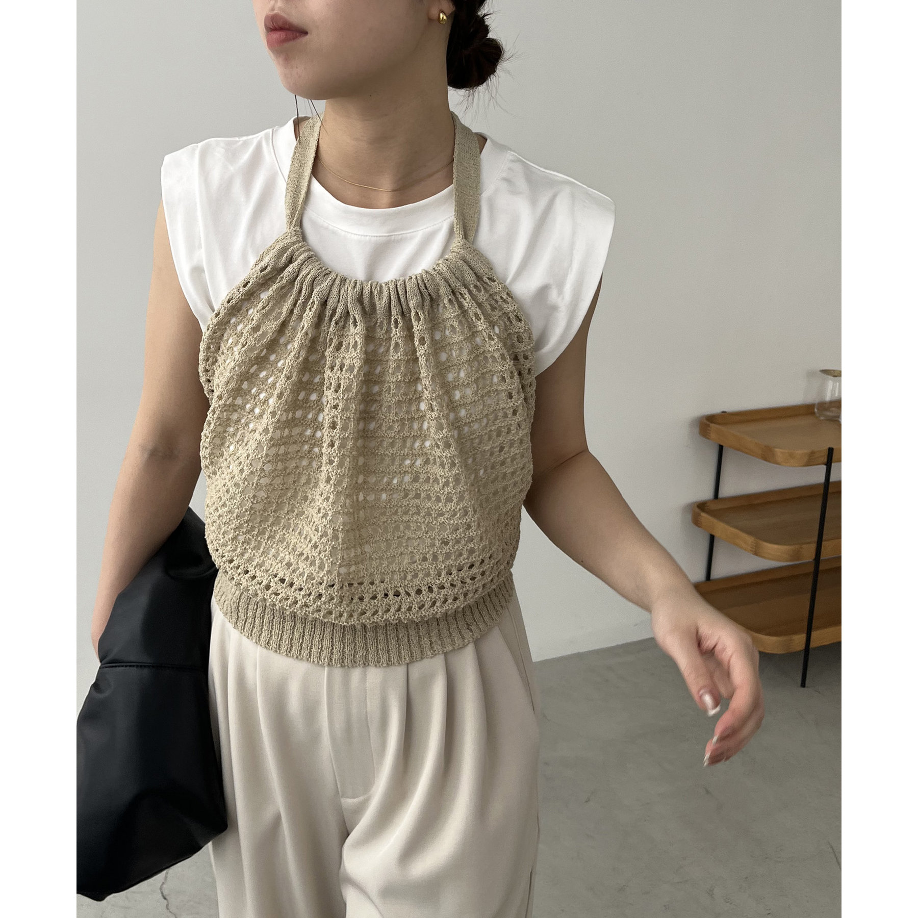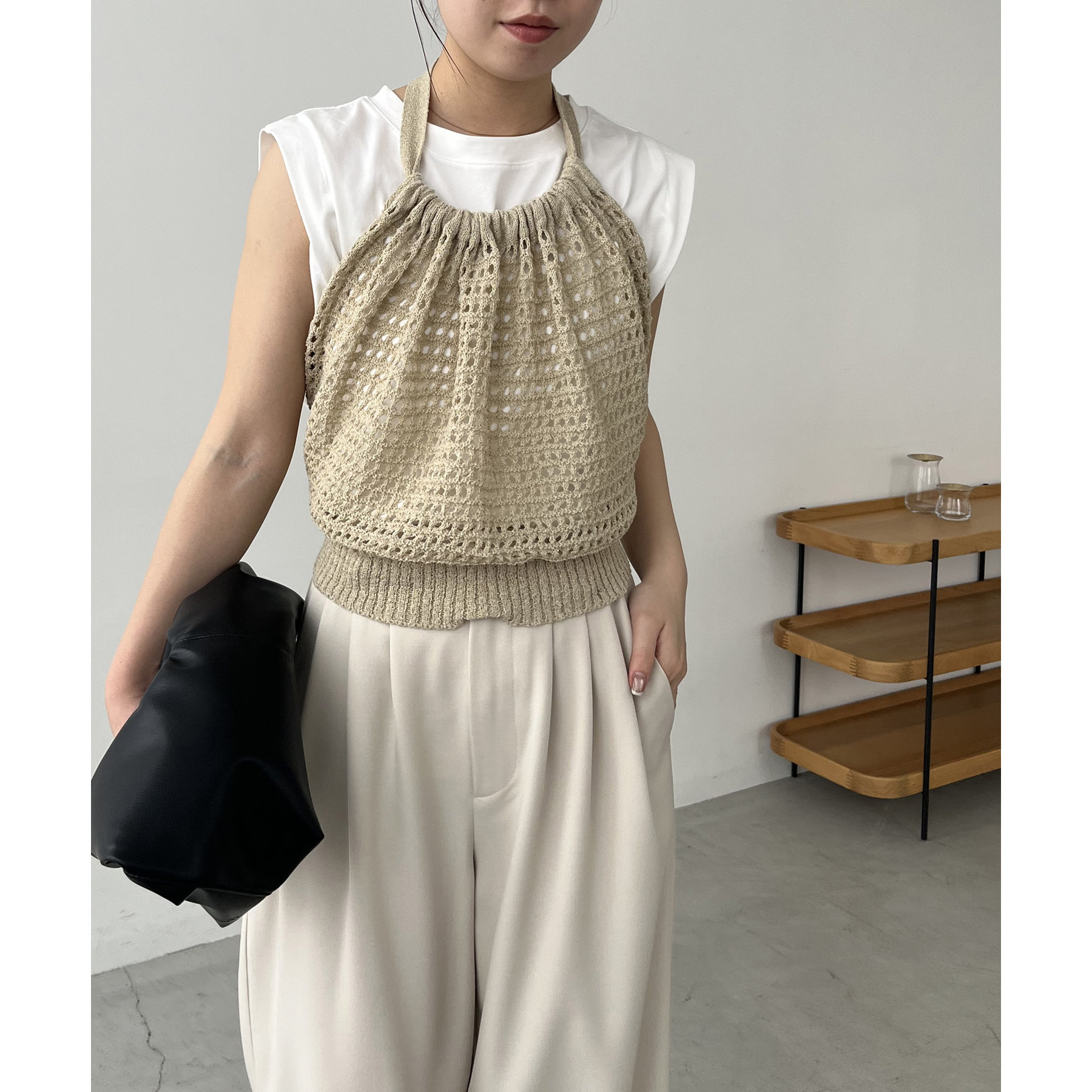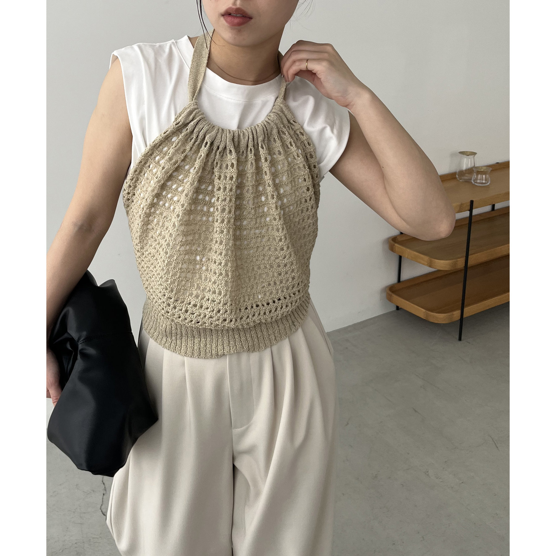 ホルターネックビスチェがセットの着回し万能トップス