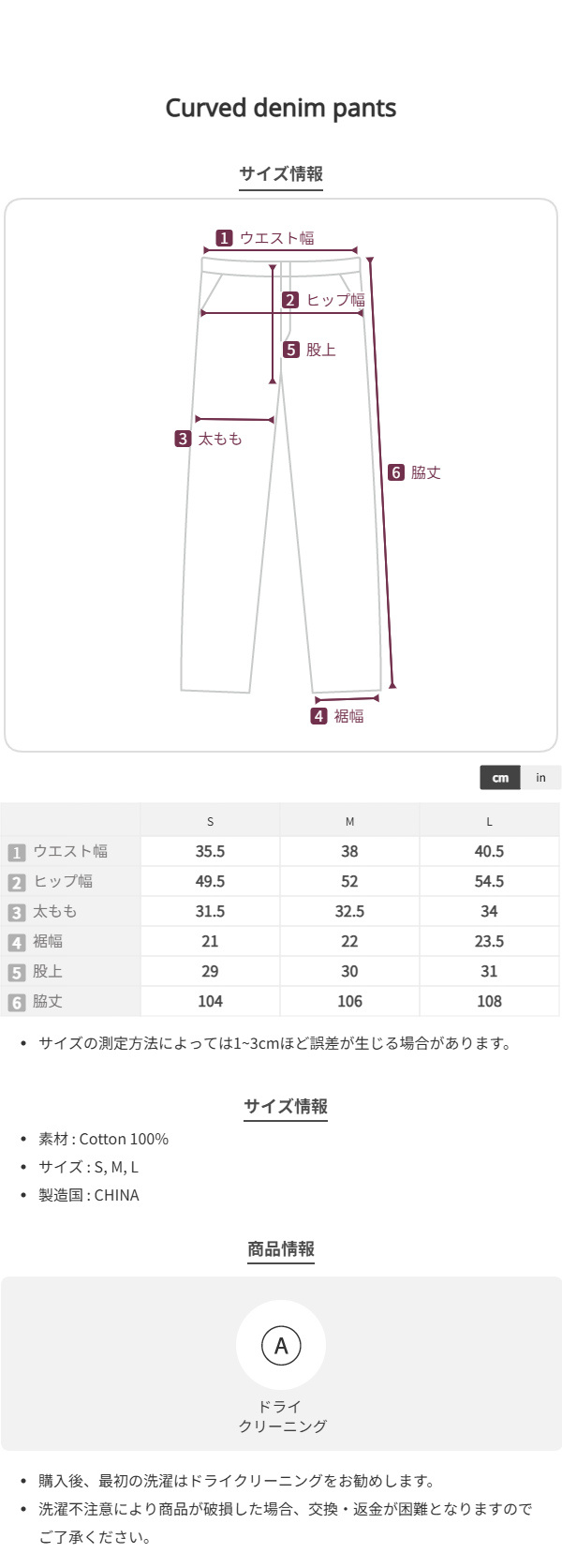 -不変染料で定着したカラーは、洗濯や摩擦による色移りがほとんどなく、白いTシャツや白いスニーカーと合わせても清潔感のある着こなしが可能です。