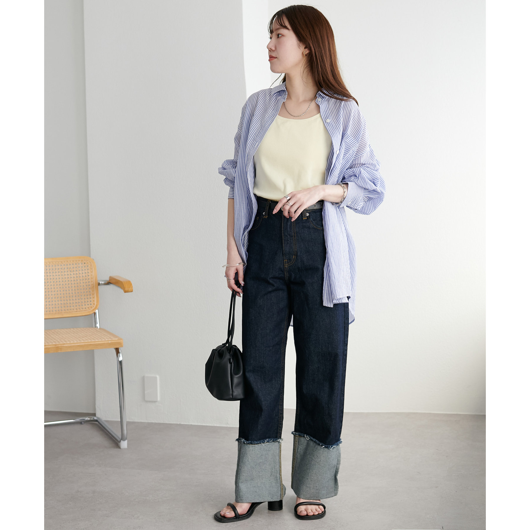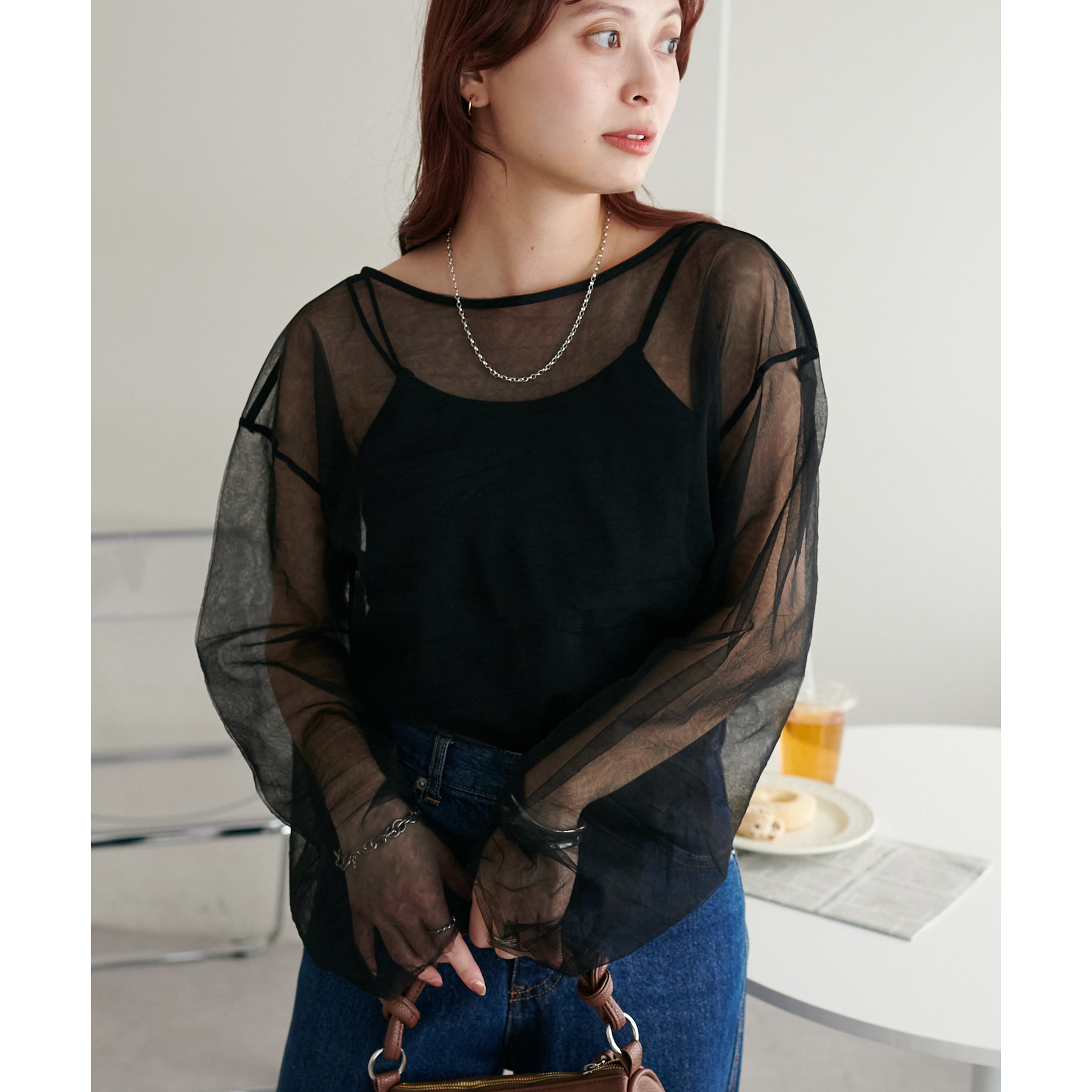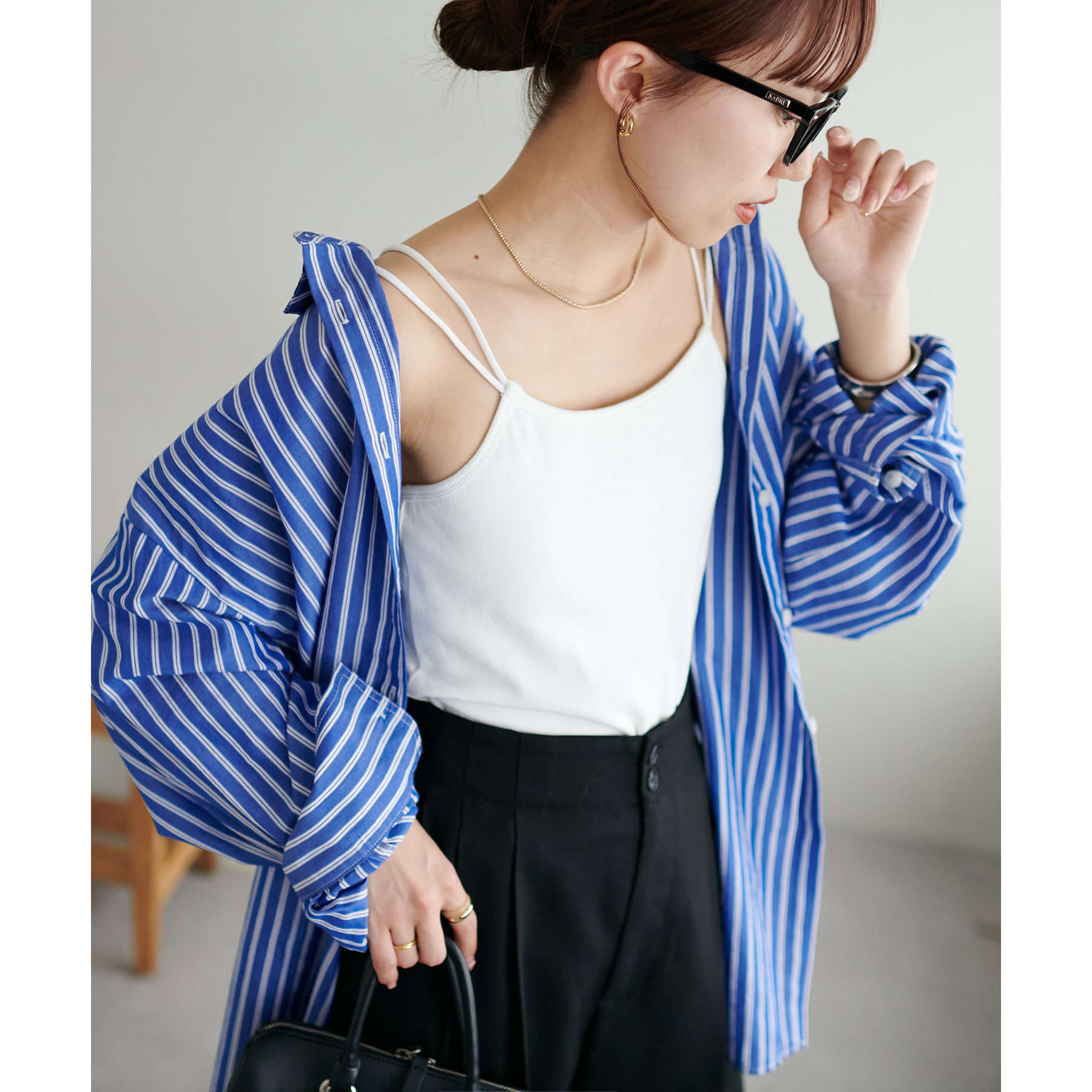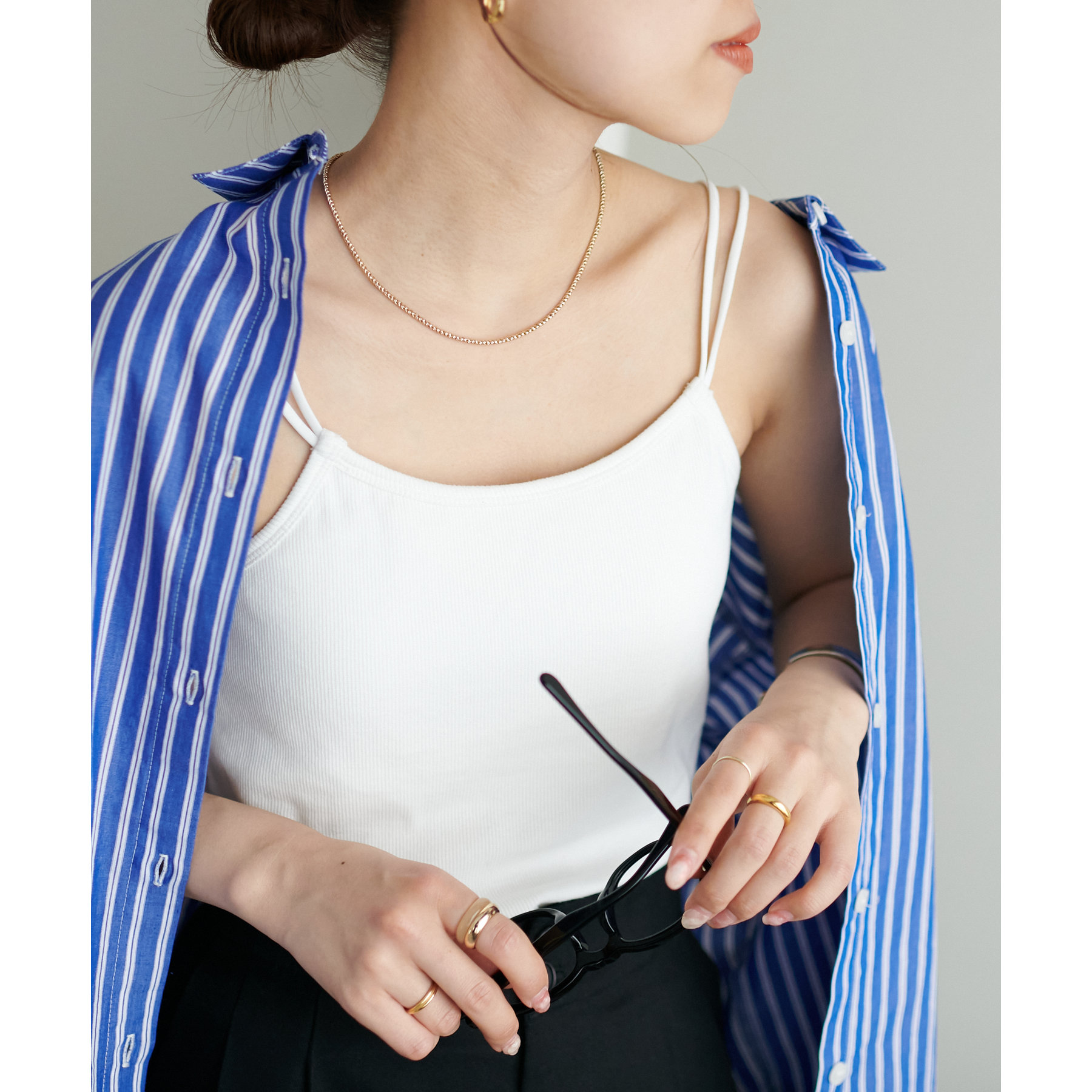シャツやシアートップスのインナーとしてはもちろん、1枚でさらっと着てもサマになる万能アイテム。