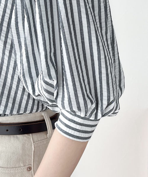 タックの入ったボリュームスリーブが可愛いブラウスシャツ。