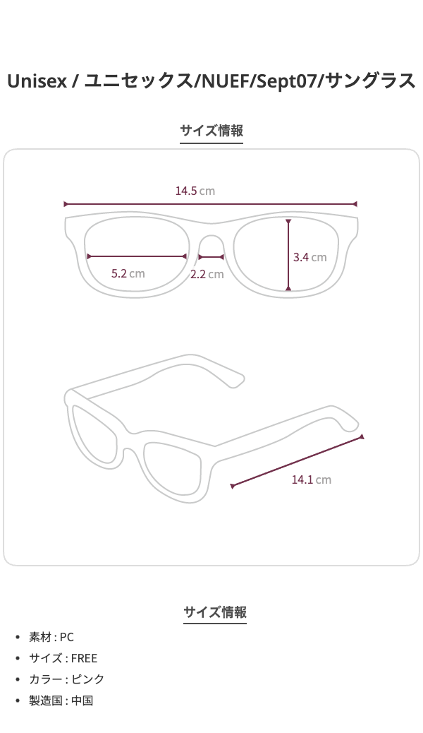 ユニセックス/NUEF/Sept07/サングラス/ピンク