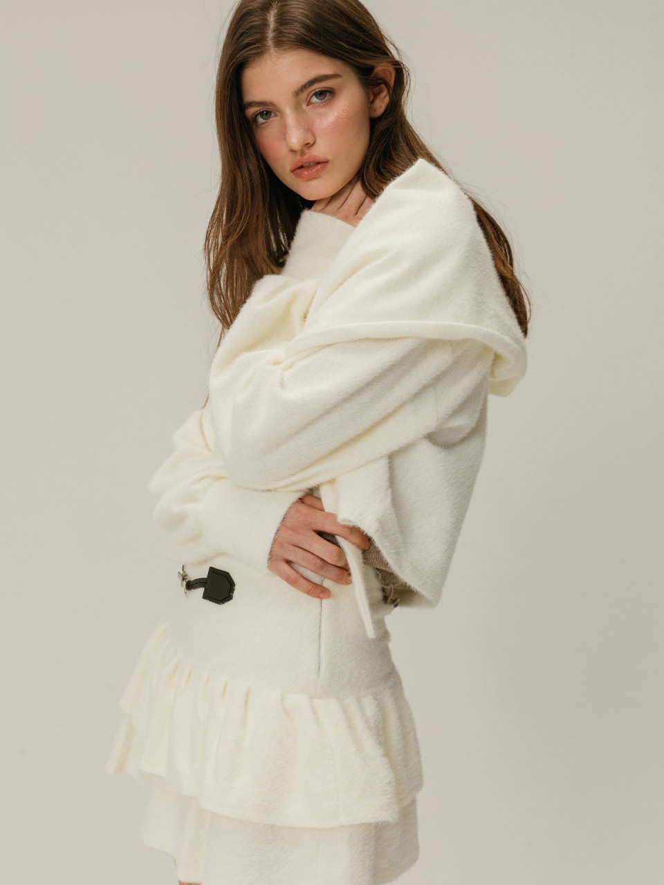 [K-POPアイドル着用] SNOWFLAKE TIERED SKIRT PANTS / IVORY