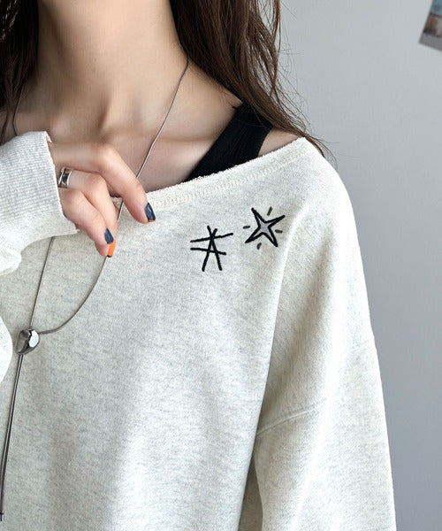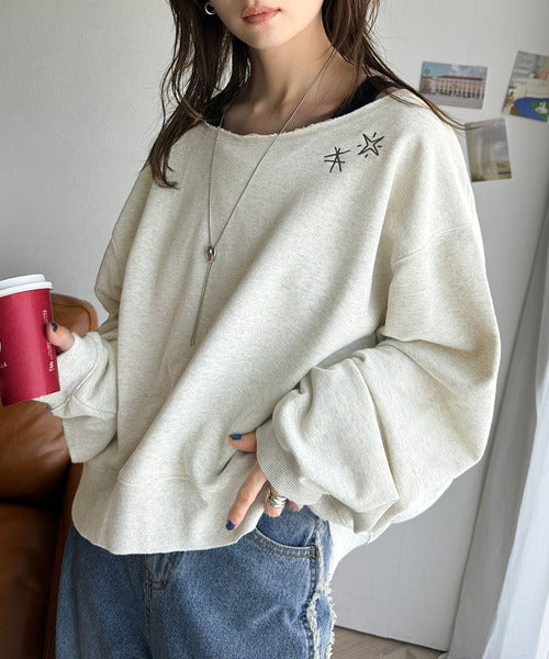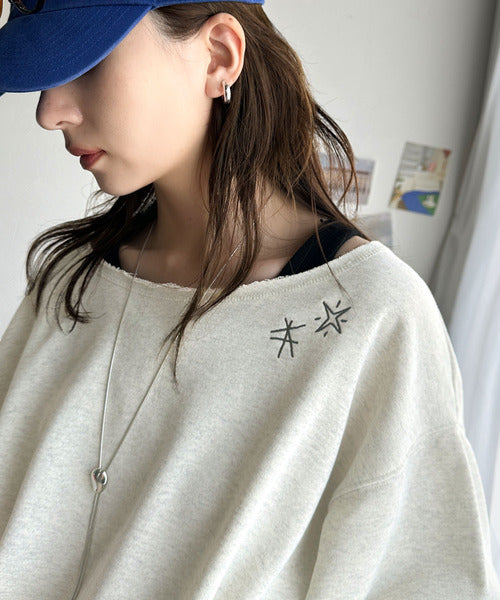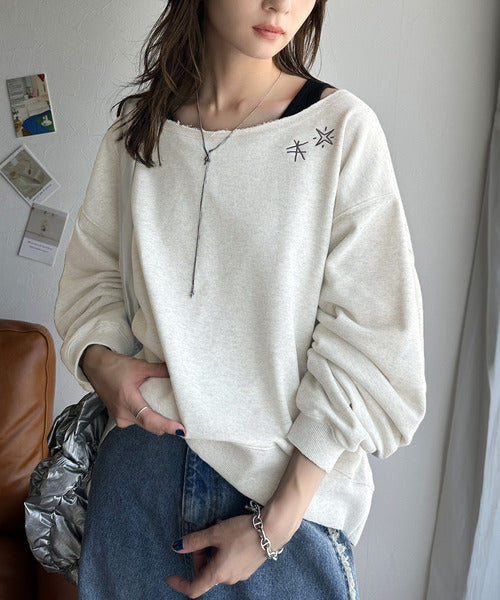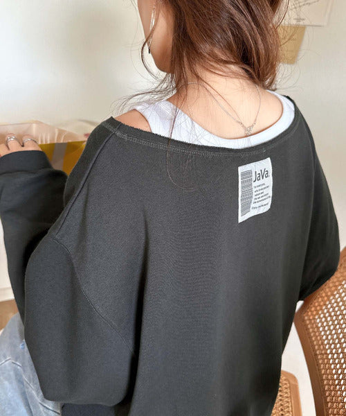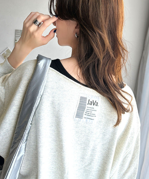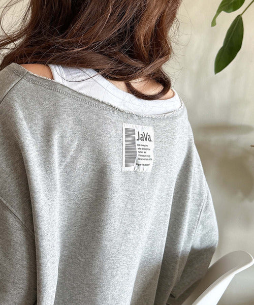 《JaVaジャバ 別注》裏毛素材衿元刺繍&バックロゴデザイン変形カットオフプルオーバー jv1050253