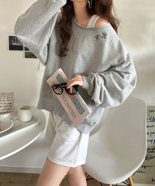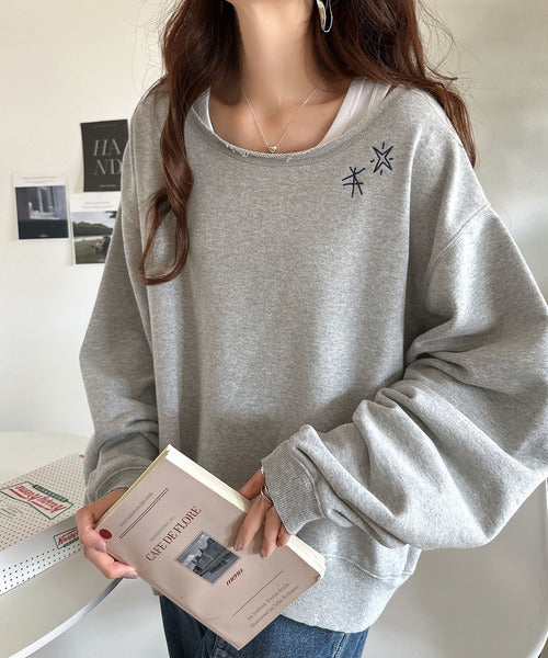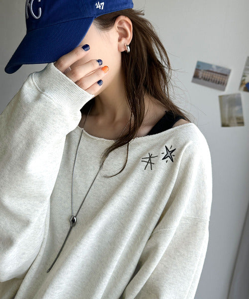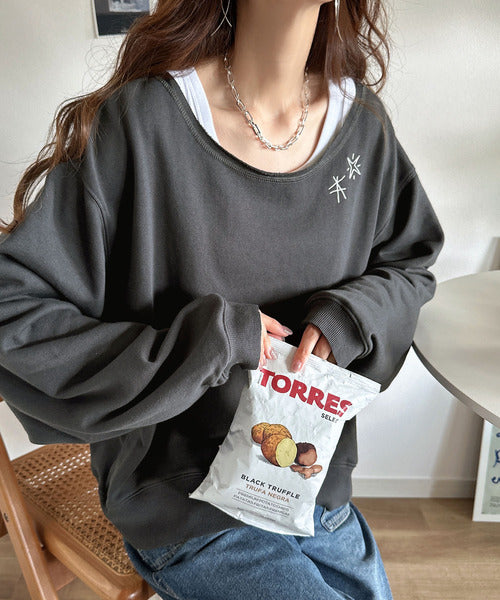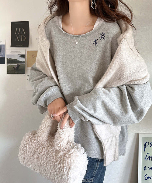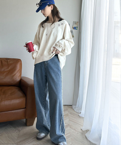 ゆったりとしたオーバーサイズの古着っぽいスウェットは体型を気にせずリラックスして着こなせるデザイン。