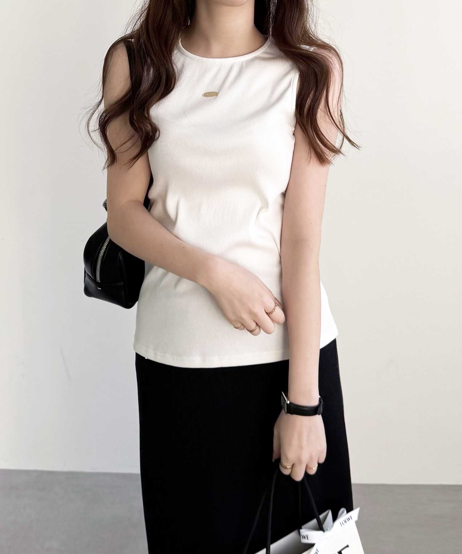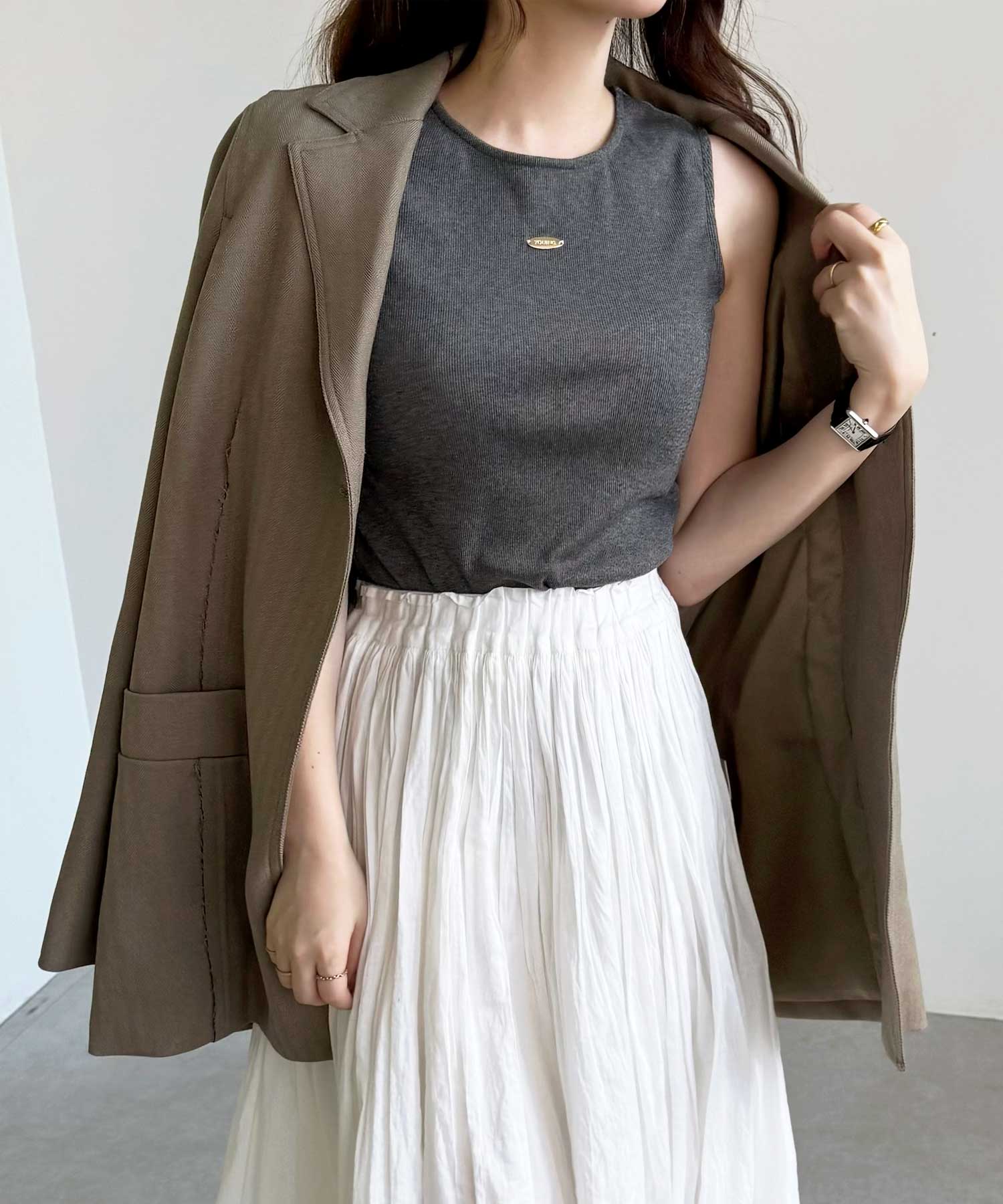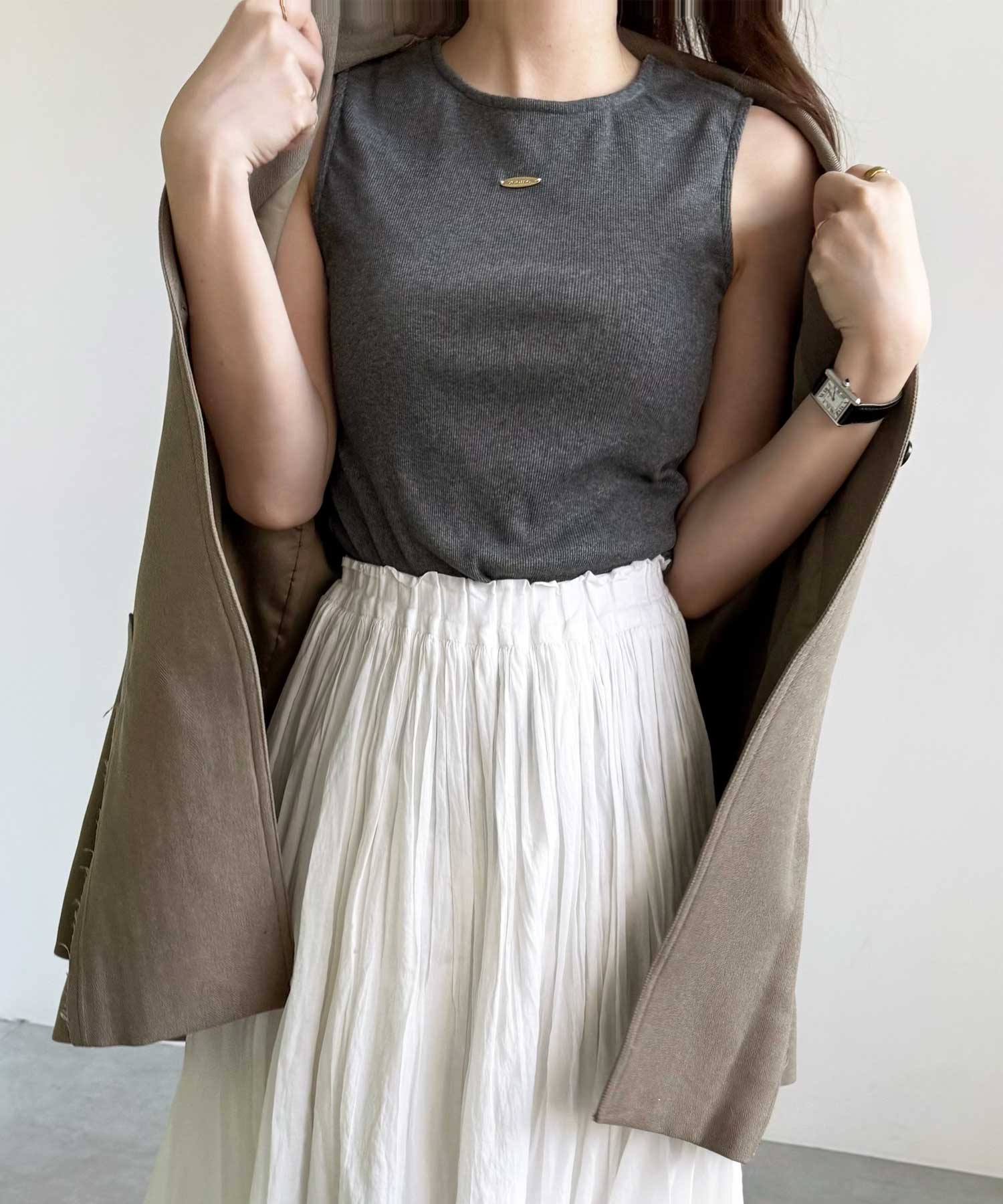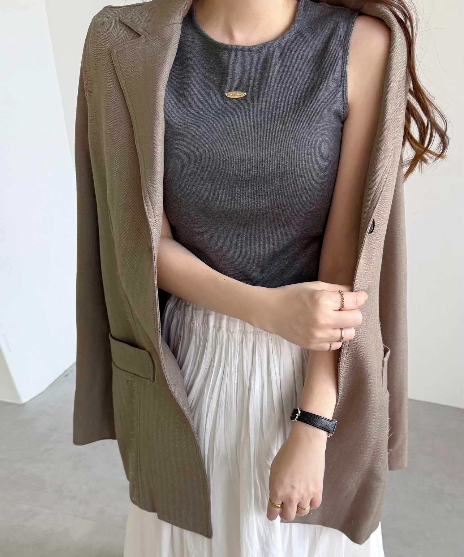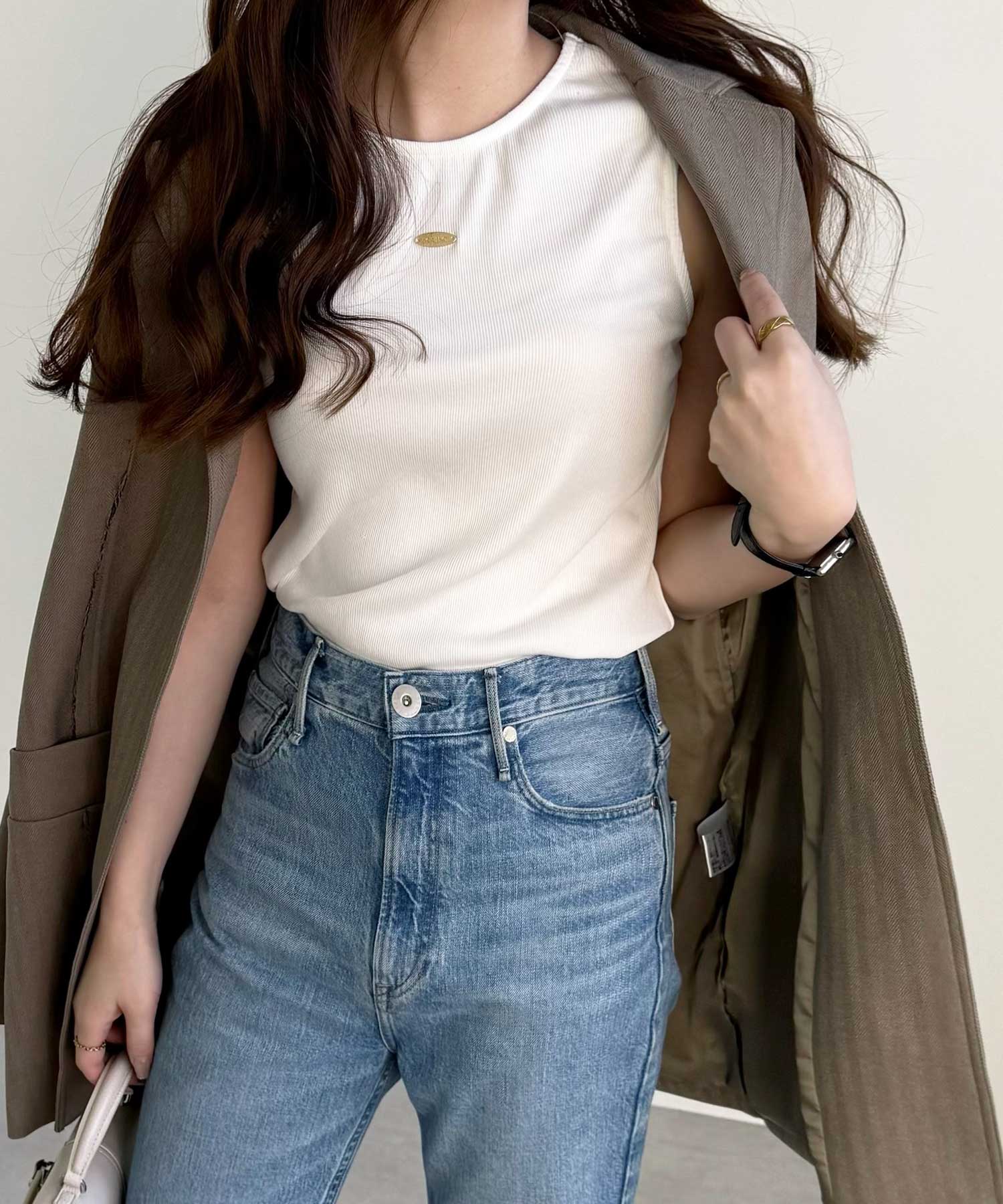 シンプルで着回し力のあるリブカットソーのタンクトップ。