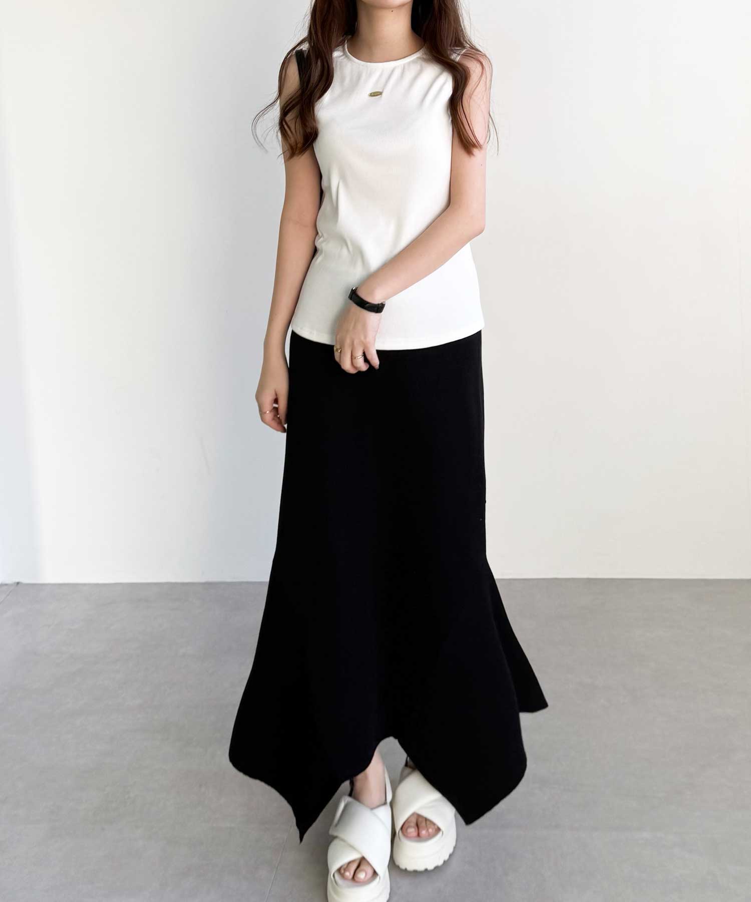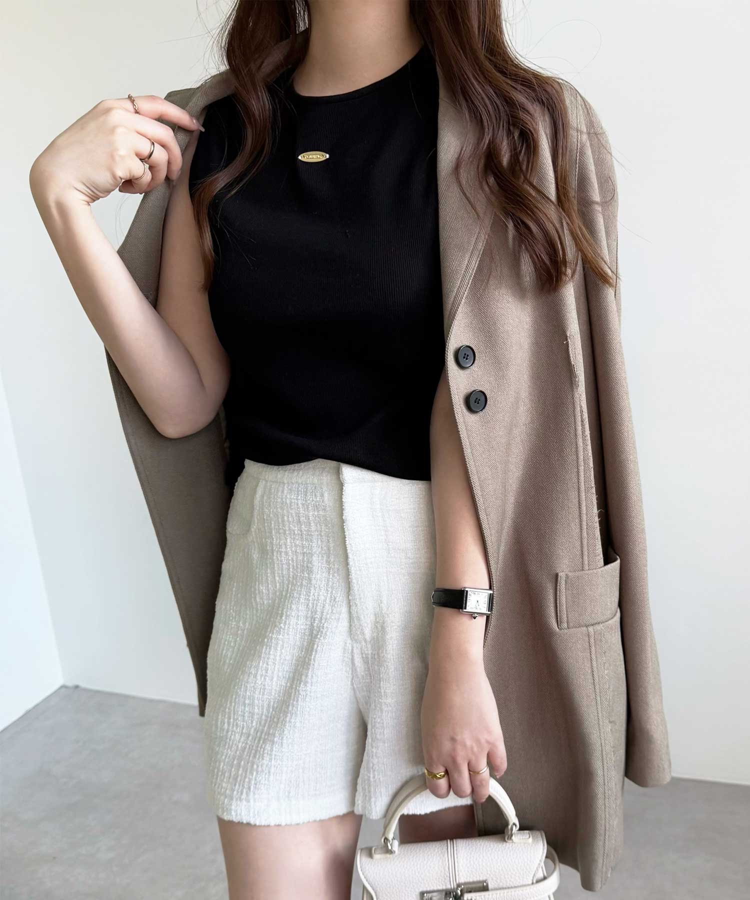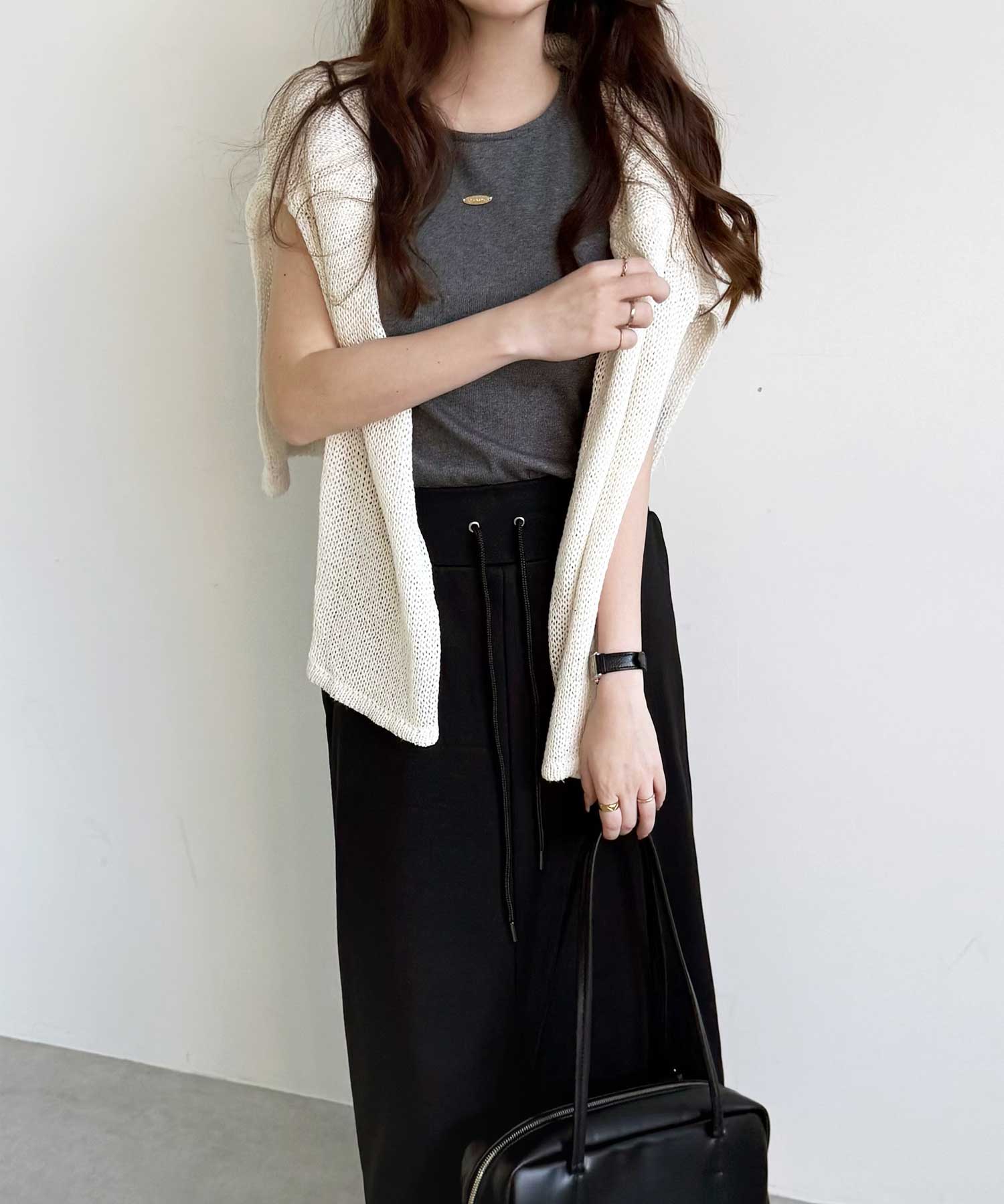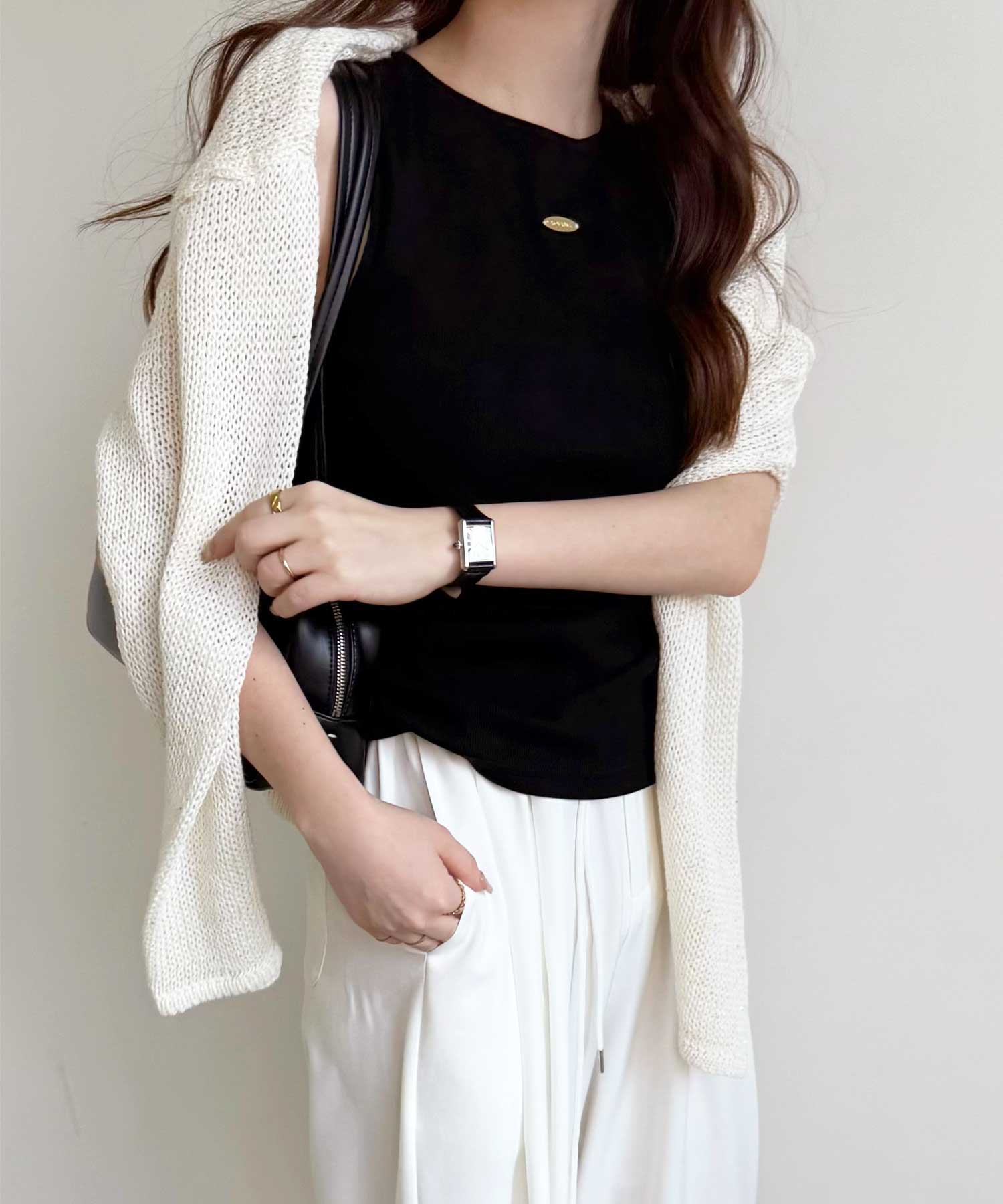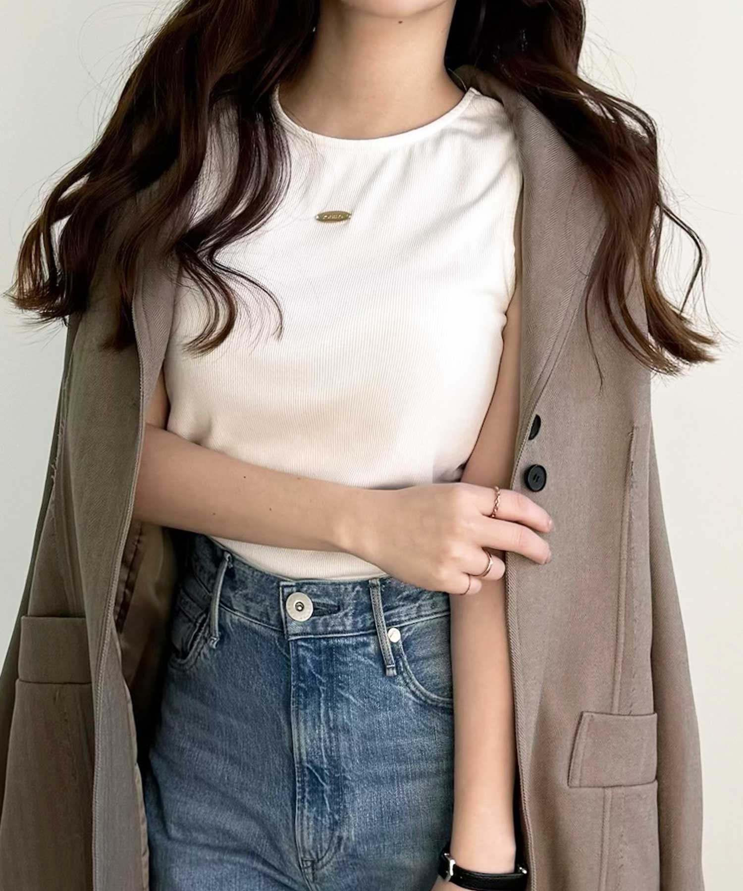 シンプルで着回し力のあるリブカットソーのタンクトップ。