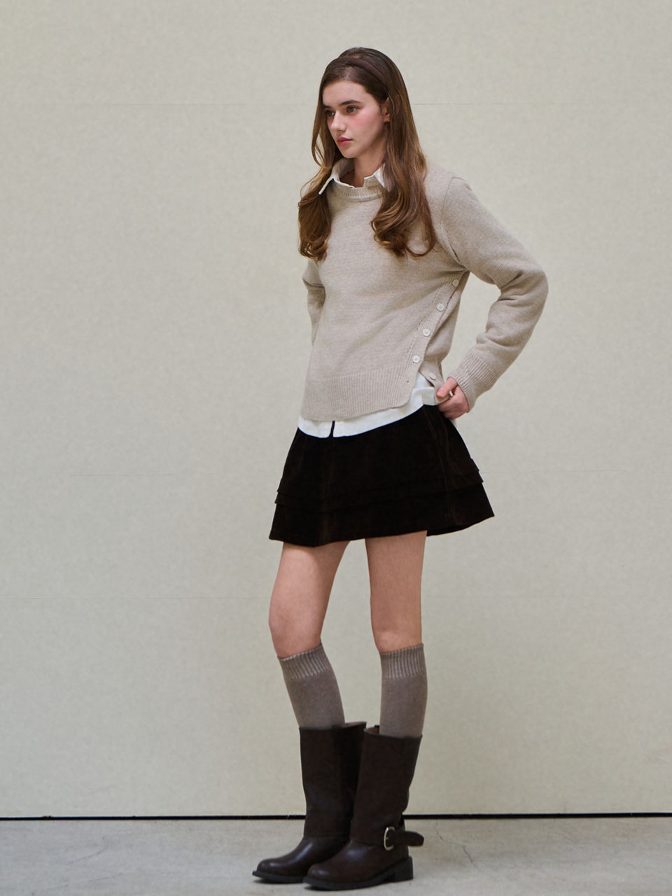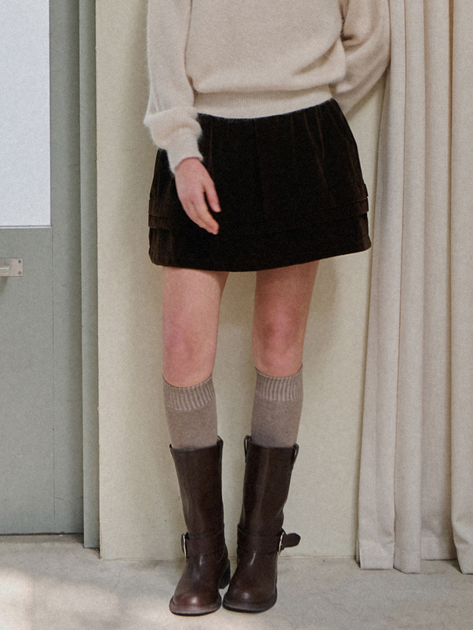 Velvet banding frill skirt_2 Colors