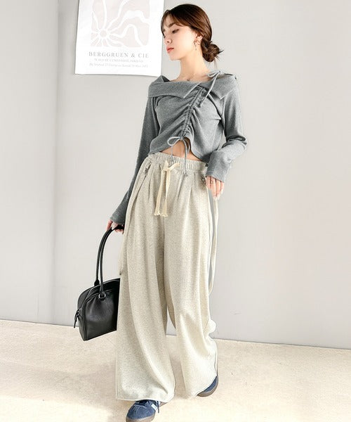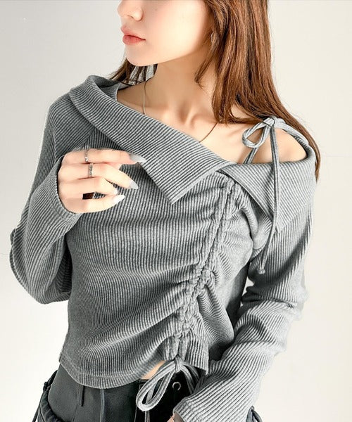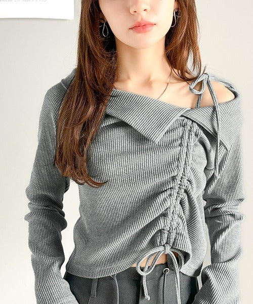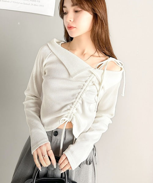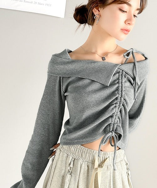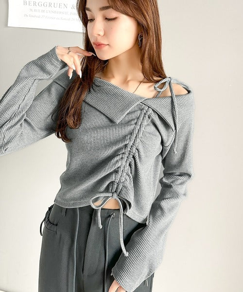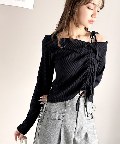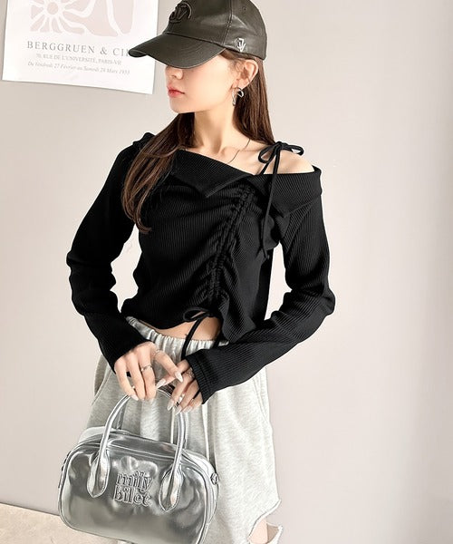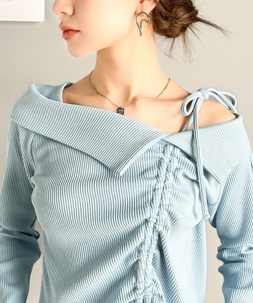 【mily bilet】エレガントな大人カジュアル。マルチウェイオフショル肩リボンギャザープルオーバー mi1329017