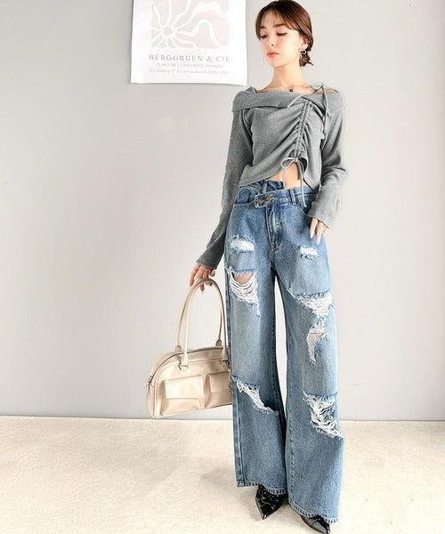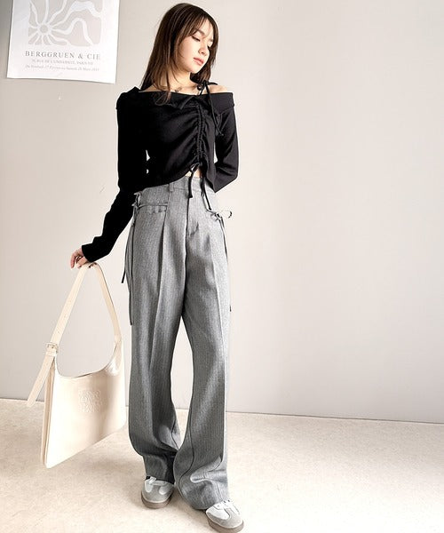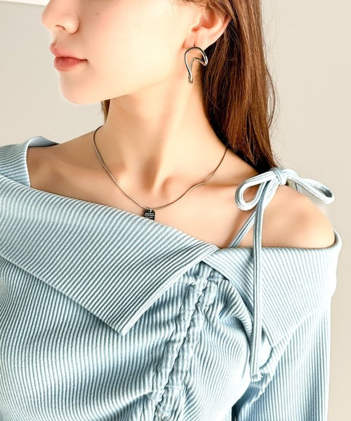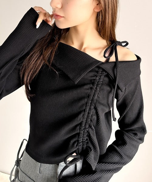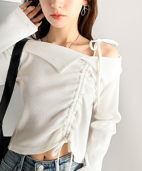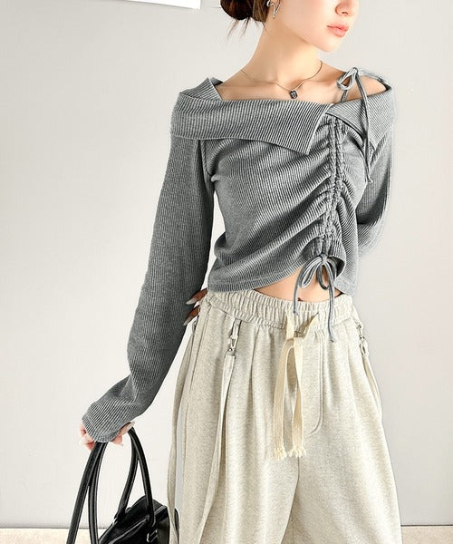 肩リボンが魅力的な、大人カジュアルトップスマルチウェイトップスの登場です。