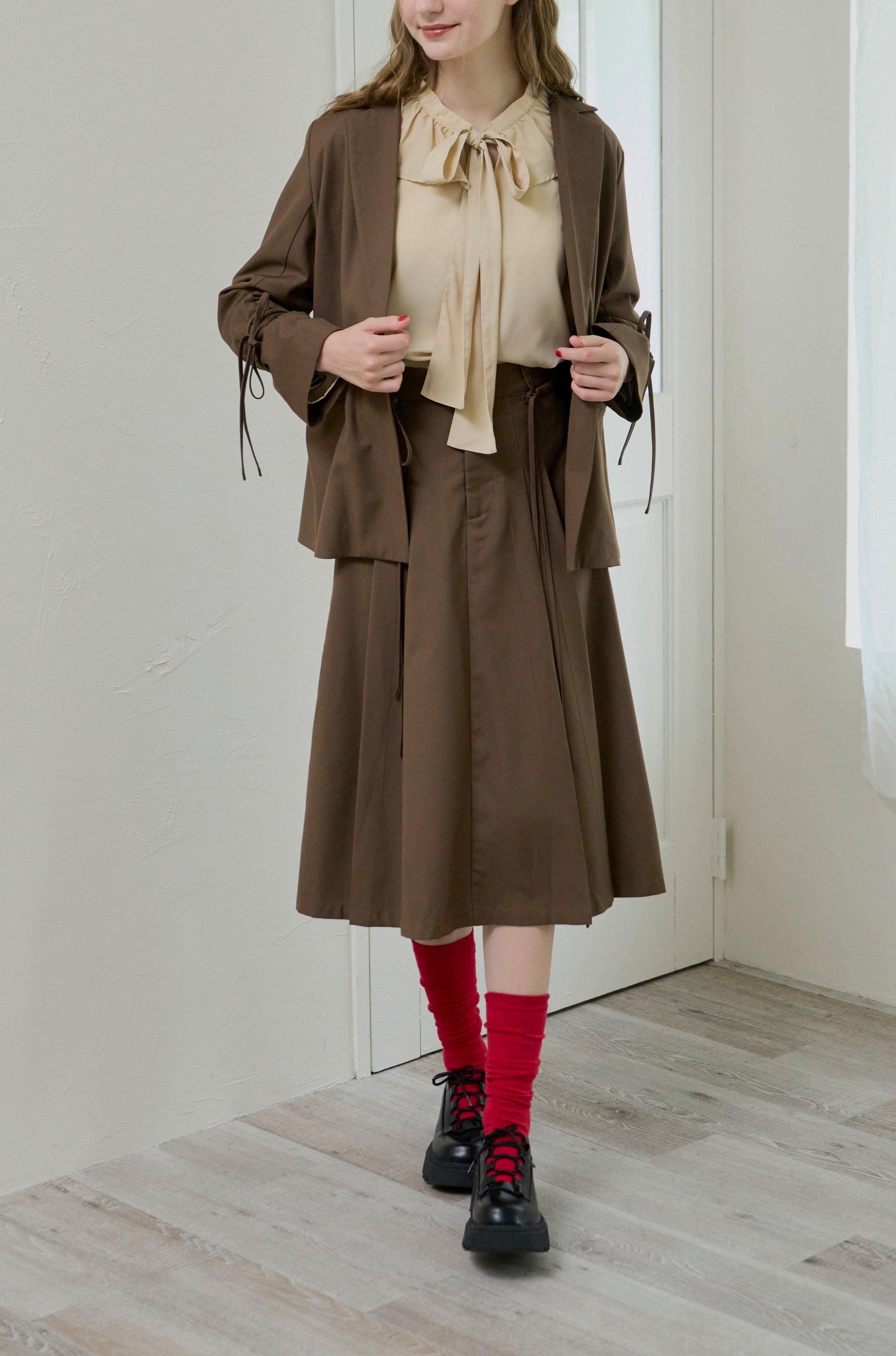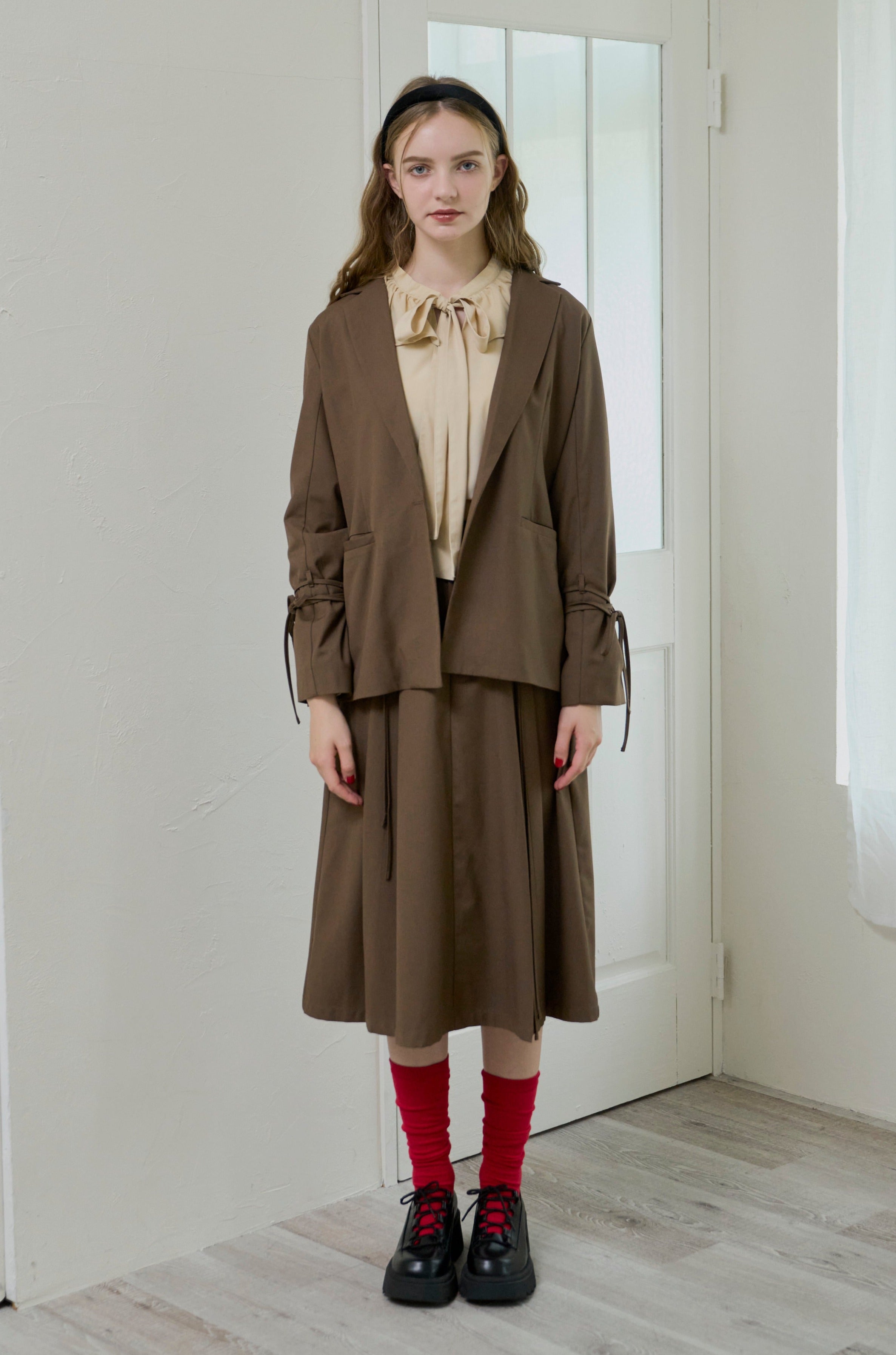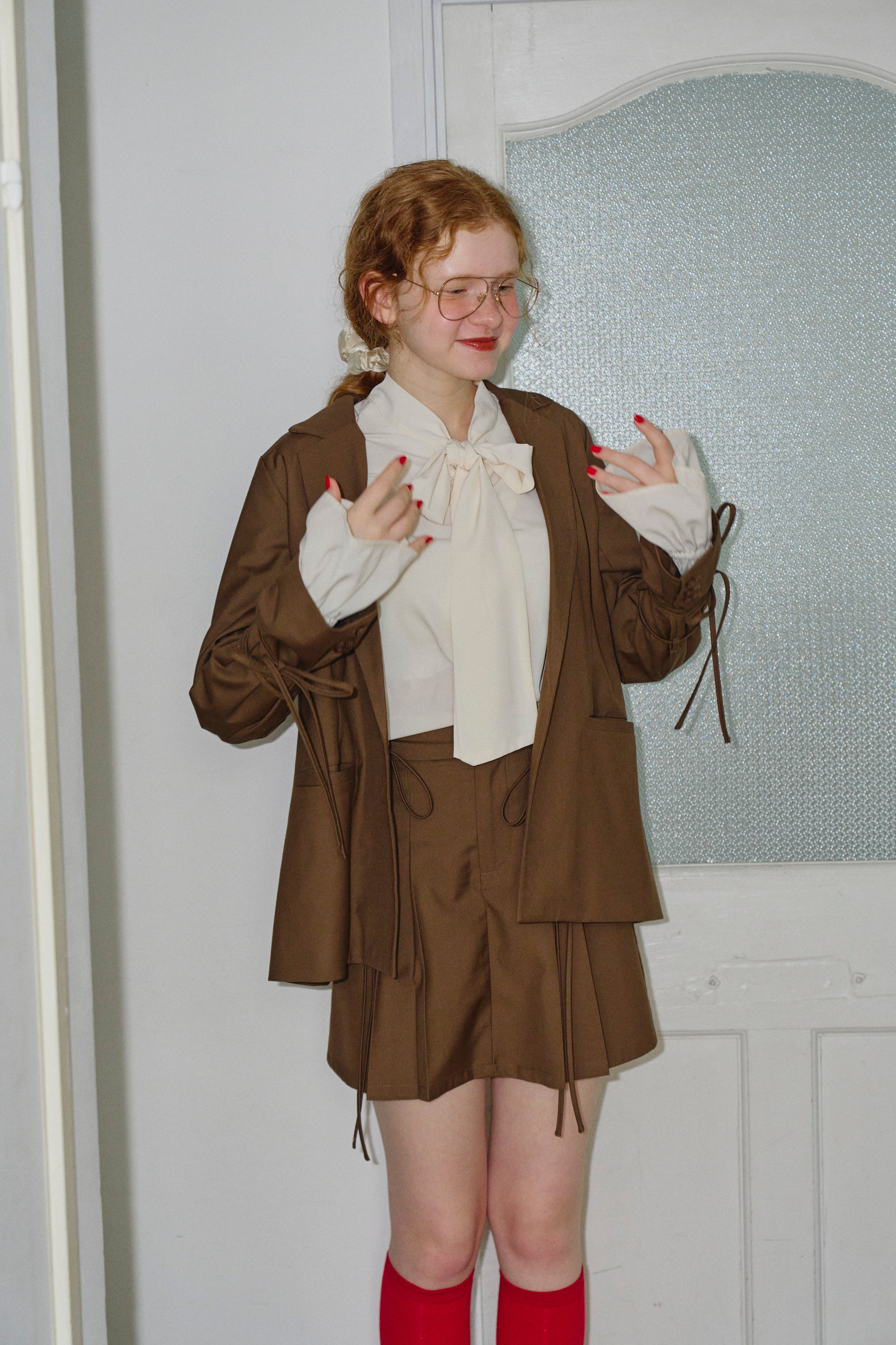 フロントのボウタイは結んでも、結ばずラフに垂らしても可愛い。