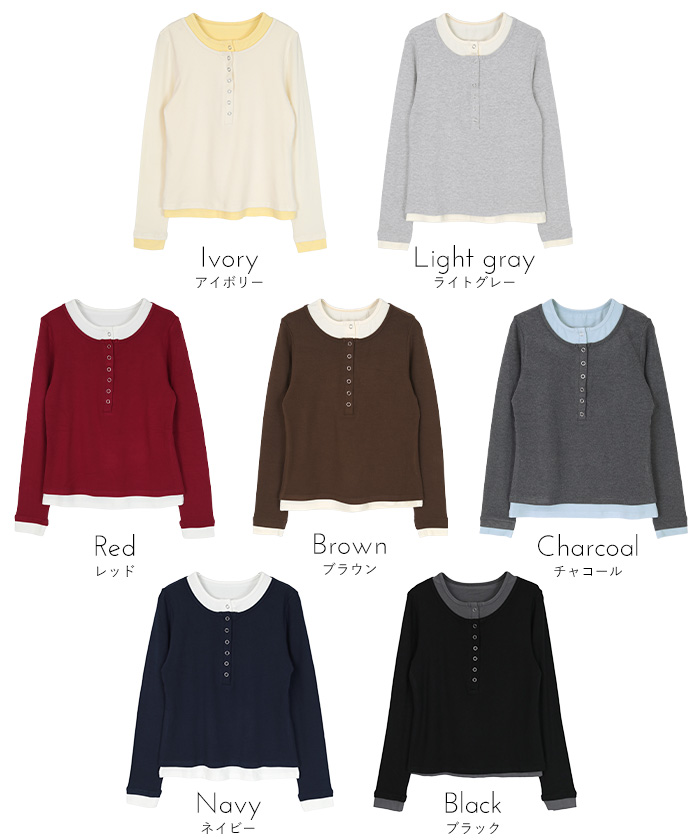 レイヤード風ヘンリーネックトップス