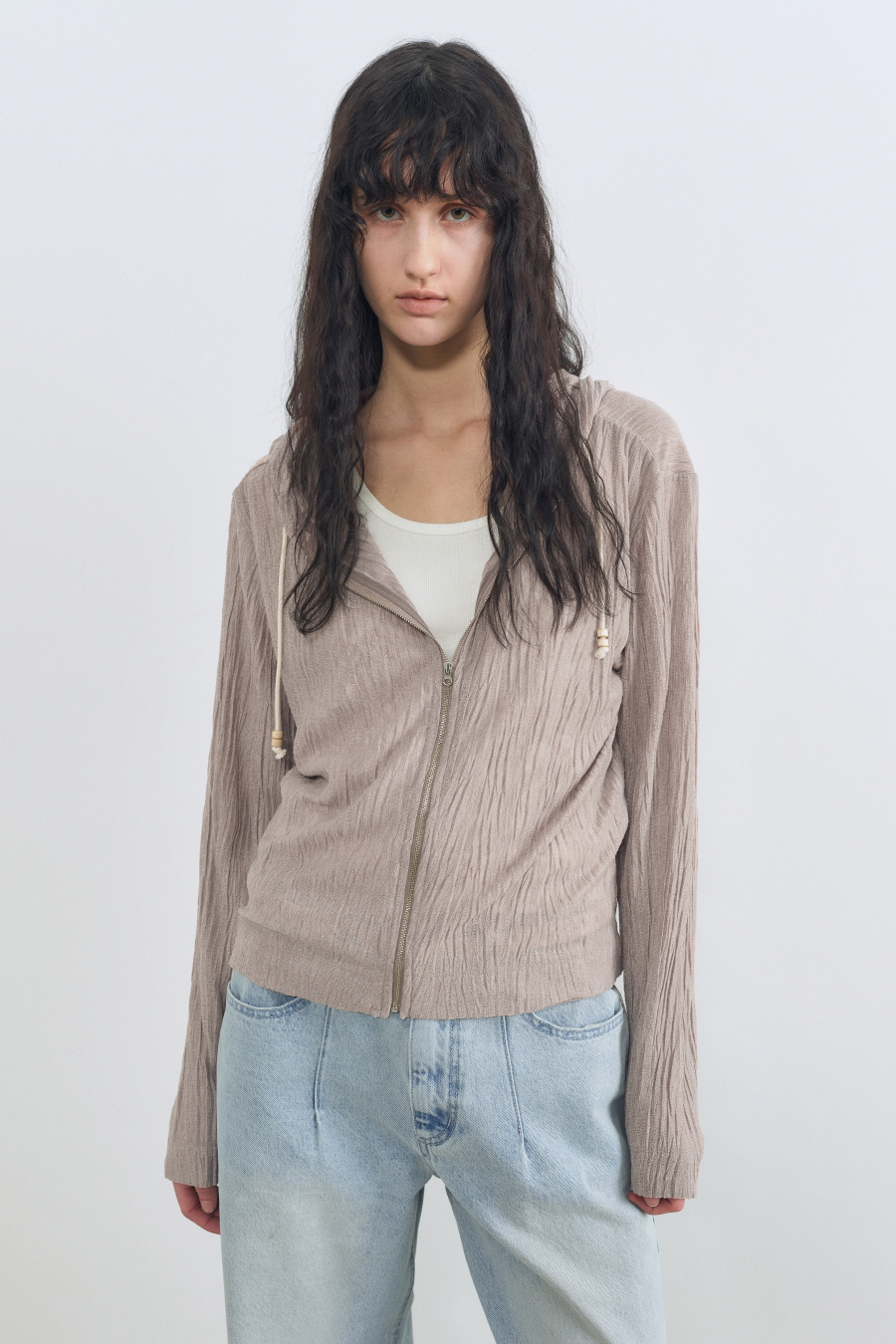 ナチュラルクリンクル フードジップアップ ASH BEIGE