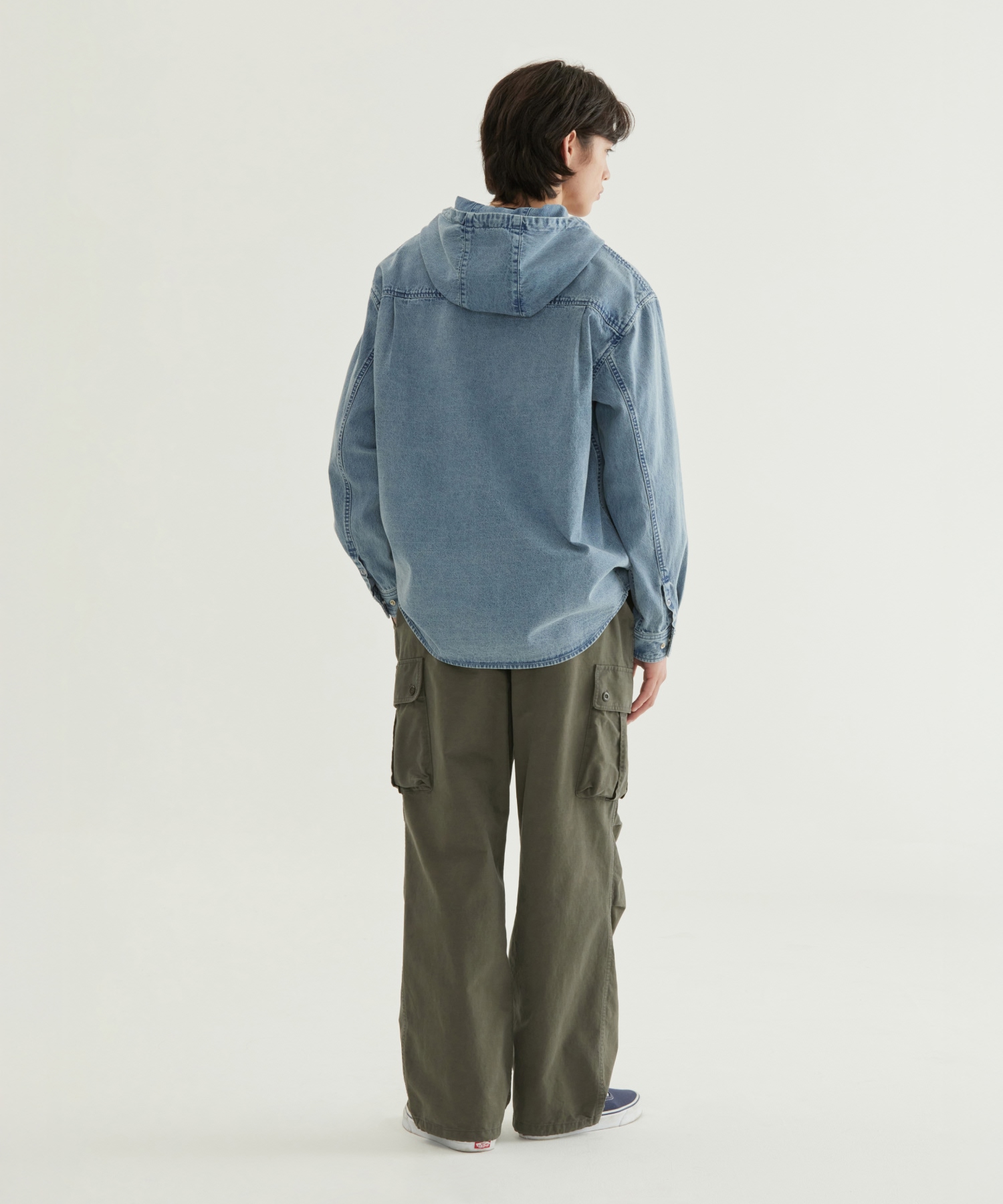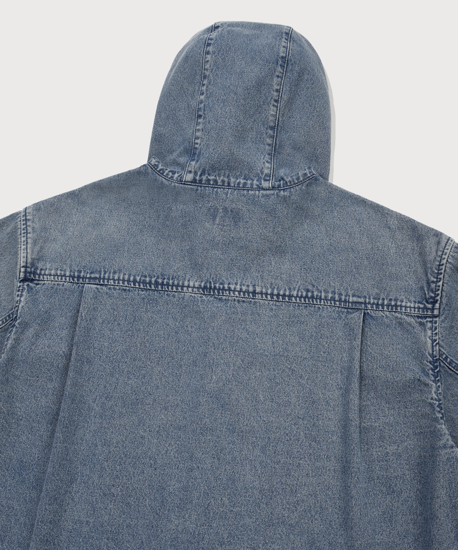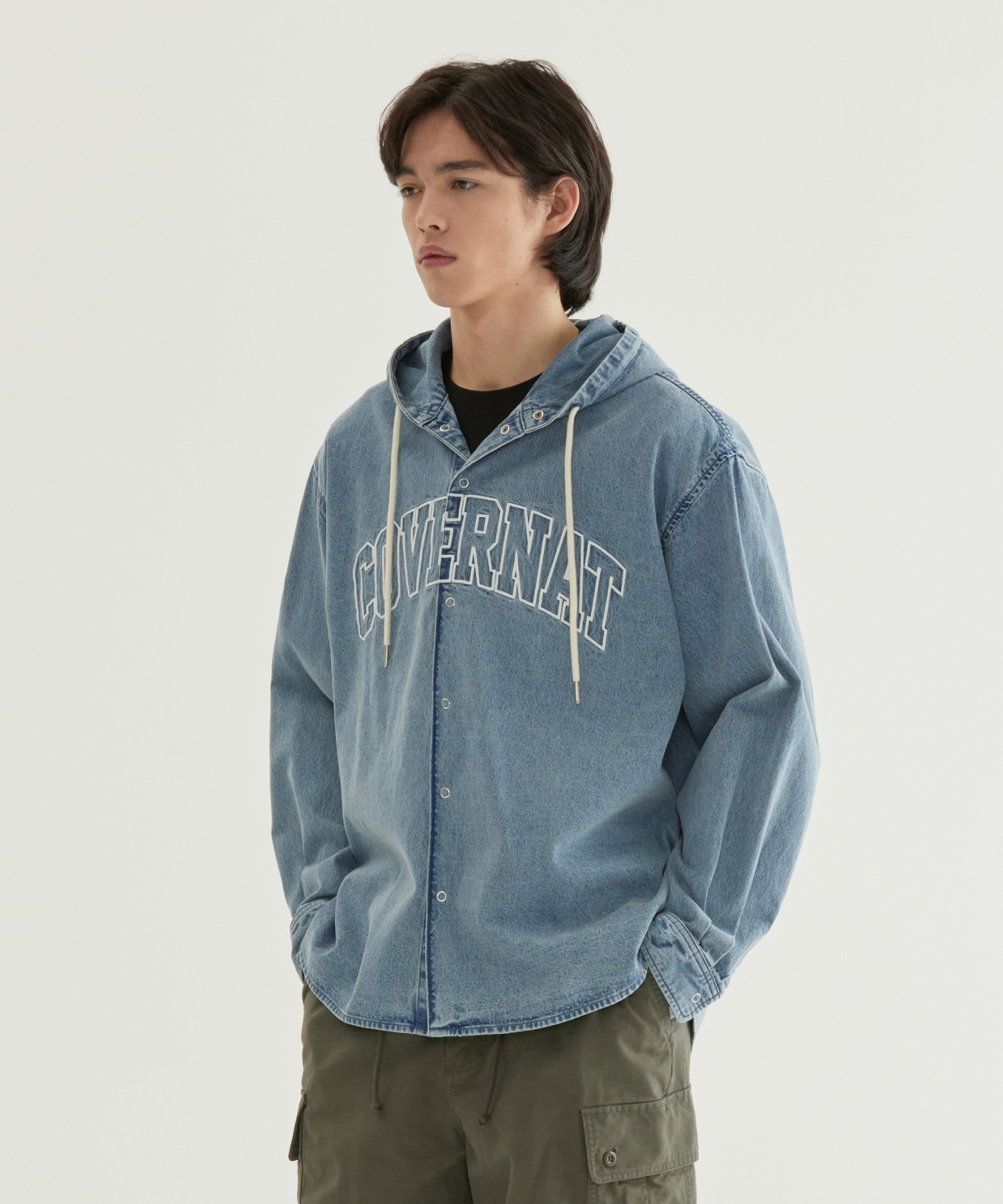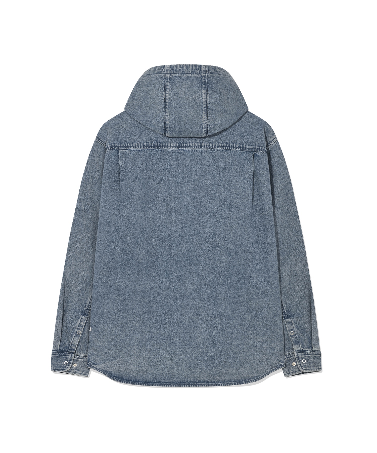 ARCH LOGO HOODED DENIM SHIRT - Blue