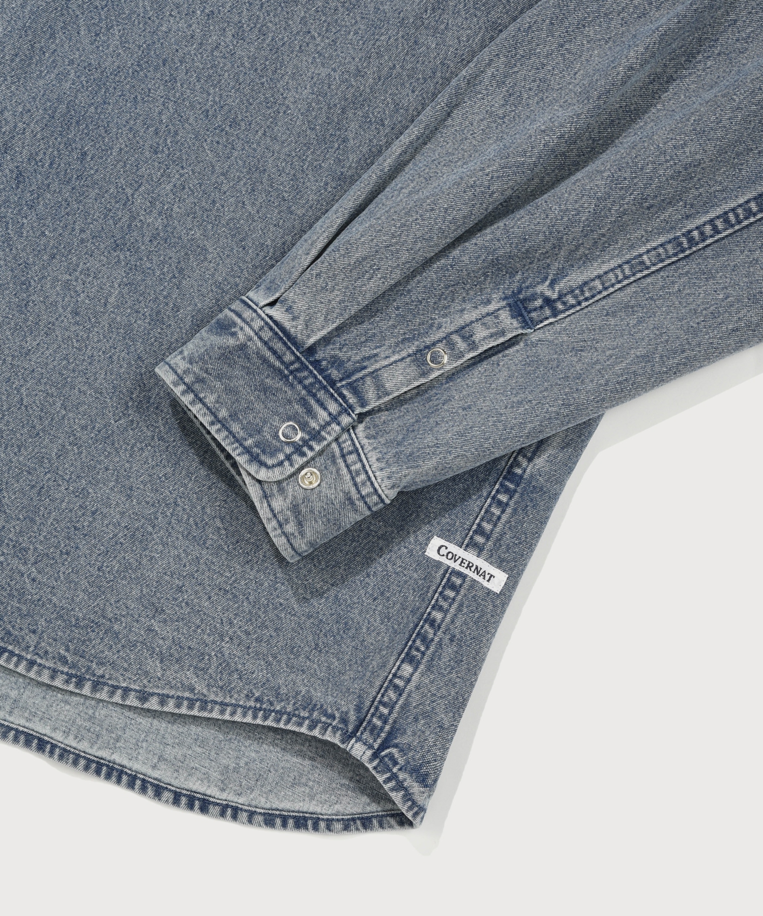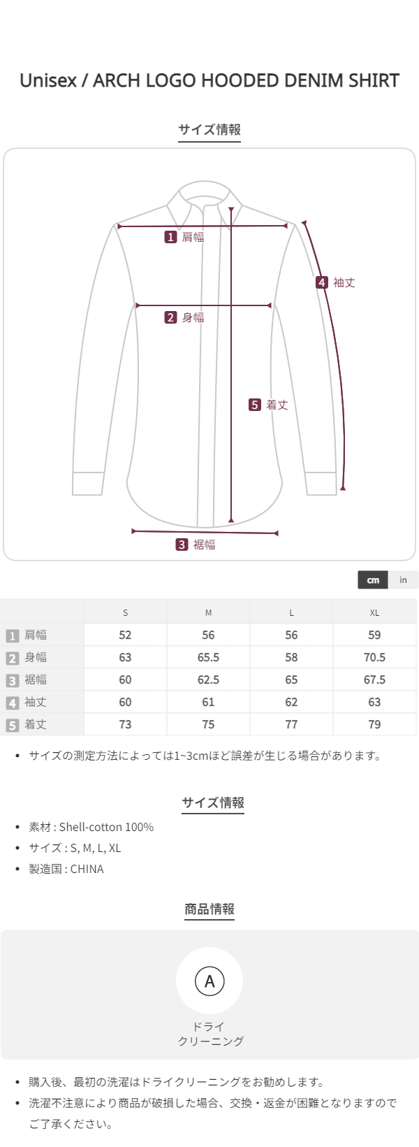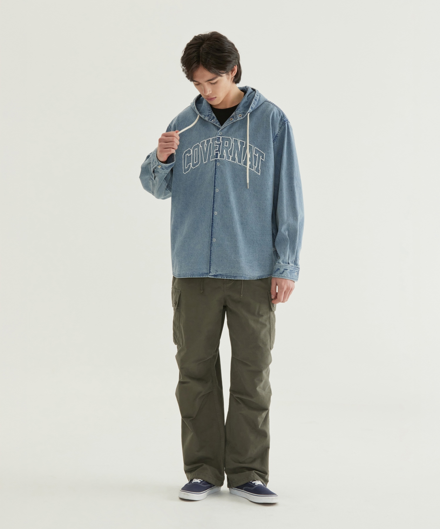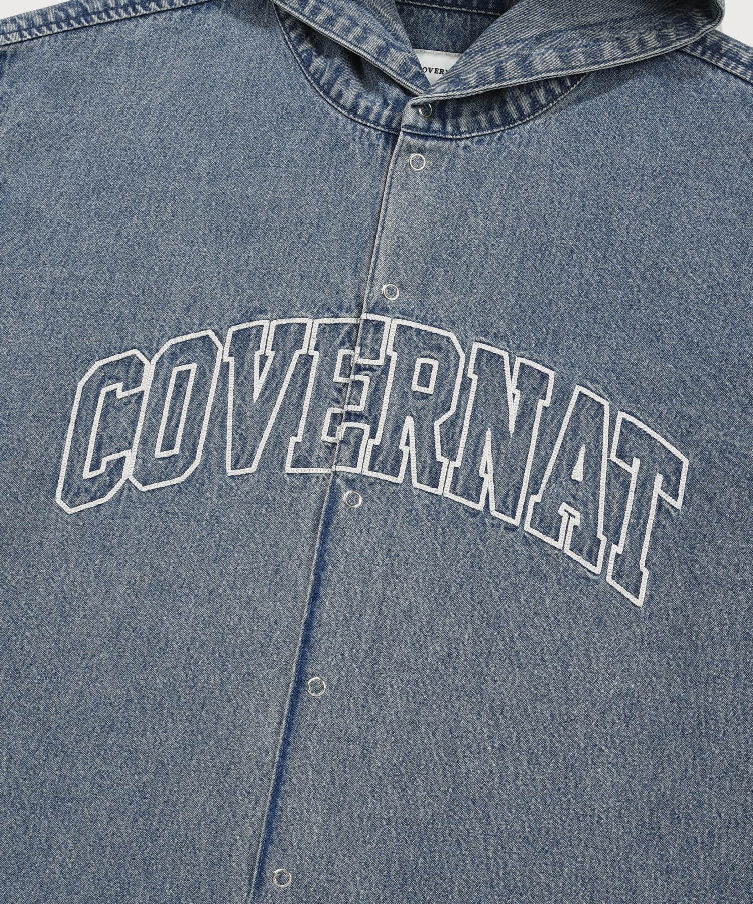 ARCH LOGO HOODED DENIM SHIRT - Blue