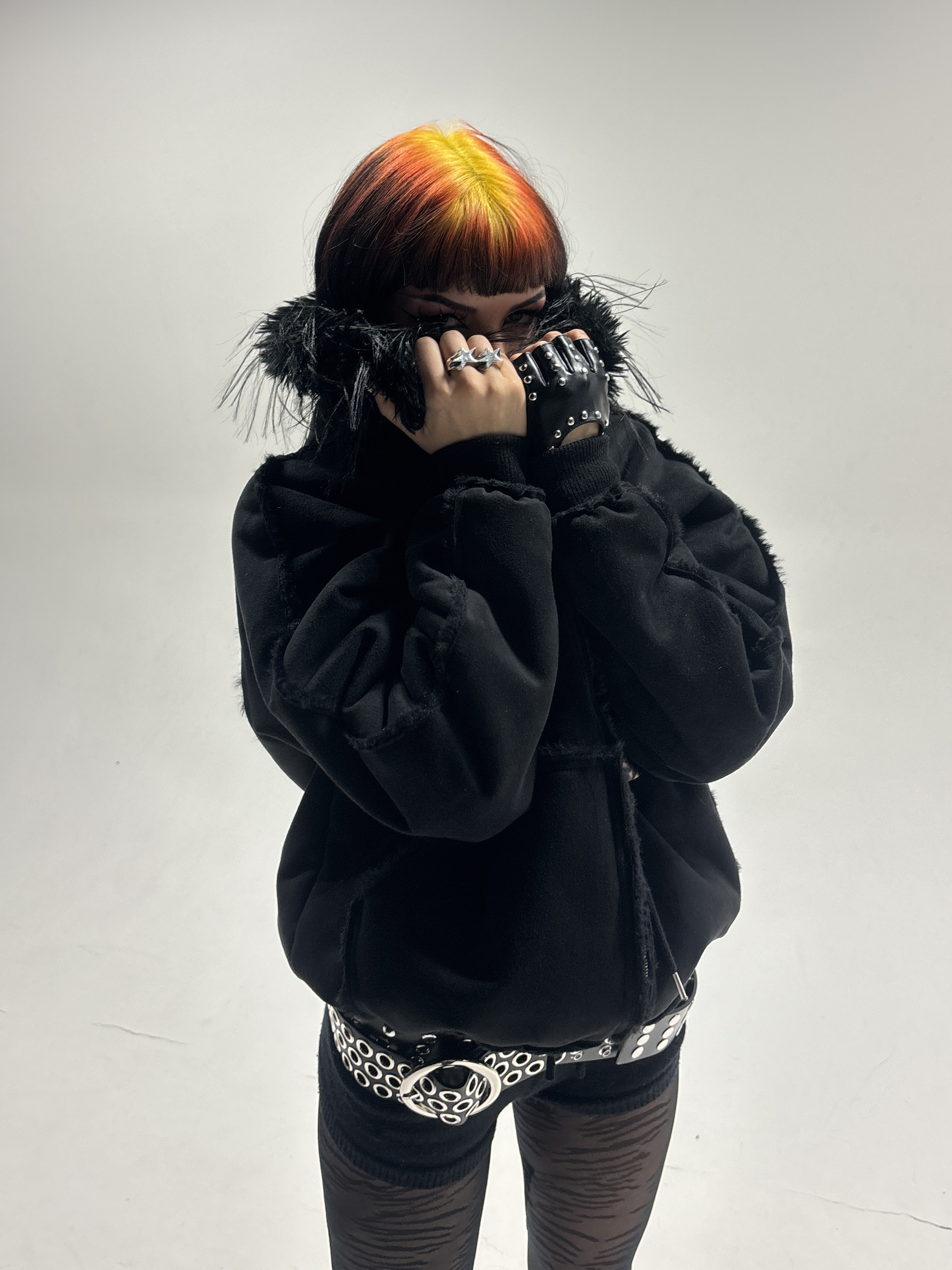 ボリューム感のあるオーバーシルエットでハードなムードを演出