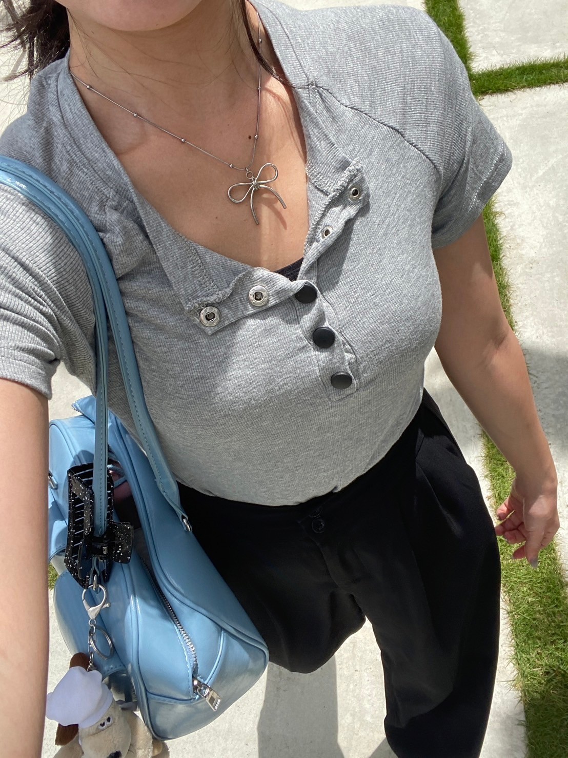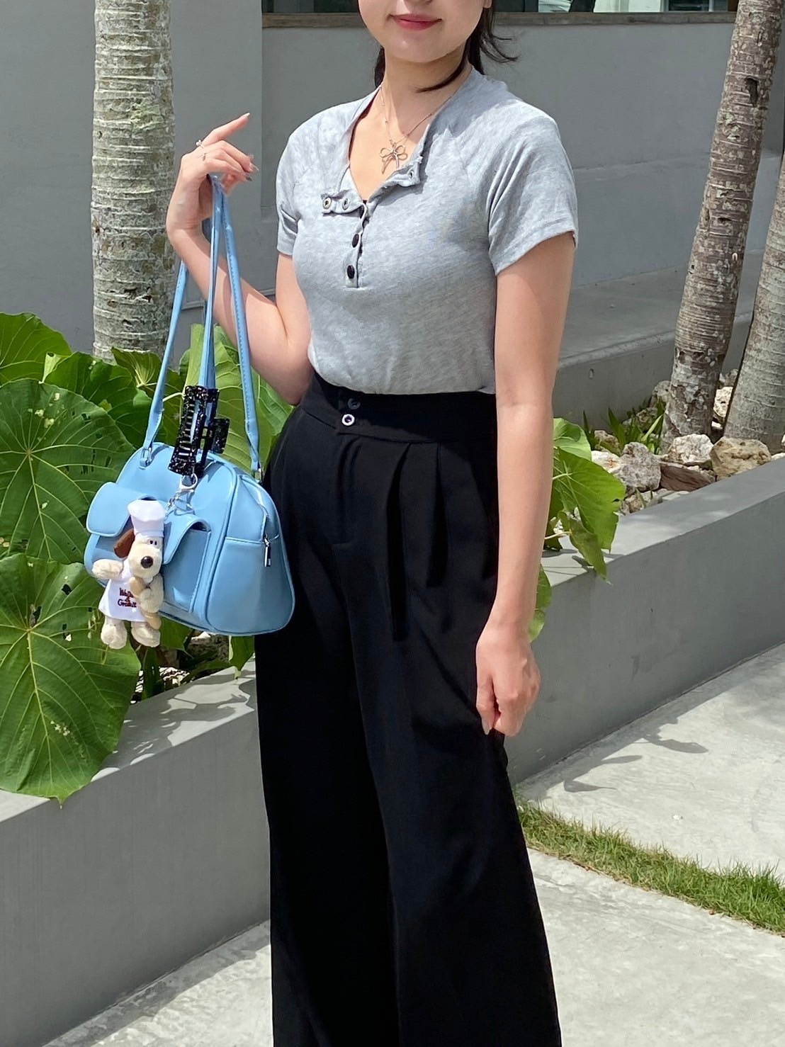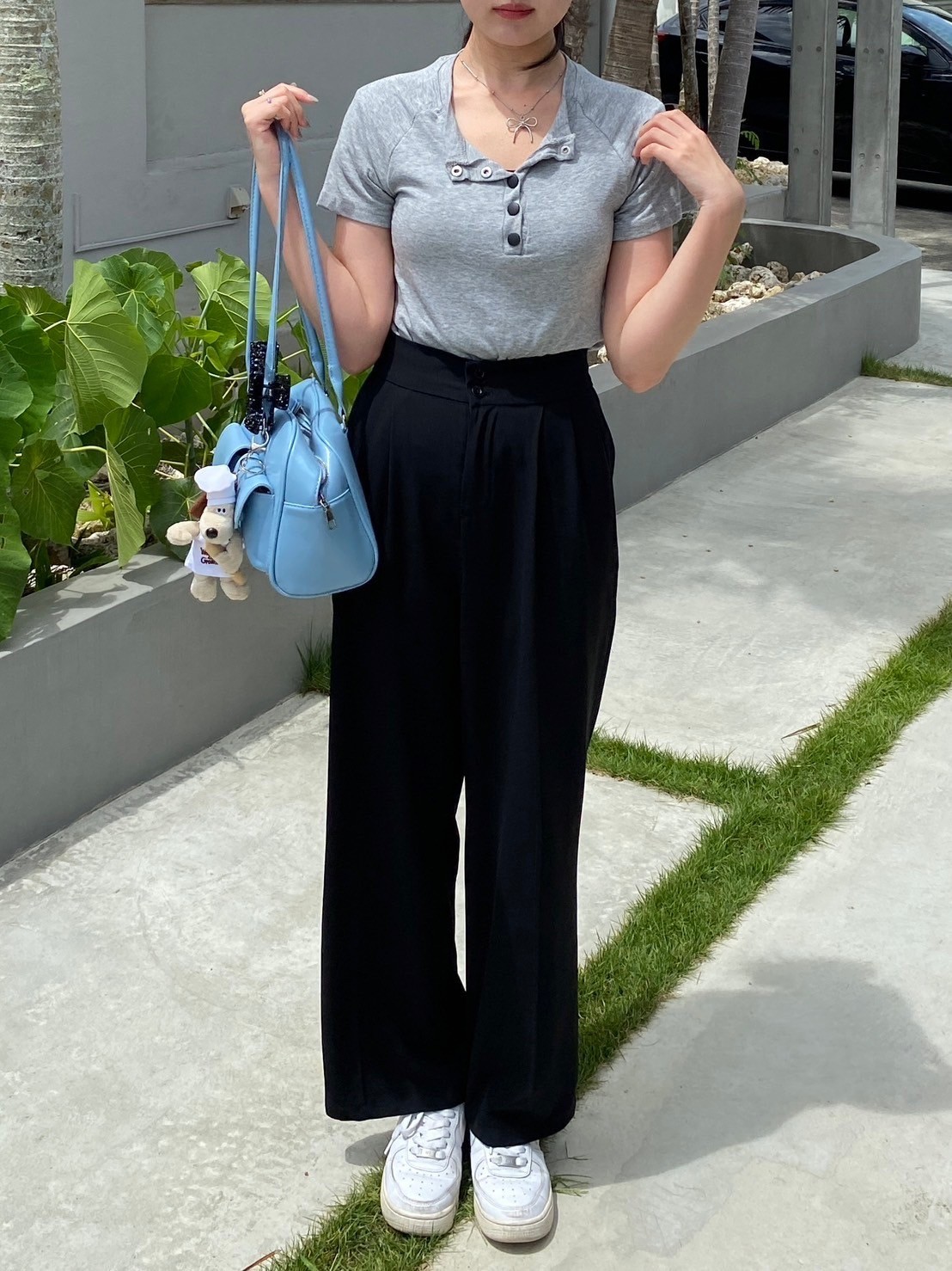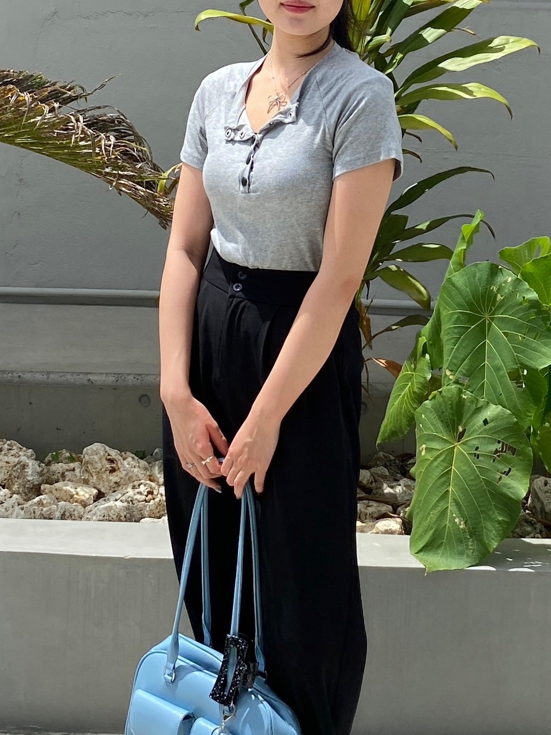 フロントボタン 無地 半袖Tシャツ カットソー