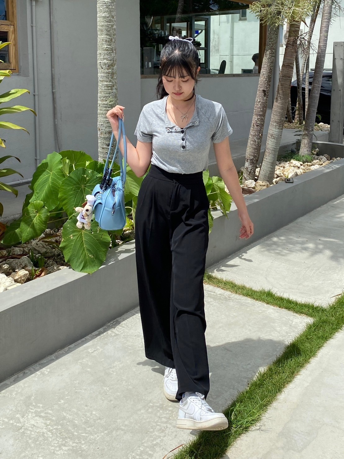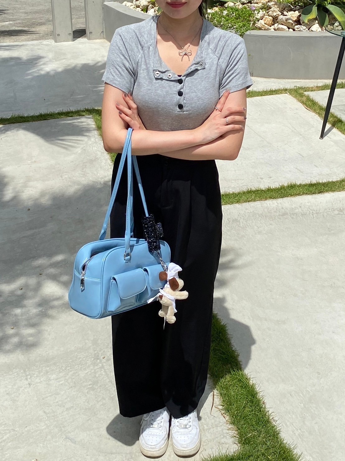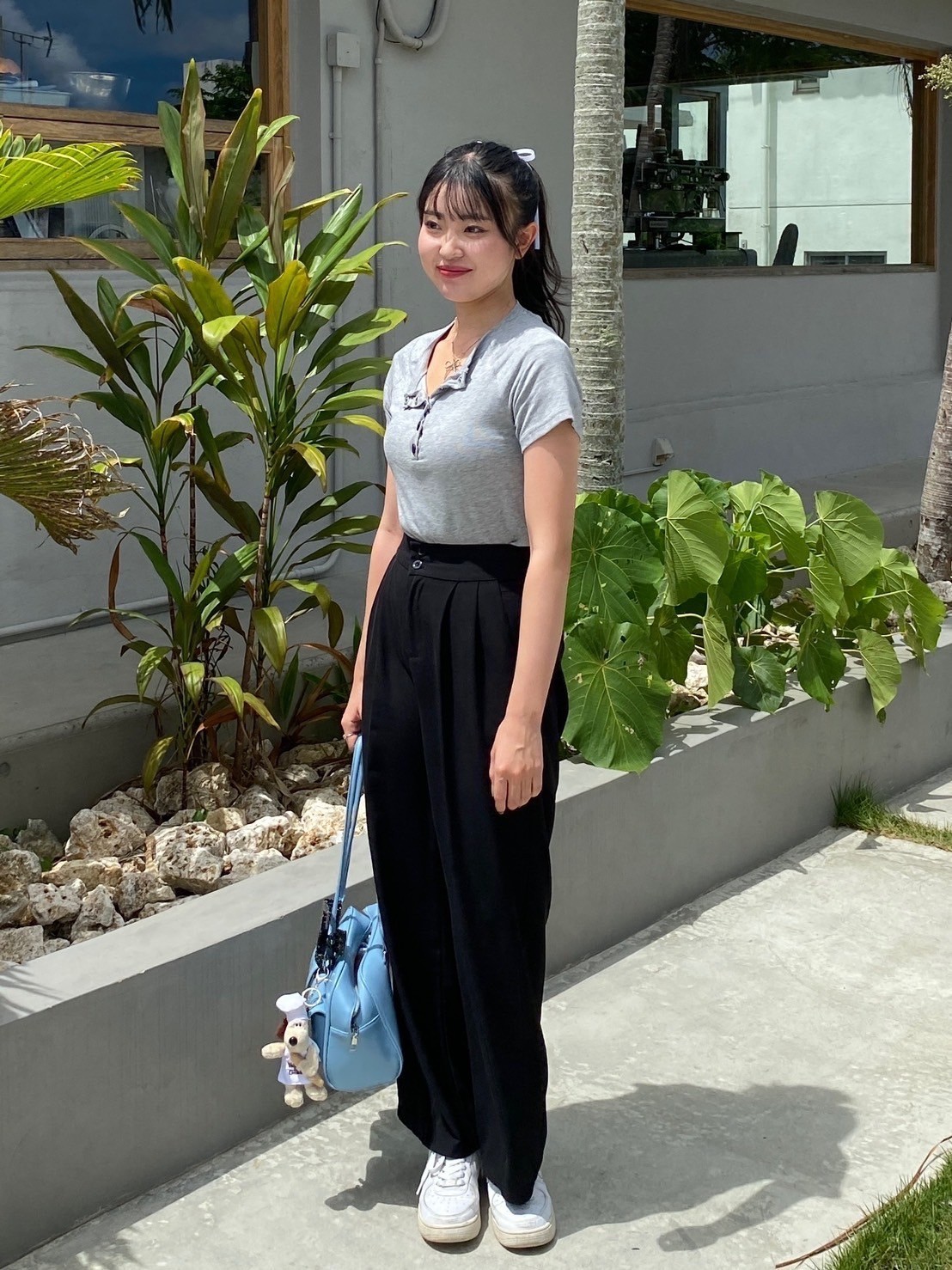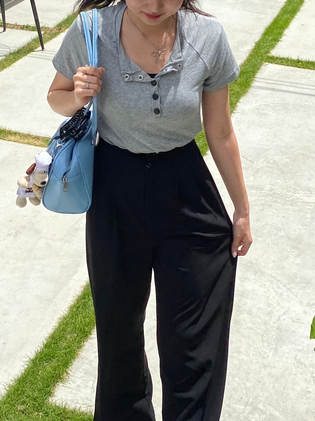 フロントボタン 無地 半袖Tシャツ カットソー
