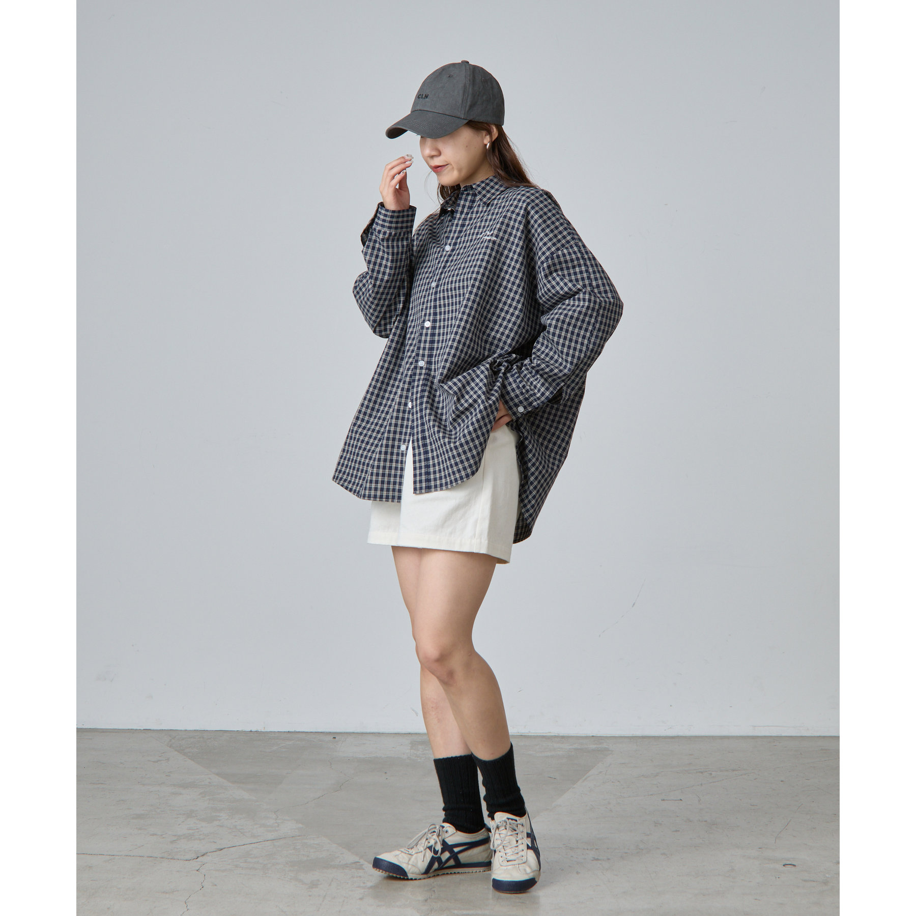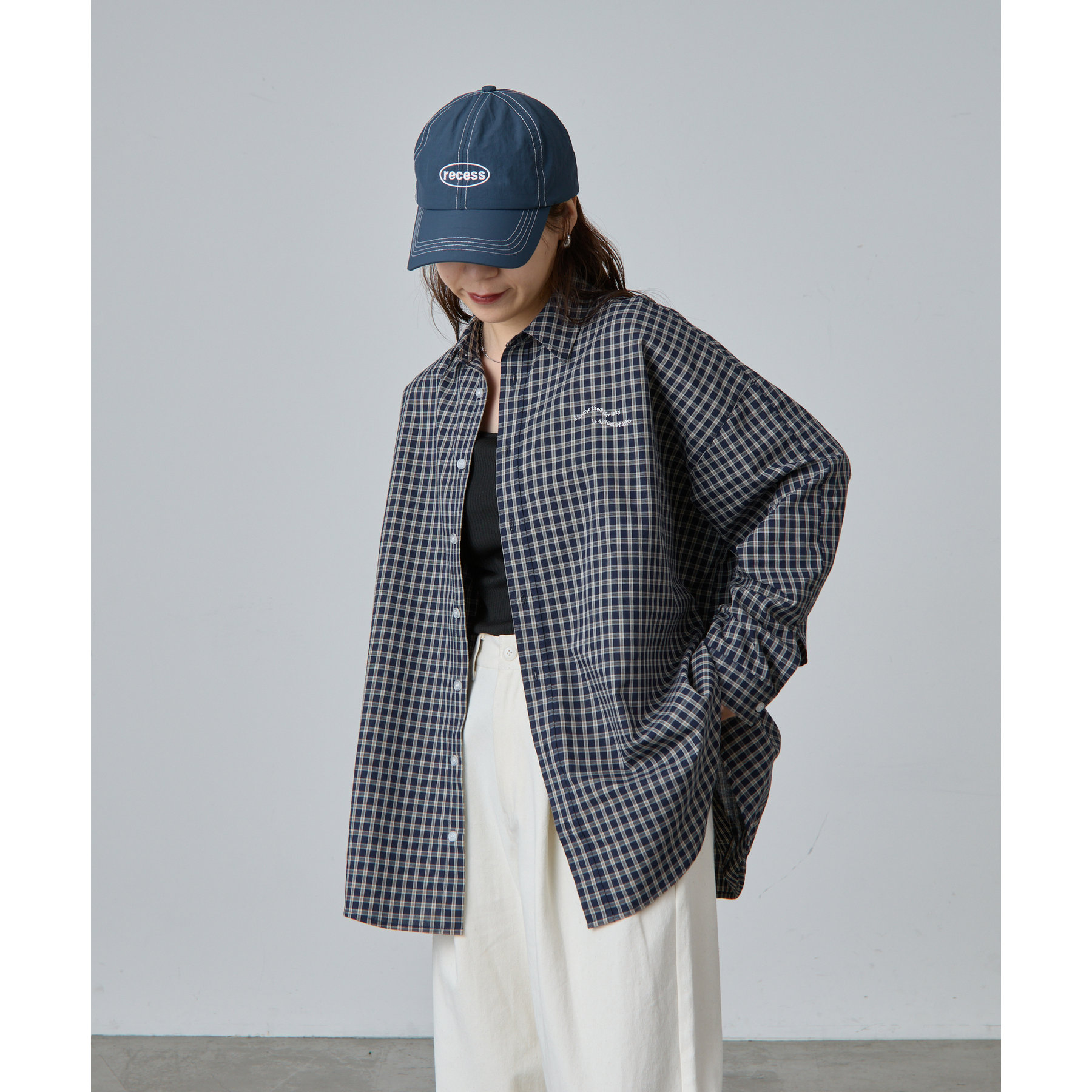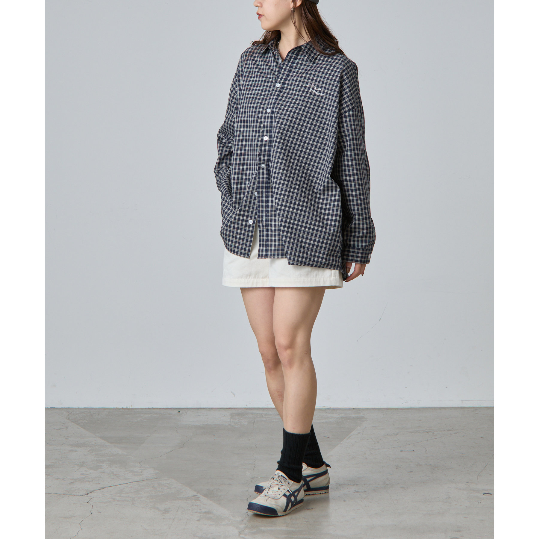 【ウェーブロゴ刺繍がポイントのチェックシャツ】