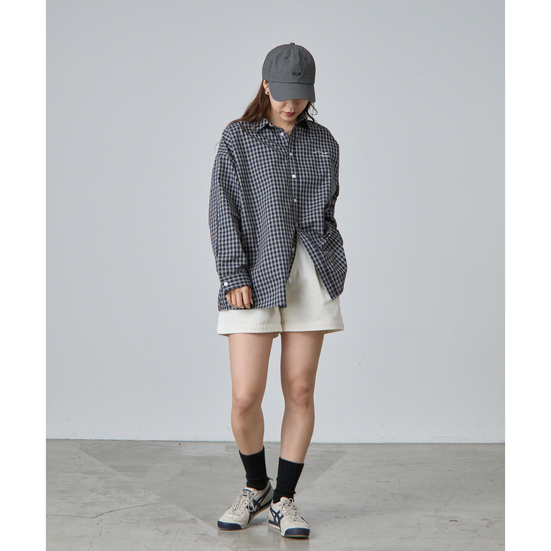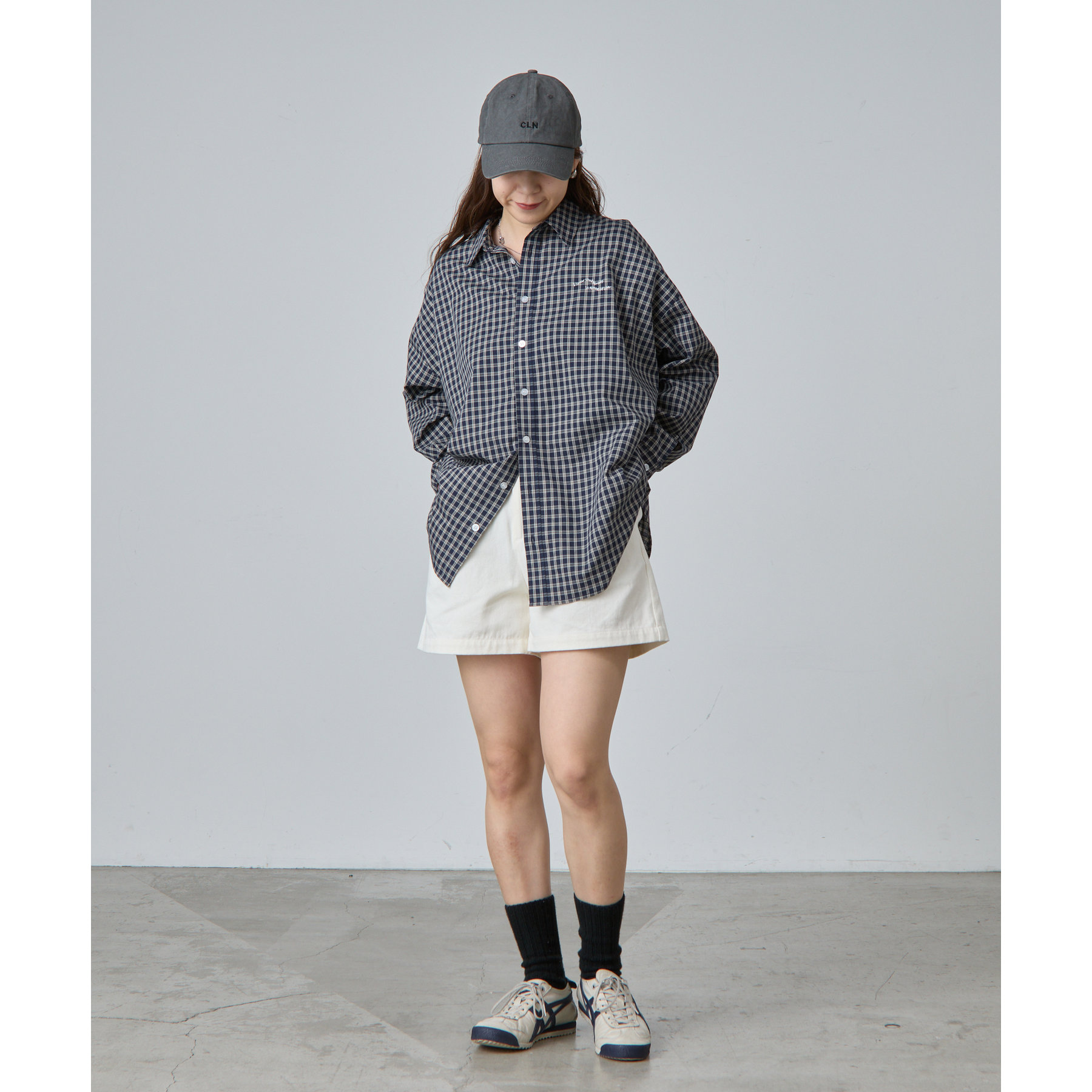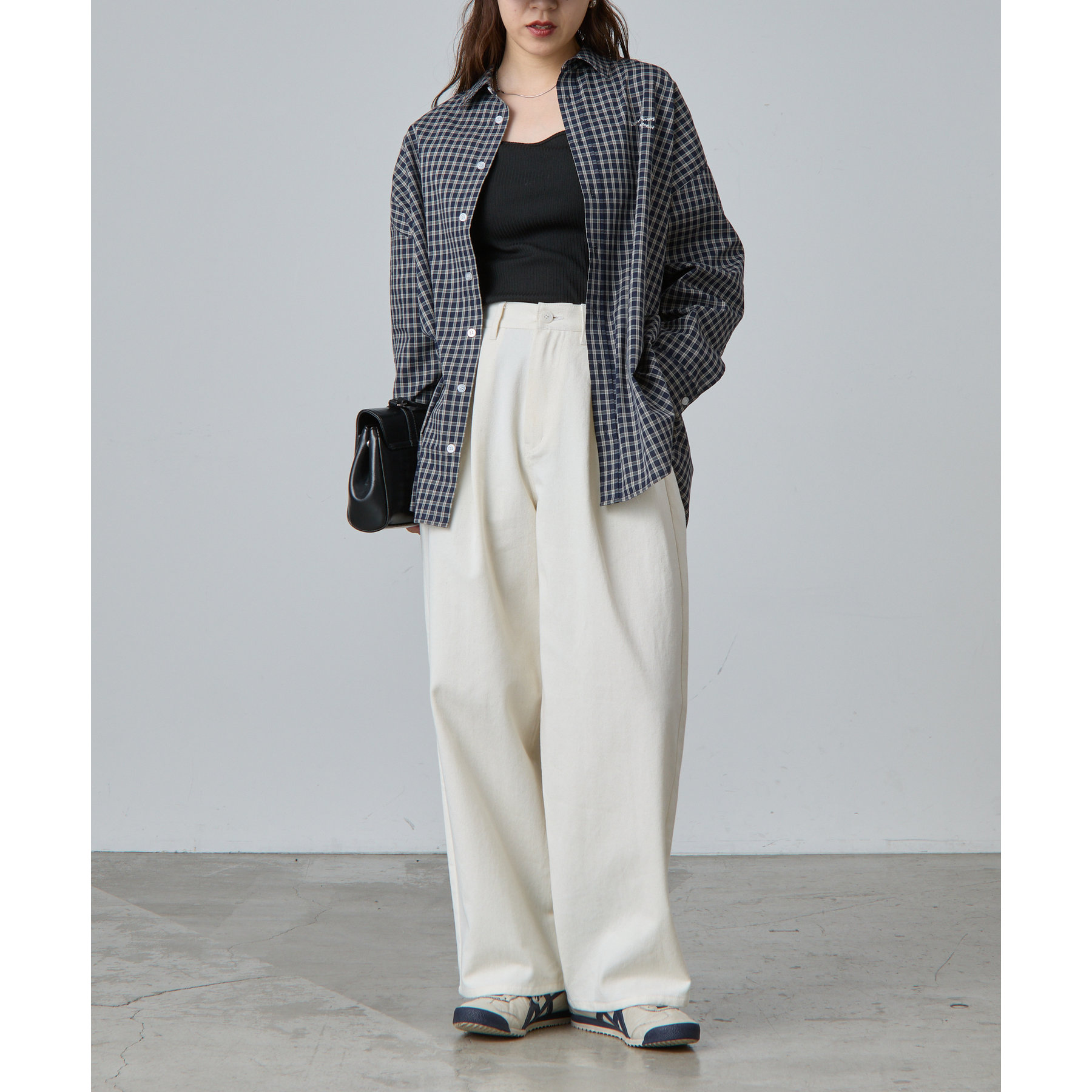 【ウェーブロゴ刺繍がポイントのチェックシャツ】