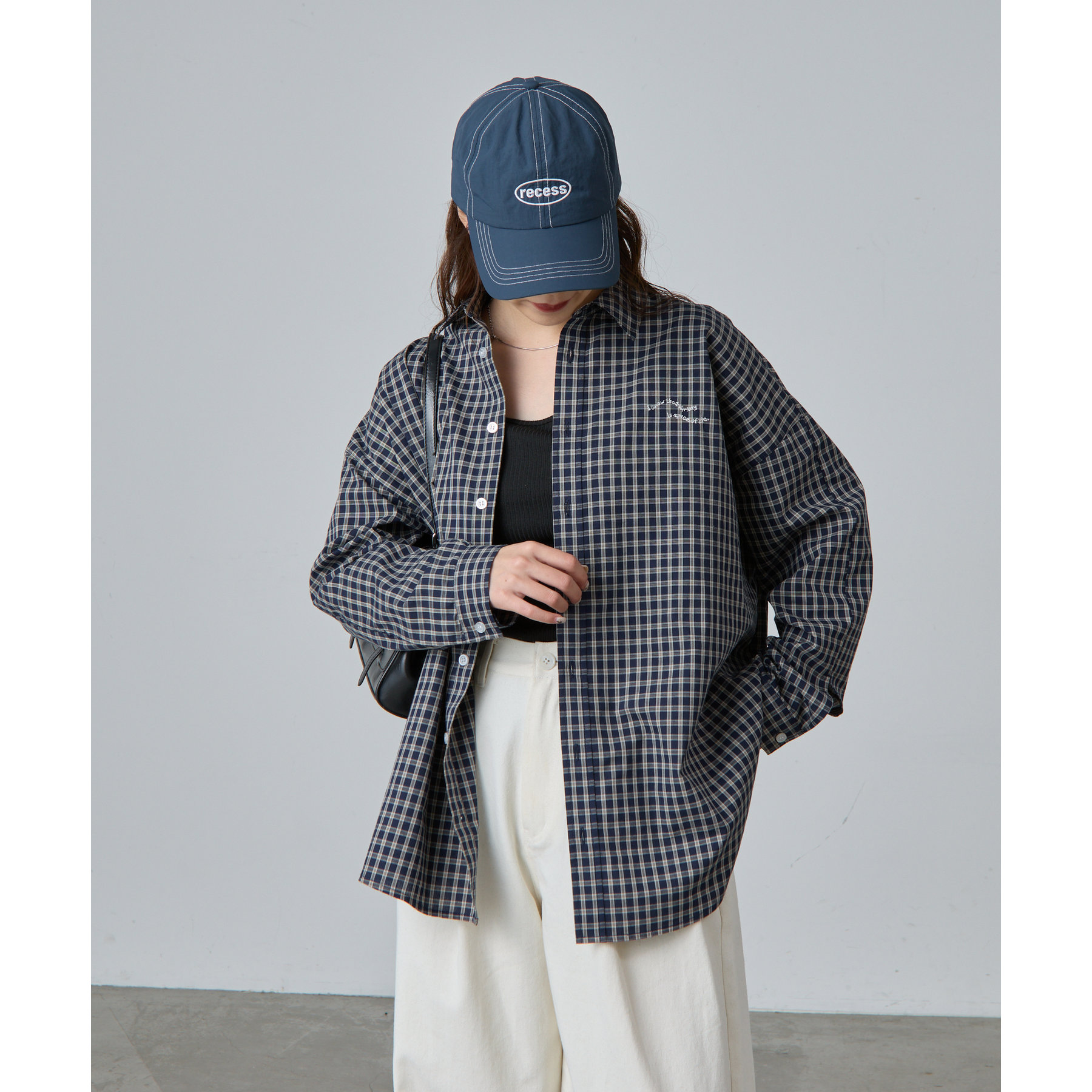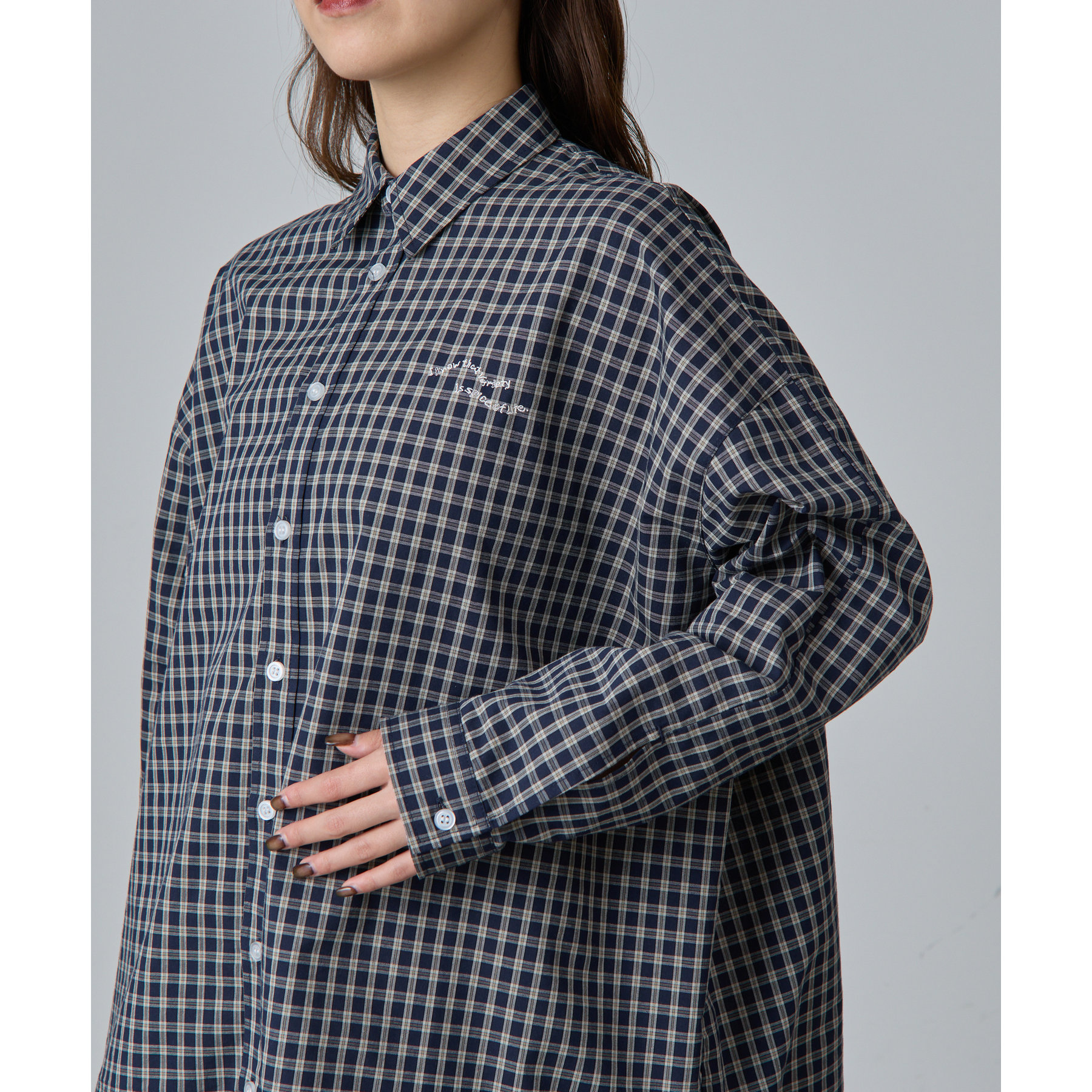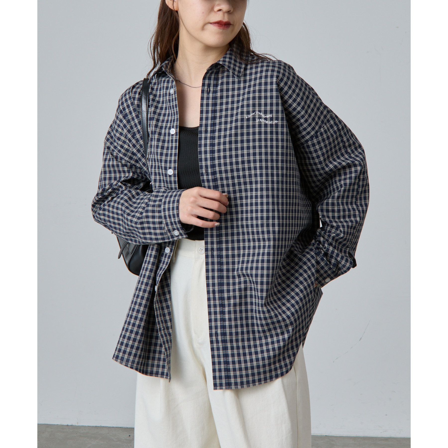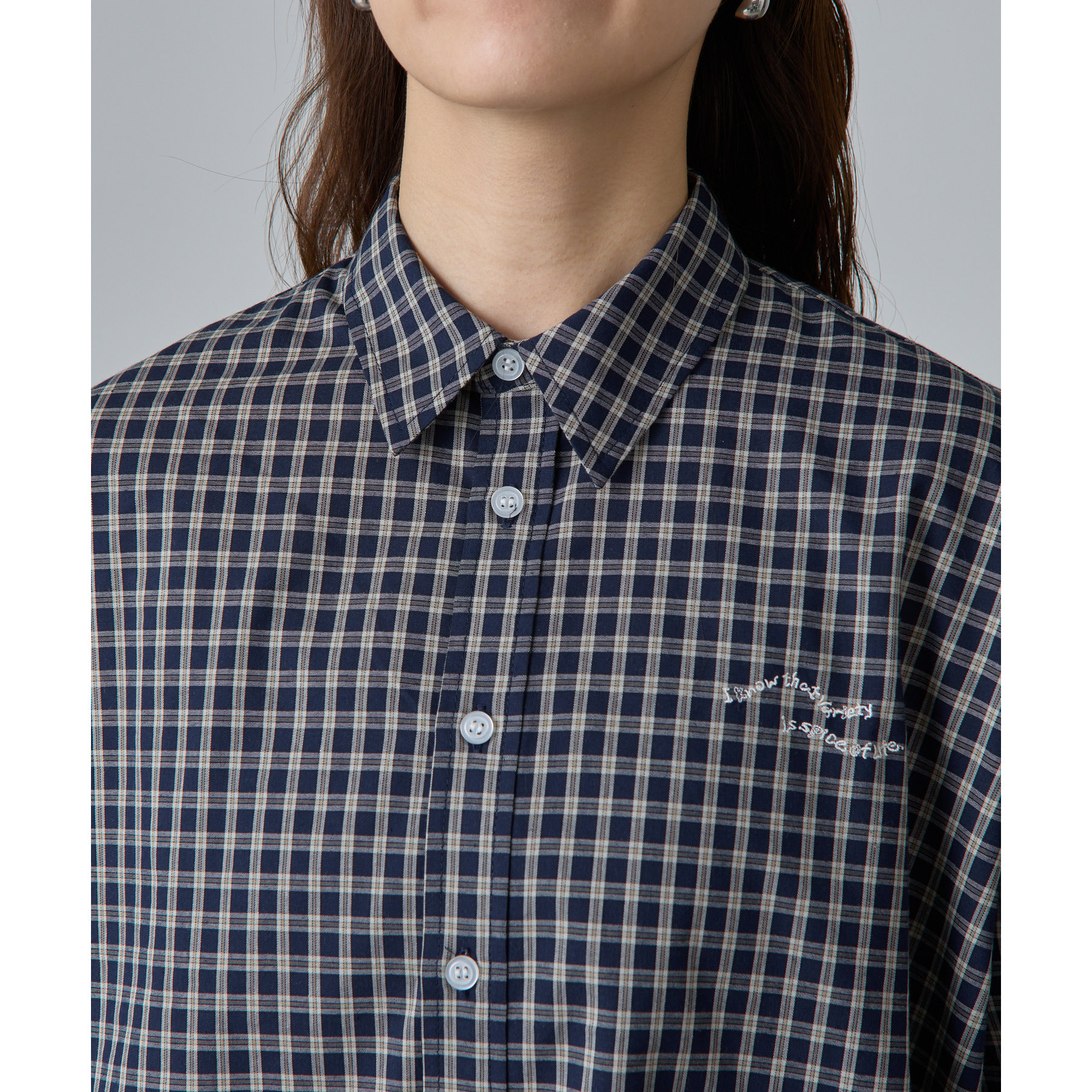 ・ワンポイント刺繍チェックシャツ