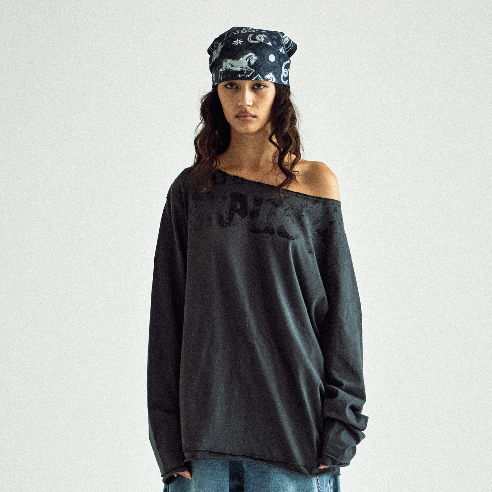 LOOSE FIT UNBALANCE LS TEE(W) CHARCOAL