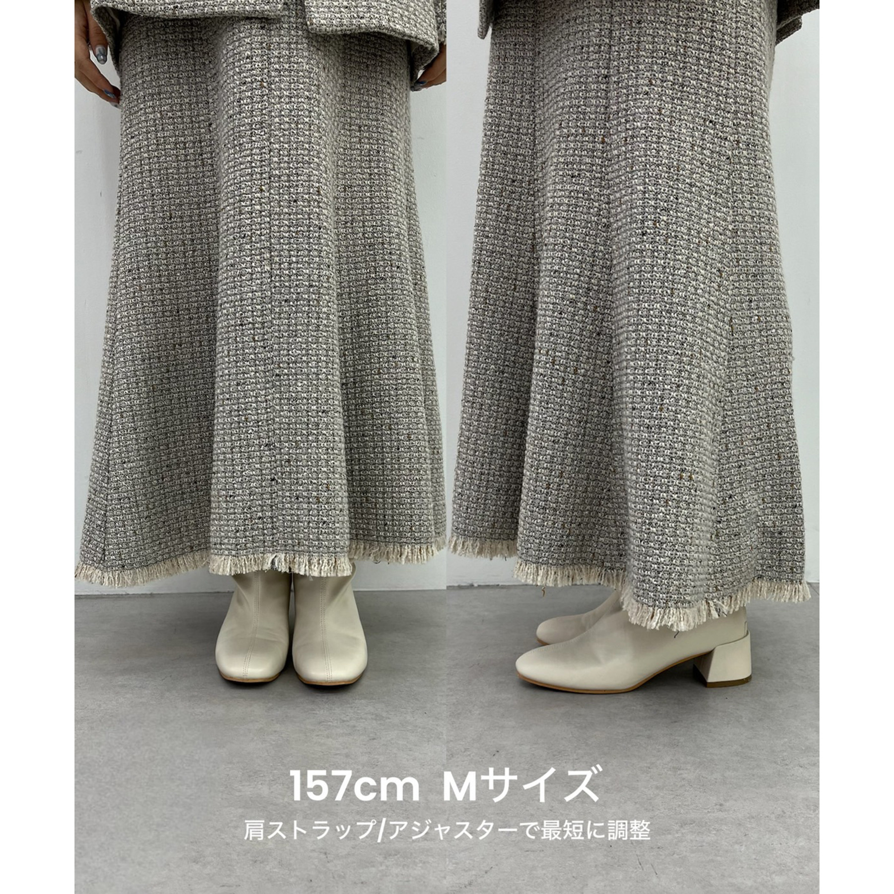フロントはハートに見えるようデザインを施し、フリンジ使いでアクセントをプラス。