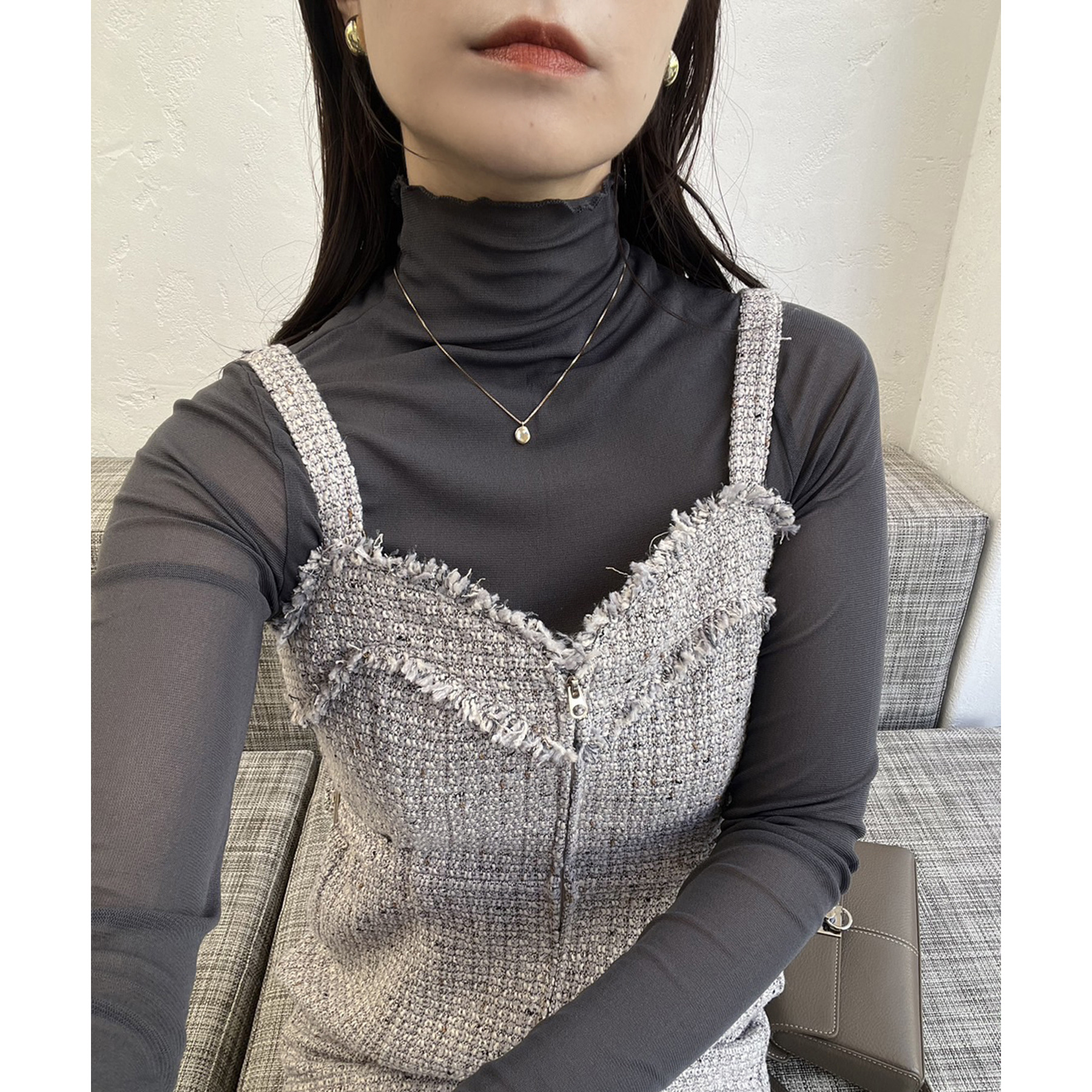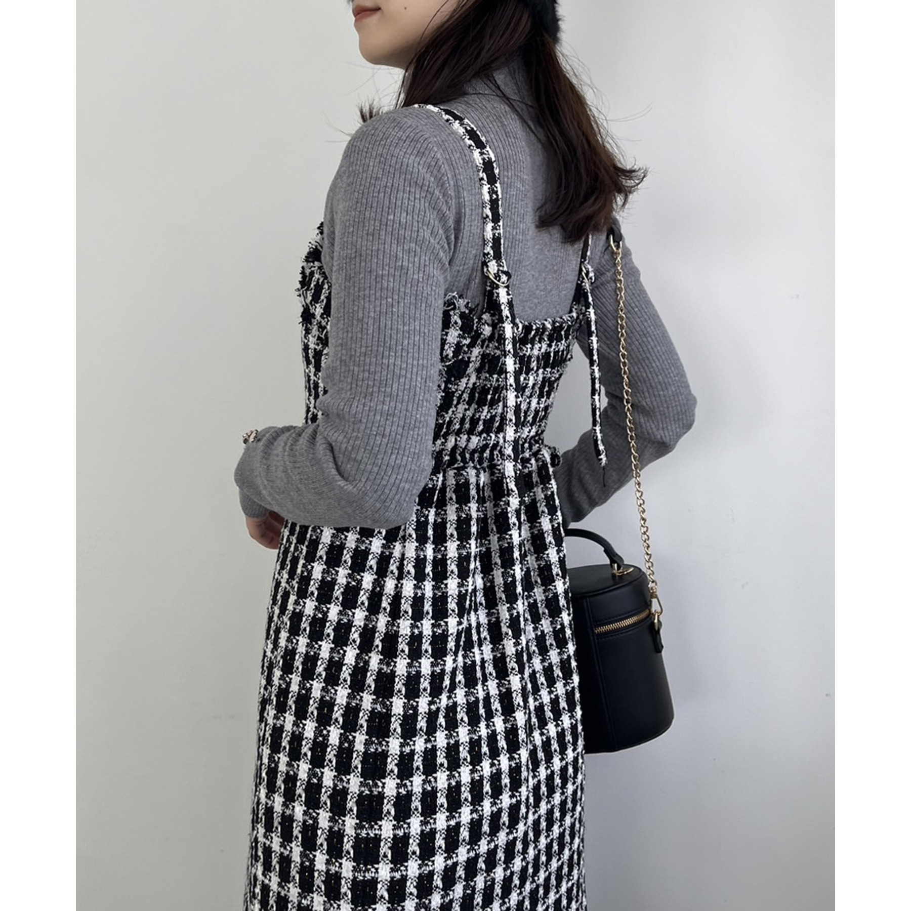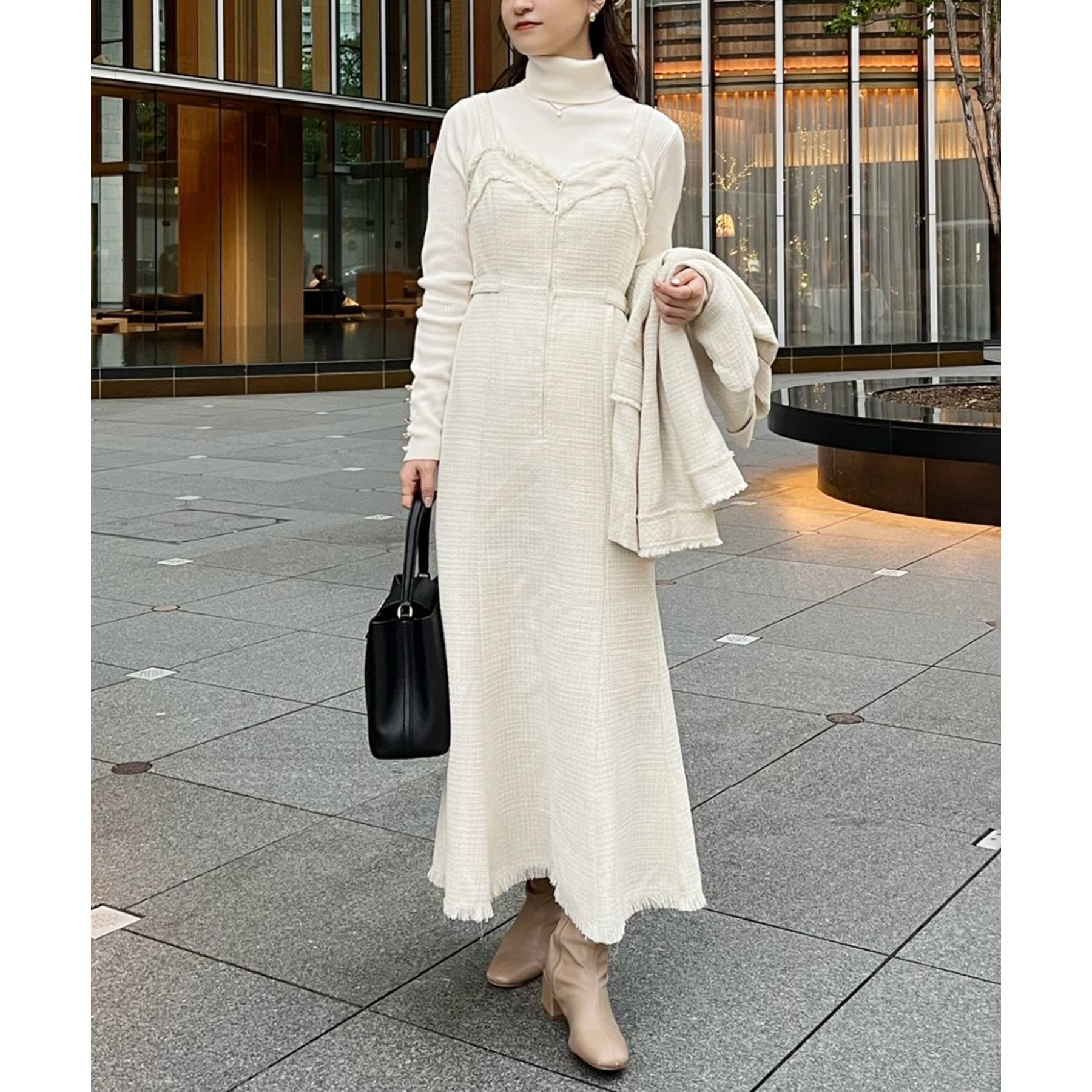 ハイネックトップスを合わせたら冬まであたたかくお召いただけます。
