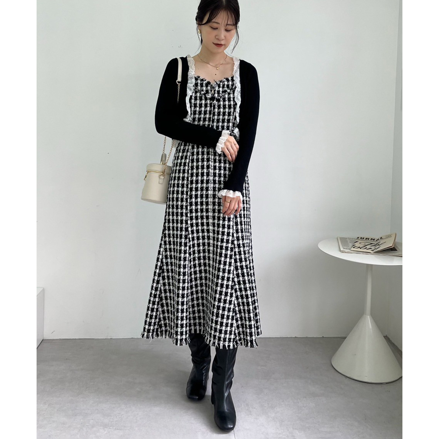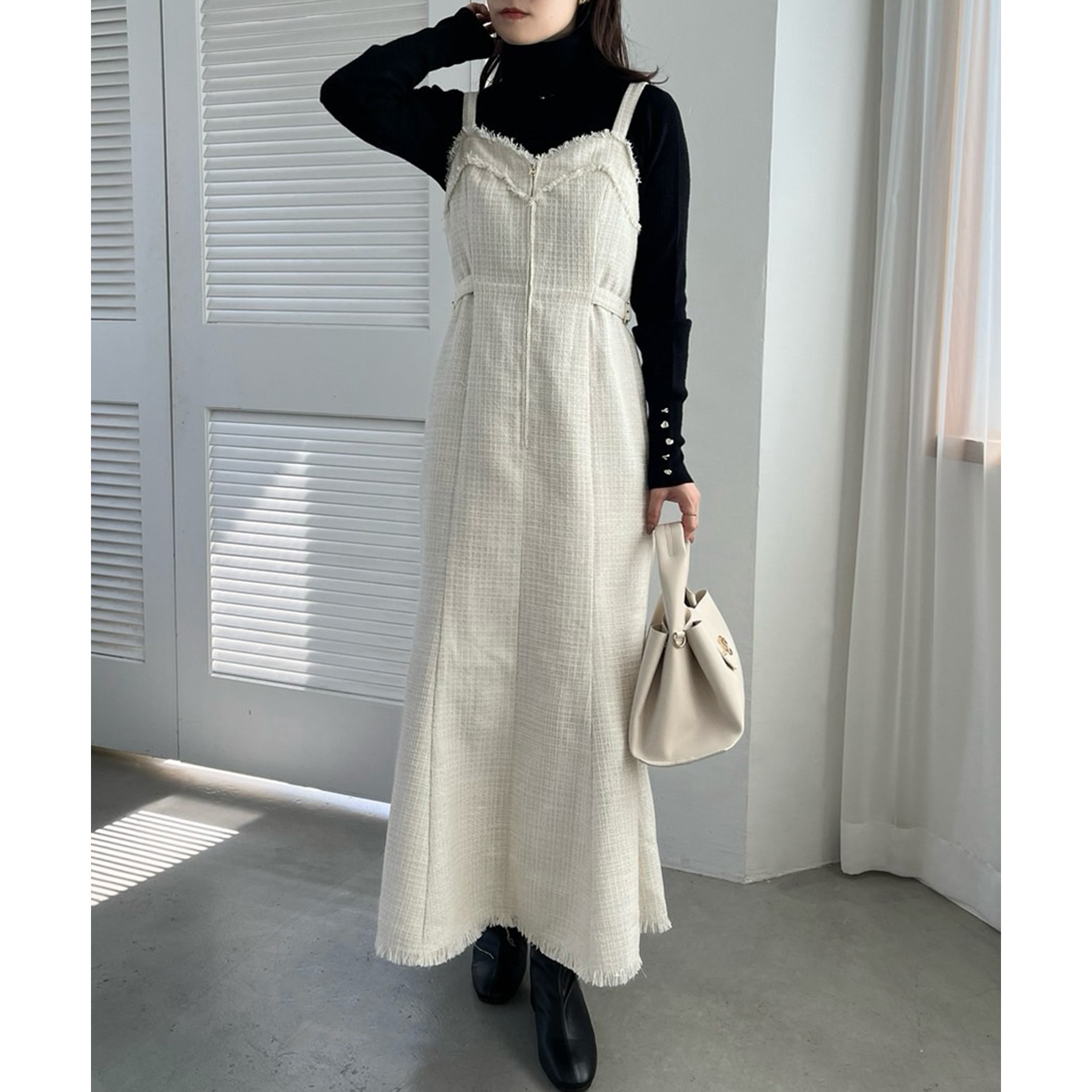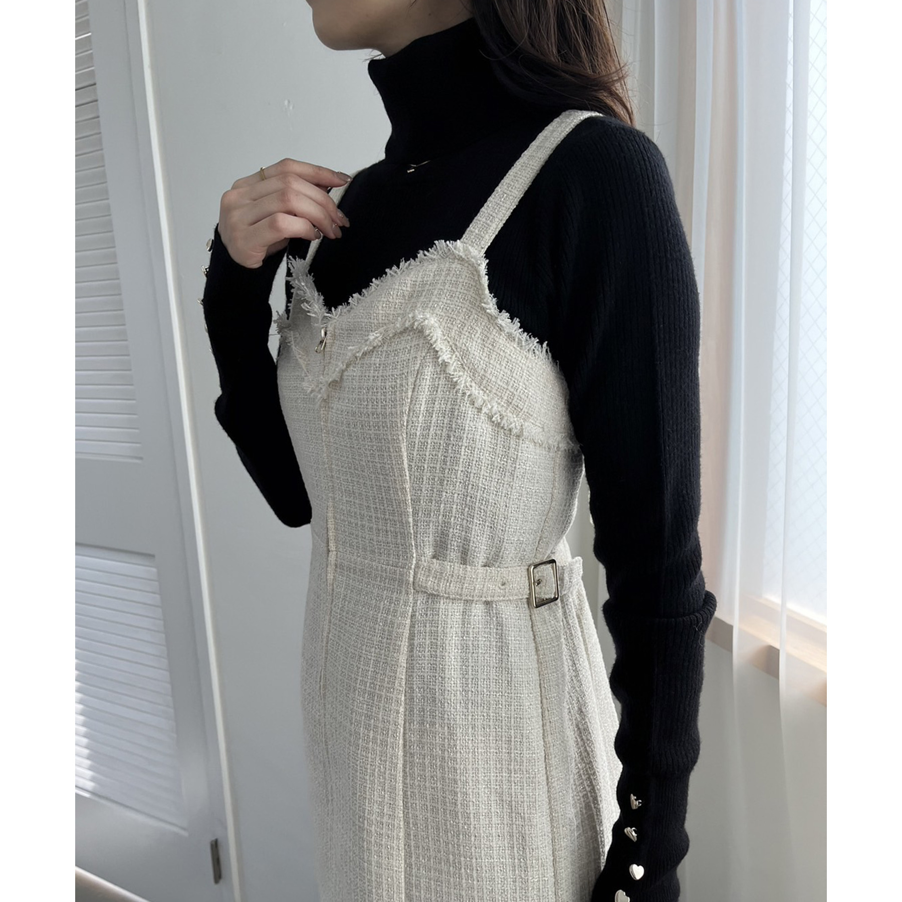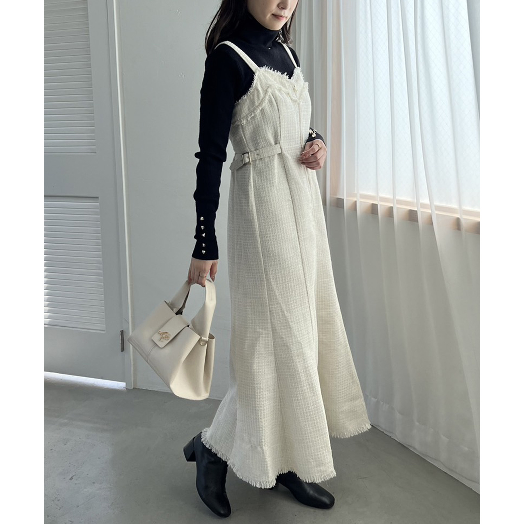 ハイネックトップスを合わせたら冬まであたたかくお召いただけます。