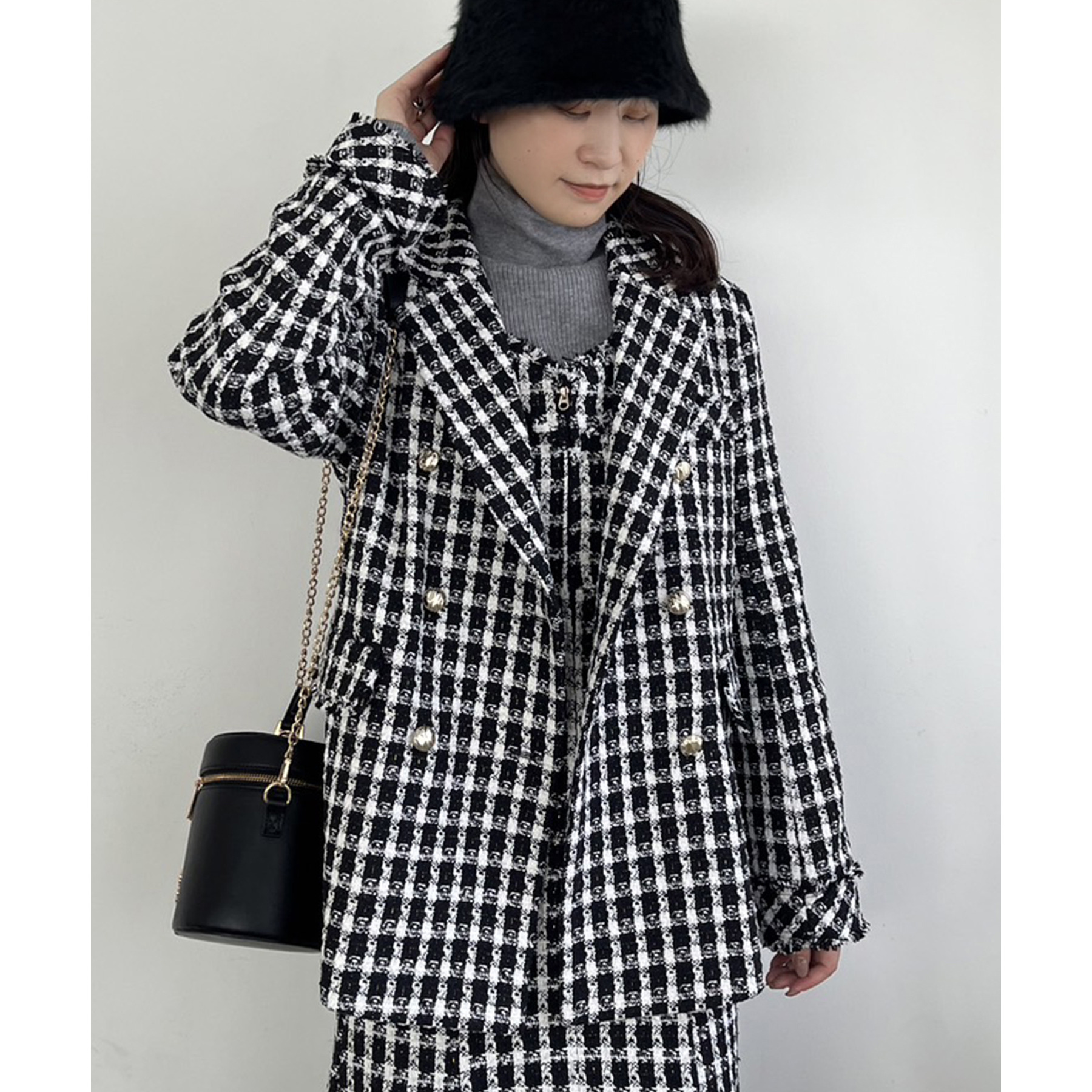 無地のアウターやカーディガンなどを合わせていただくのもおすすめです。