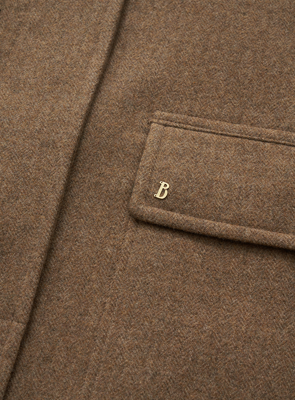 キャメルカラーの、ヘリンボーン特有のテクスチャーが特徴のウールファブリックを使用。