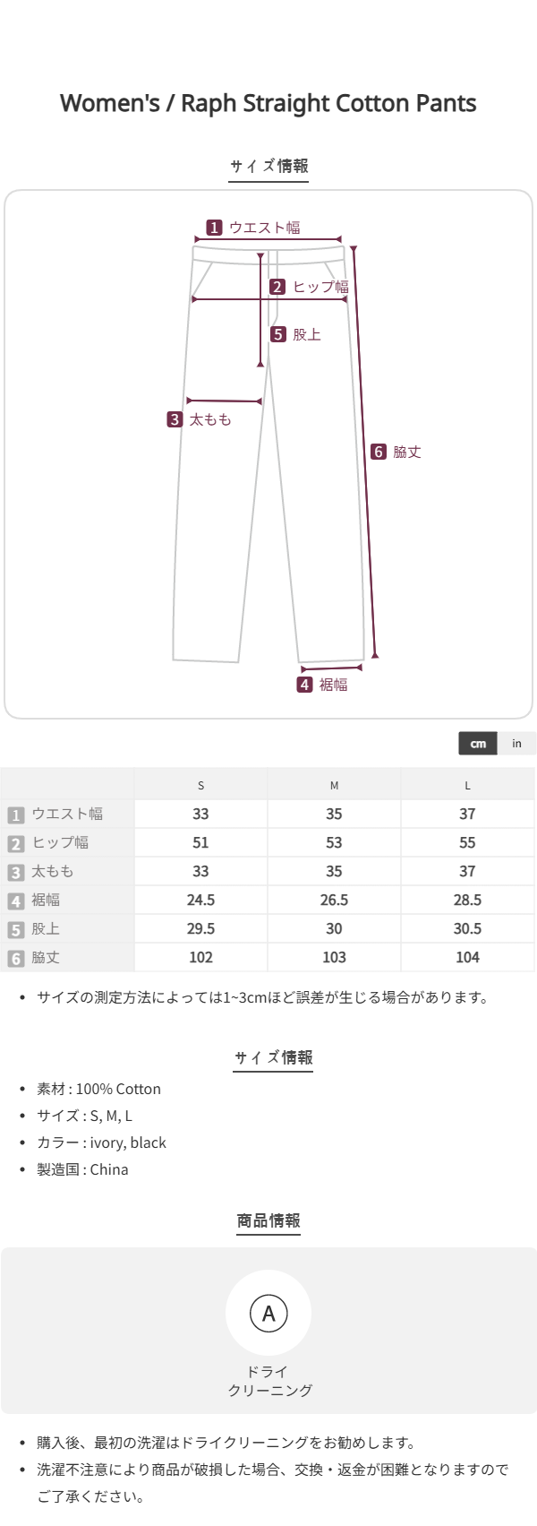 HEIGHT 170cm / BUST 81cm / WAIST 62cm / HIP 90cm