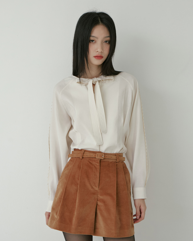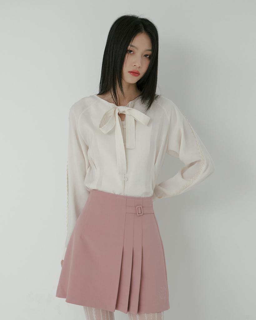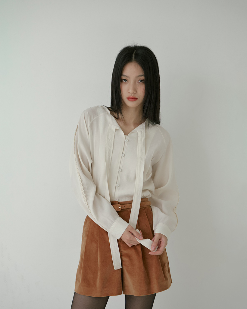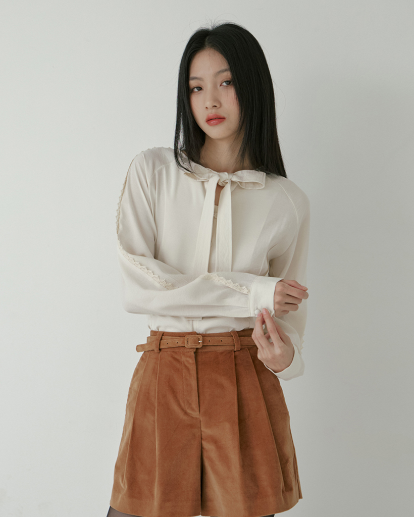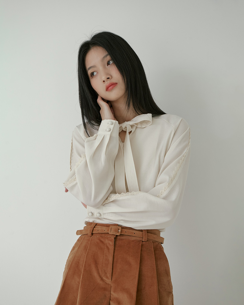 RIBBON TIE LACE DART BLOUSE_IVORY