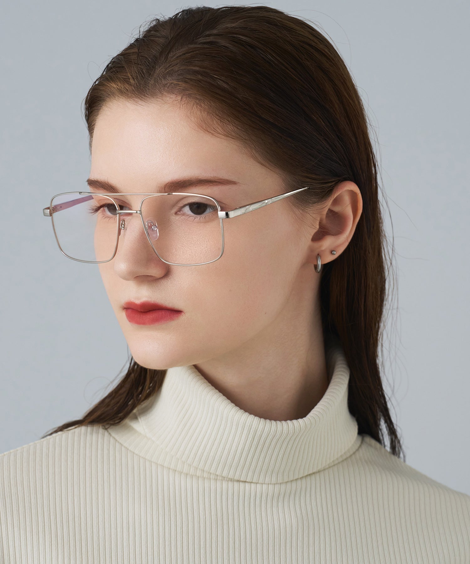 GUIDEフレーム正面142mmレンズ幅43mmレンズ高さmmブリッジ18mmテンプル長さ140mm重量20g、素材:metal -