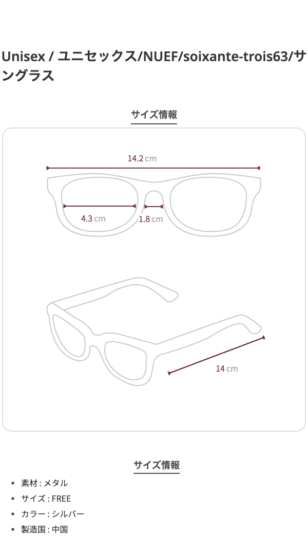 ユニセックス/NUEF/soixante-trois63/サングラス/シルバー