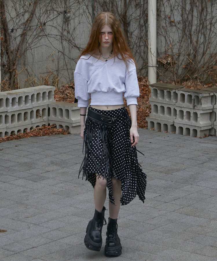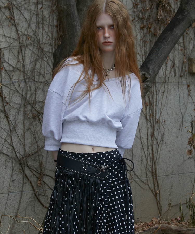 Crossed Crop Sweatshirt (MELANGE WHITE)