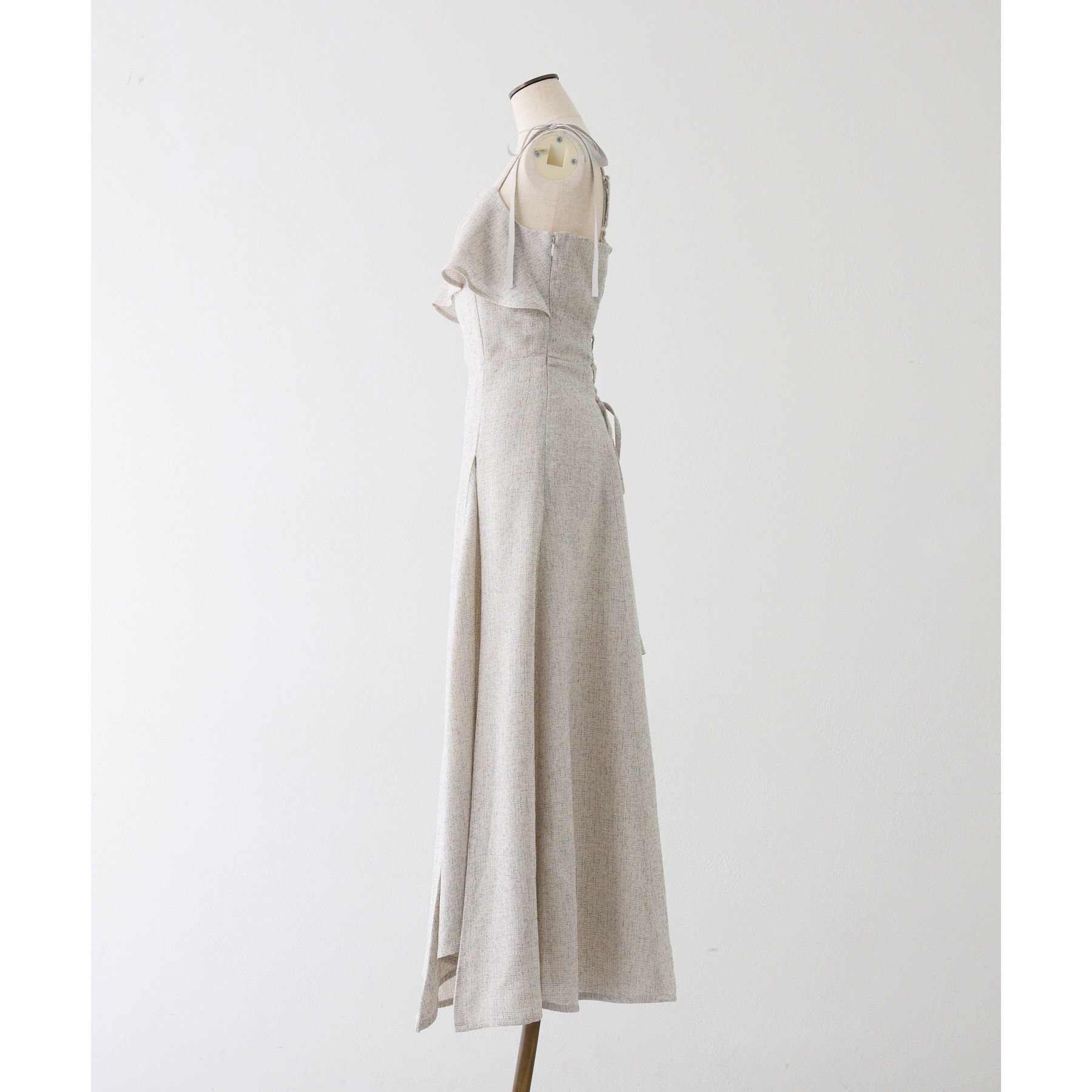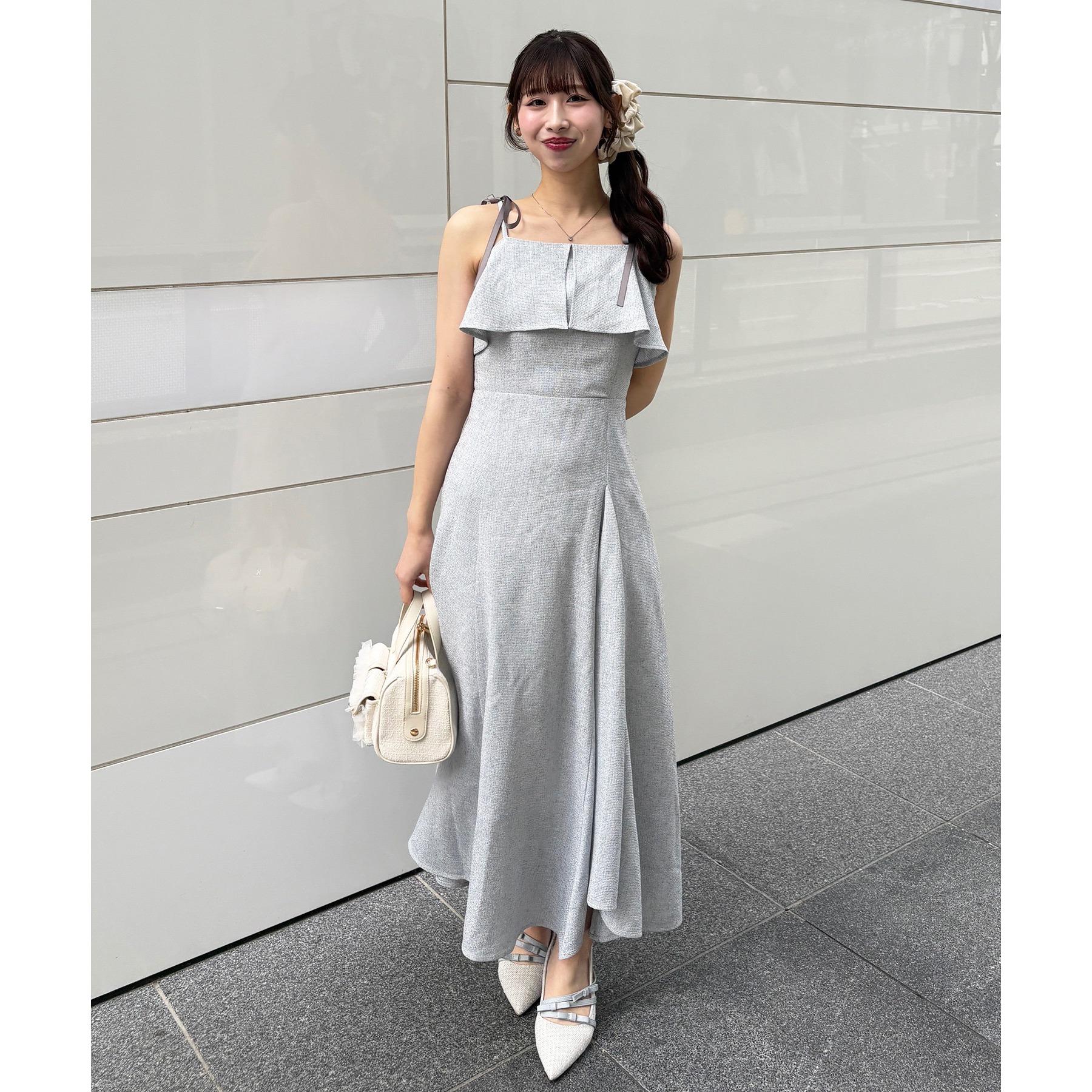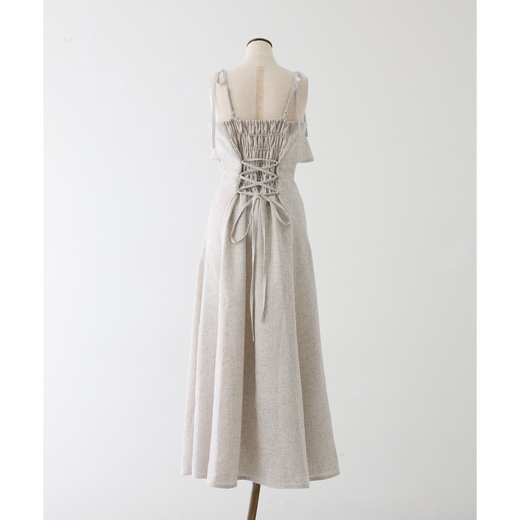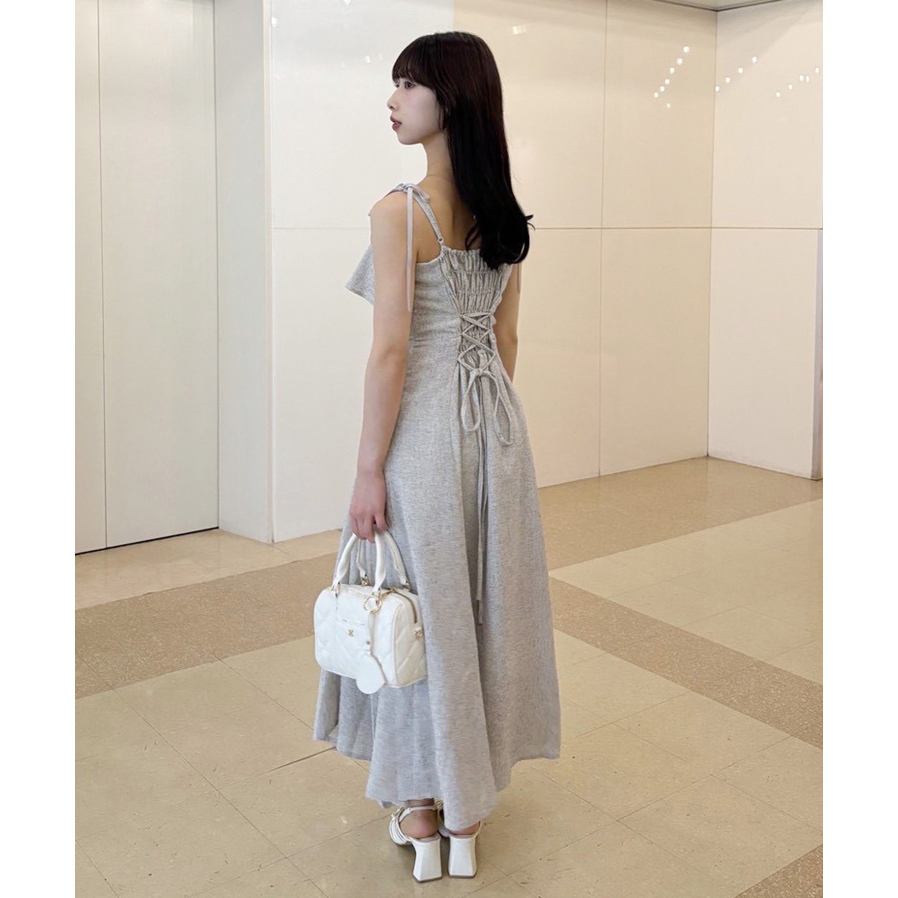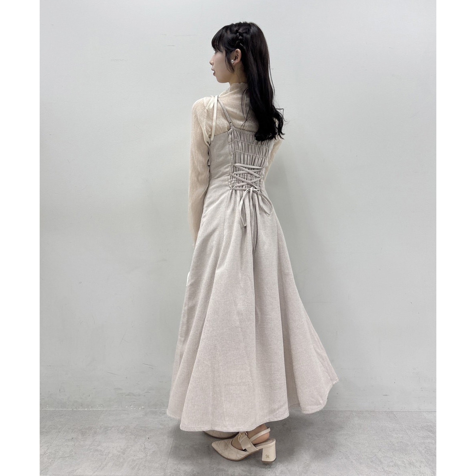 後ろレースアップデザインがポイントのフレアロングワンピース。
