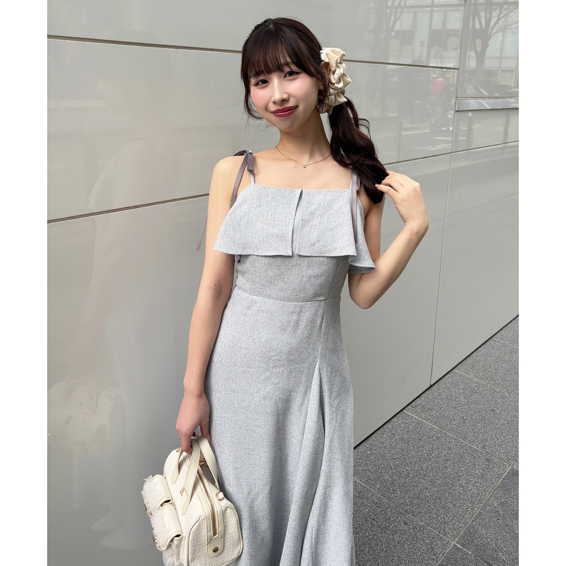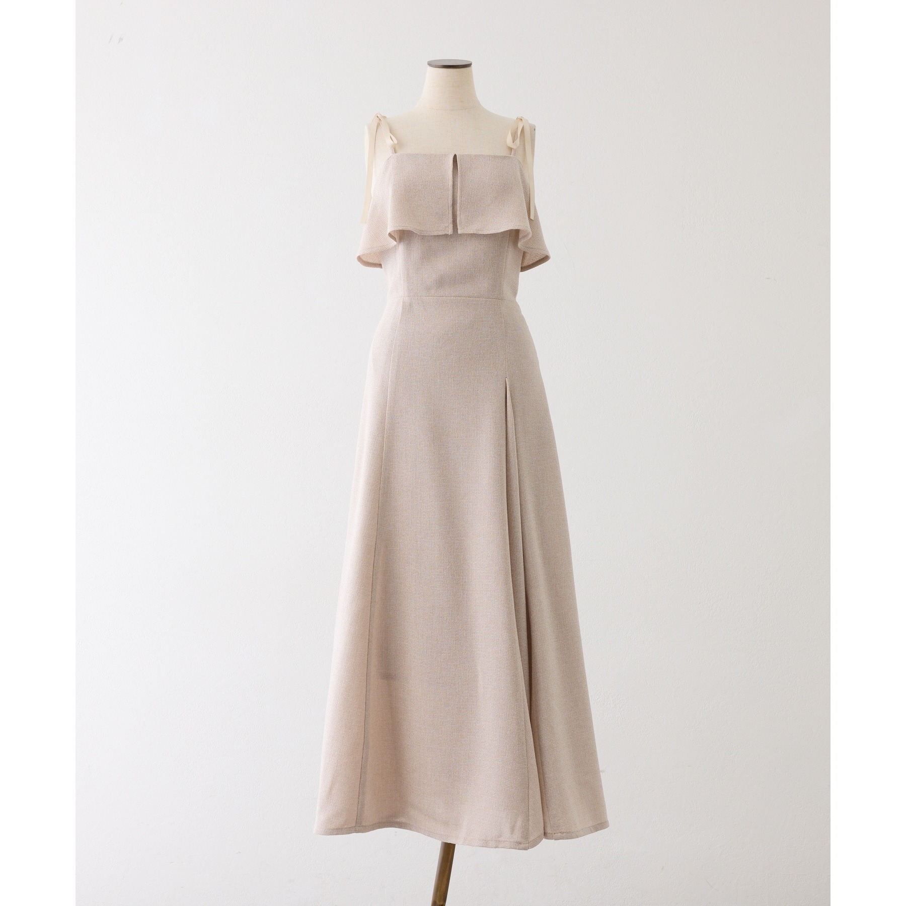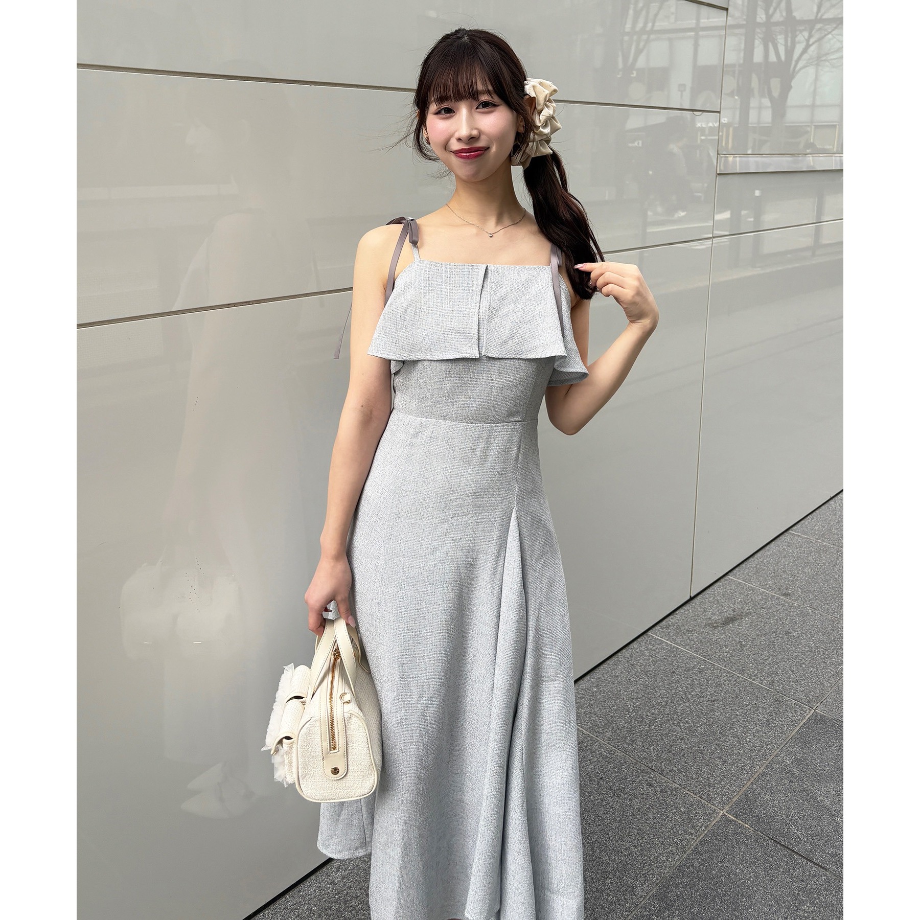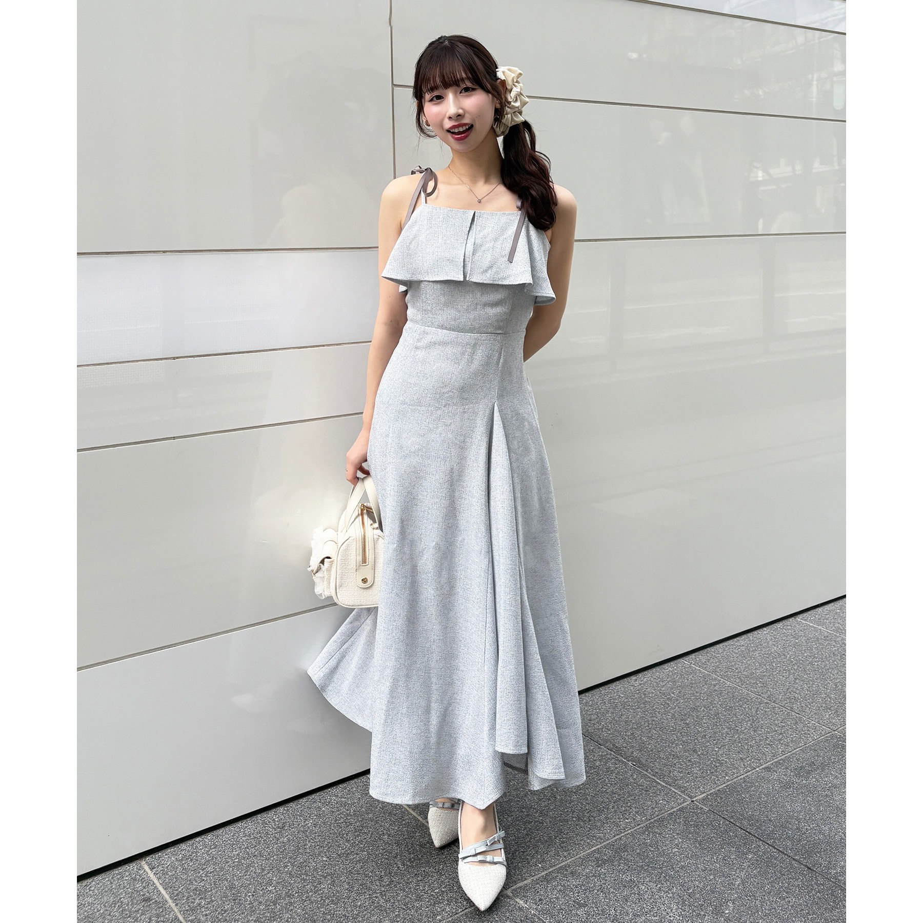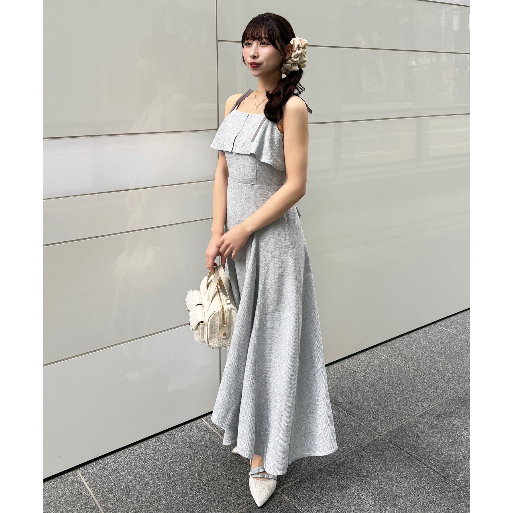後ろレースアップデザインがポイントのフレアロングワンピース。