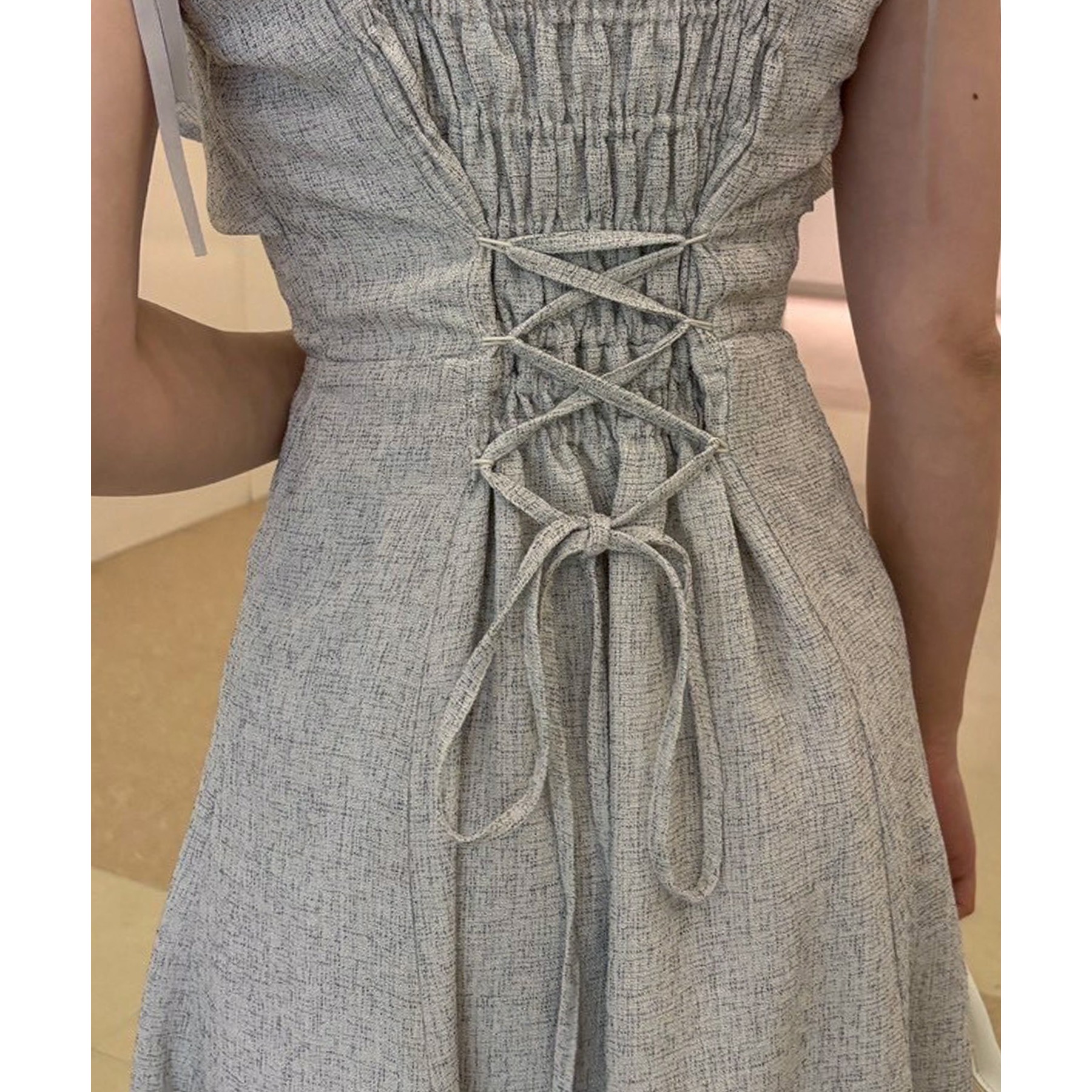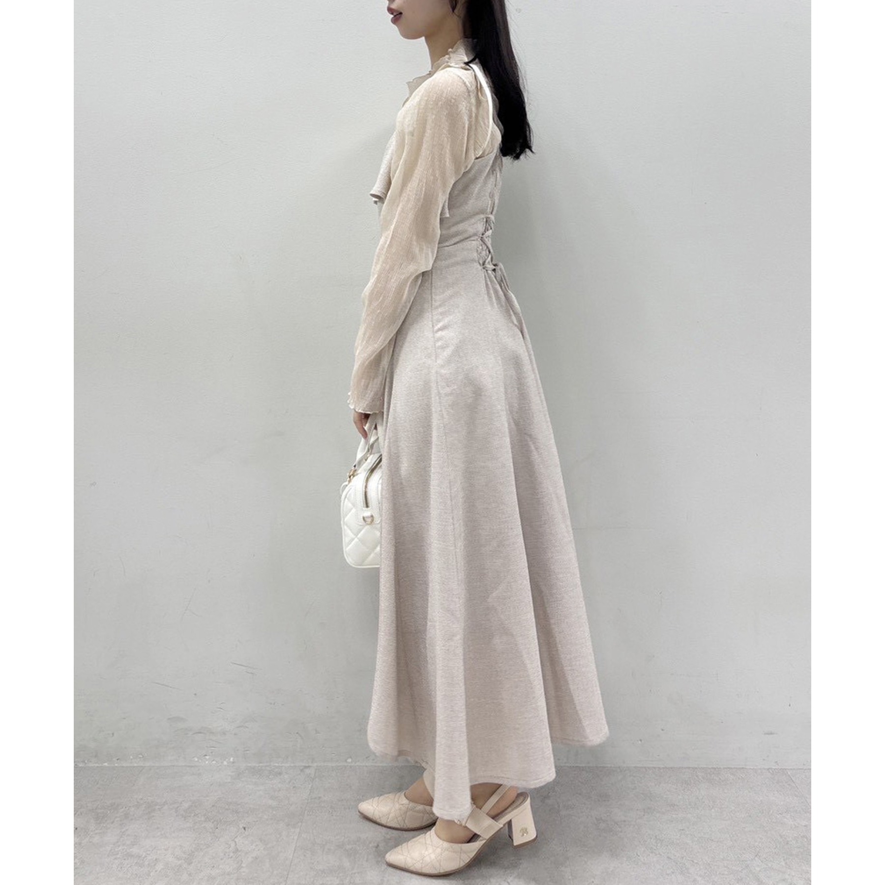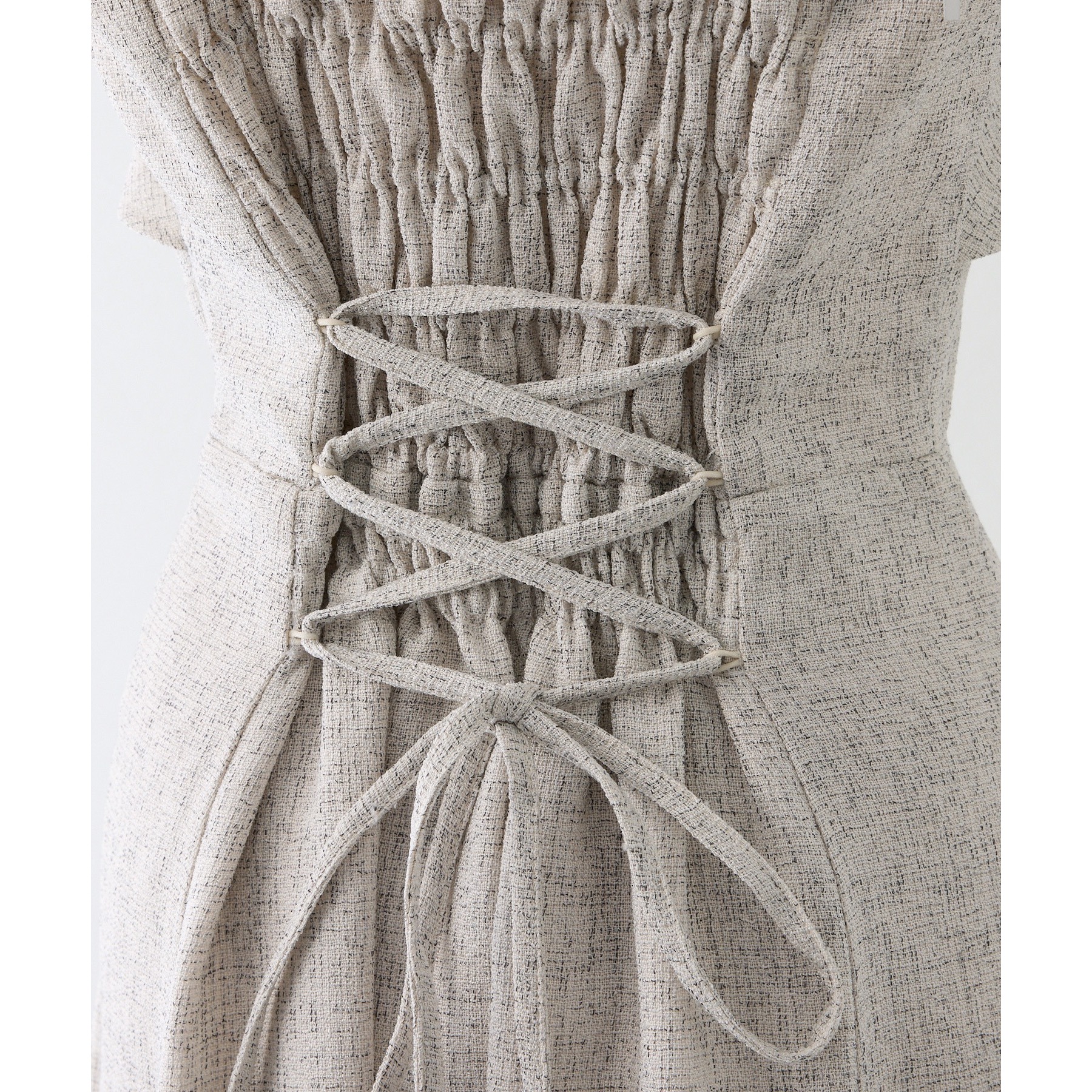 ウエスト部分のレースアップで、すっきりとした細見えシルエットが叶います。