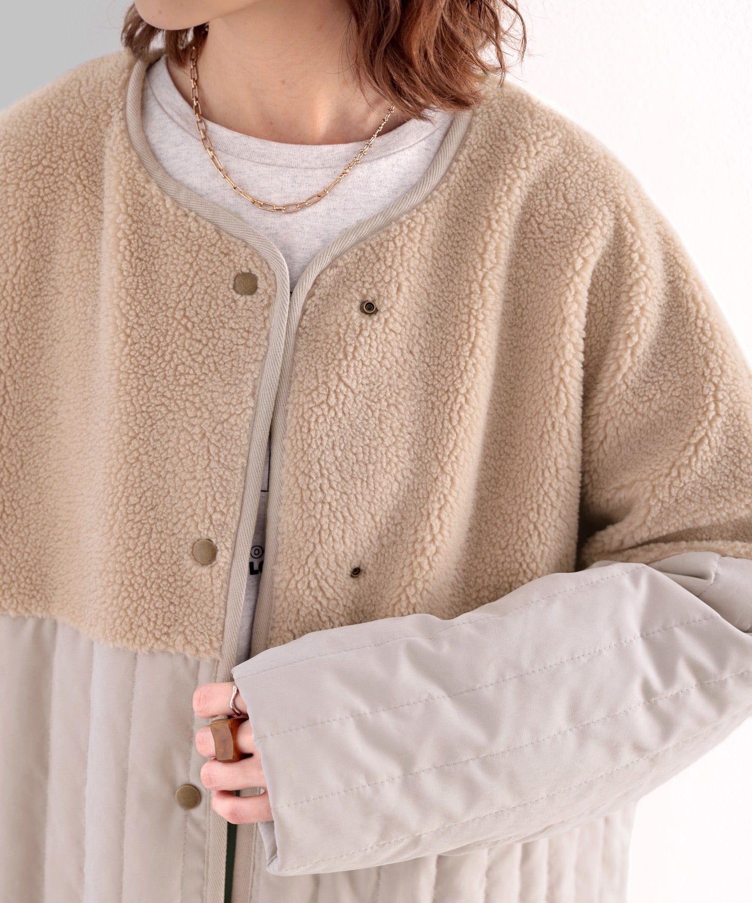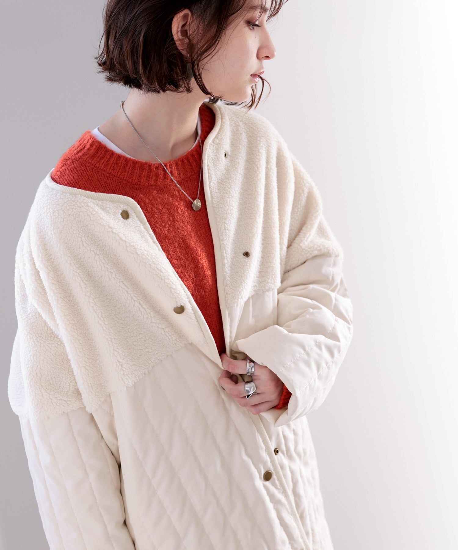 サイズ感にボリュームがありつつも、ボアの切り替えと縦ラインキルトですっきり見え。