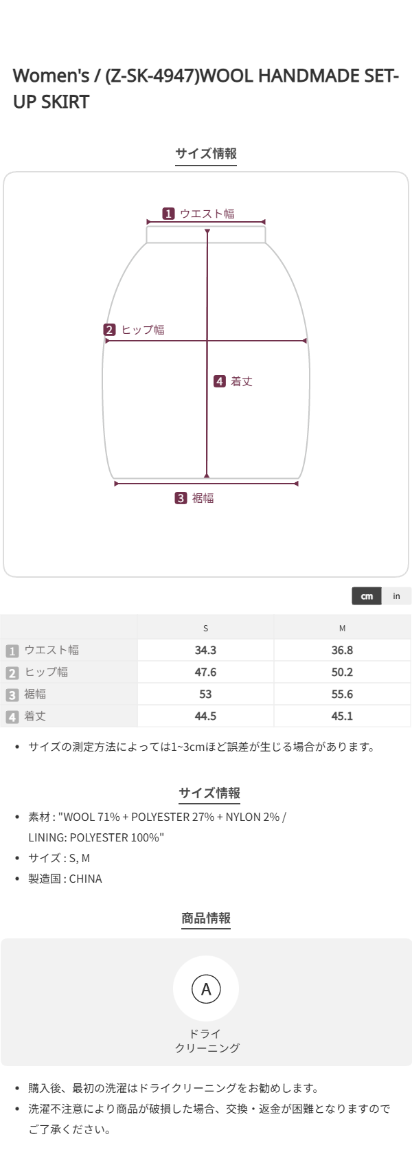 (Z-SK-4947)WOOL HANDMADE SET-UP SKIRT