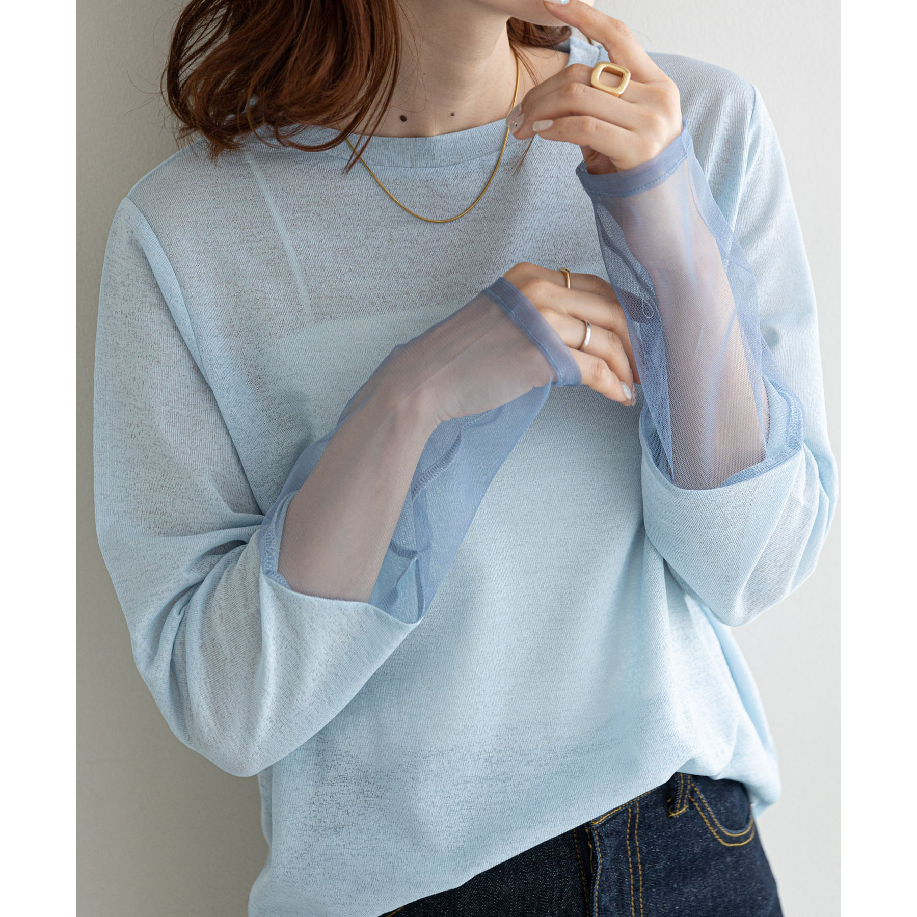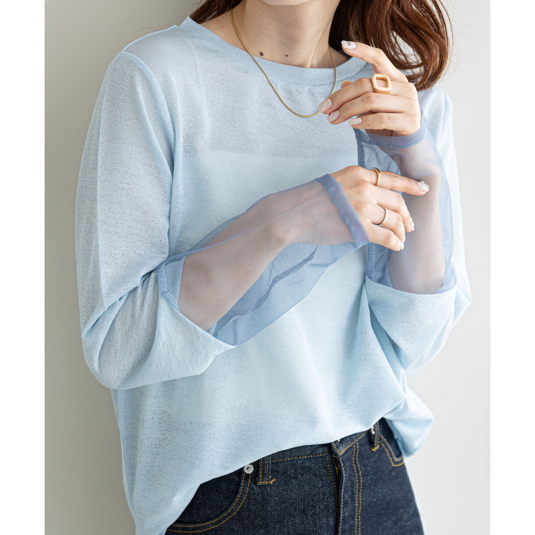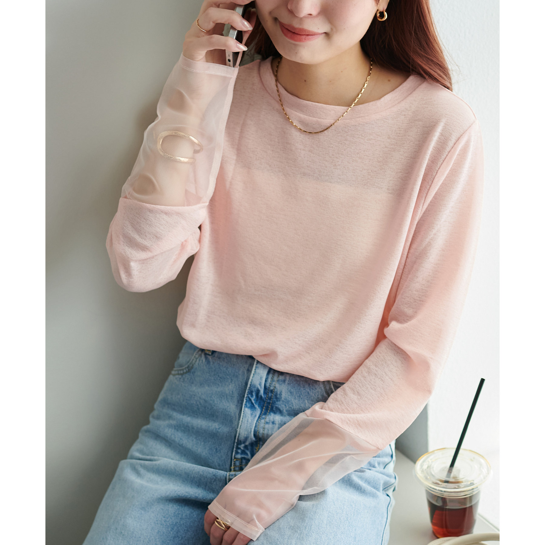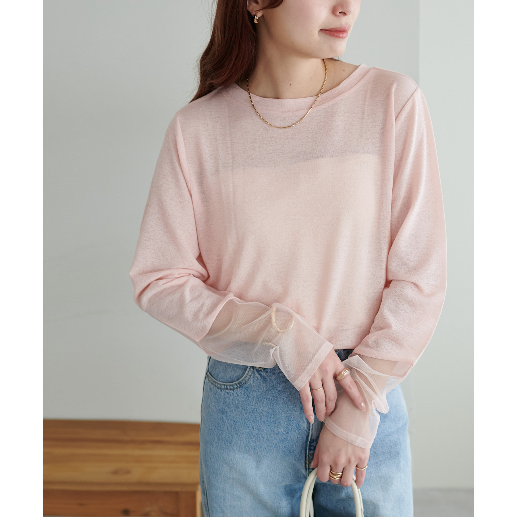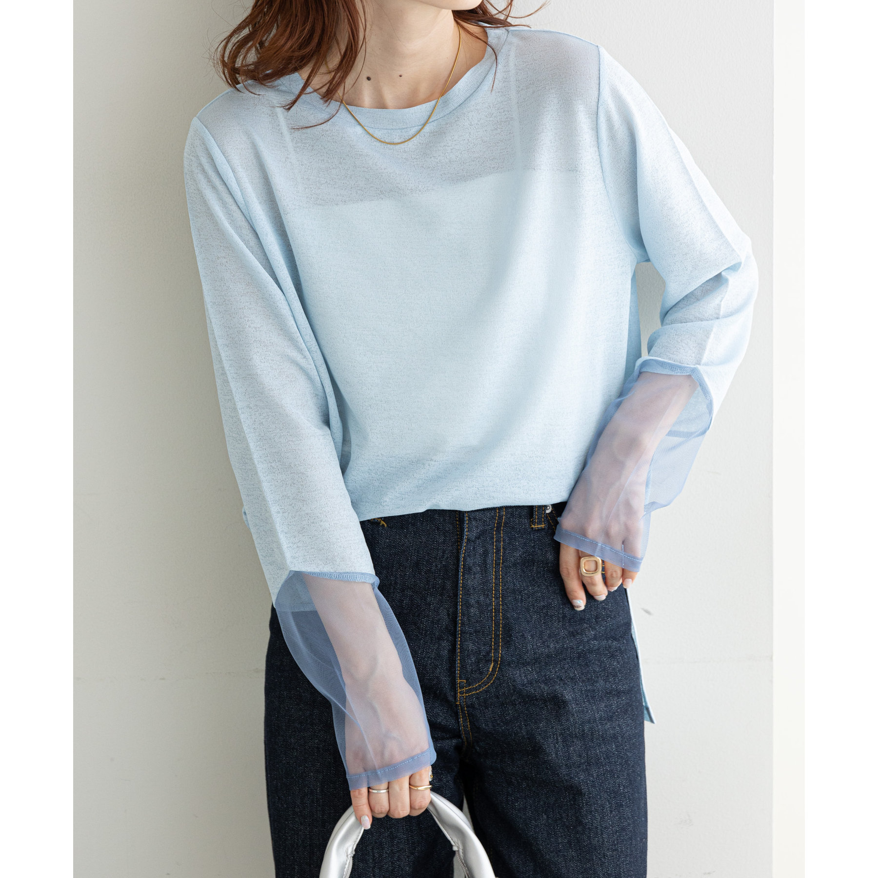 【新色追加!/全16色展開】シアー袖切替プルオーバー≪WEB限定カラーあり≫