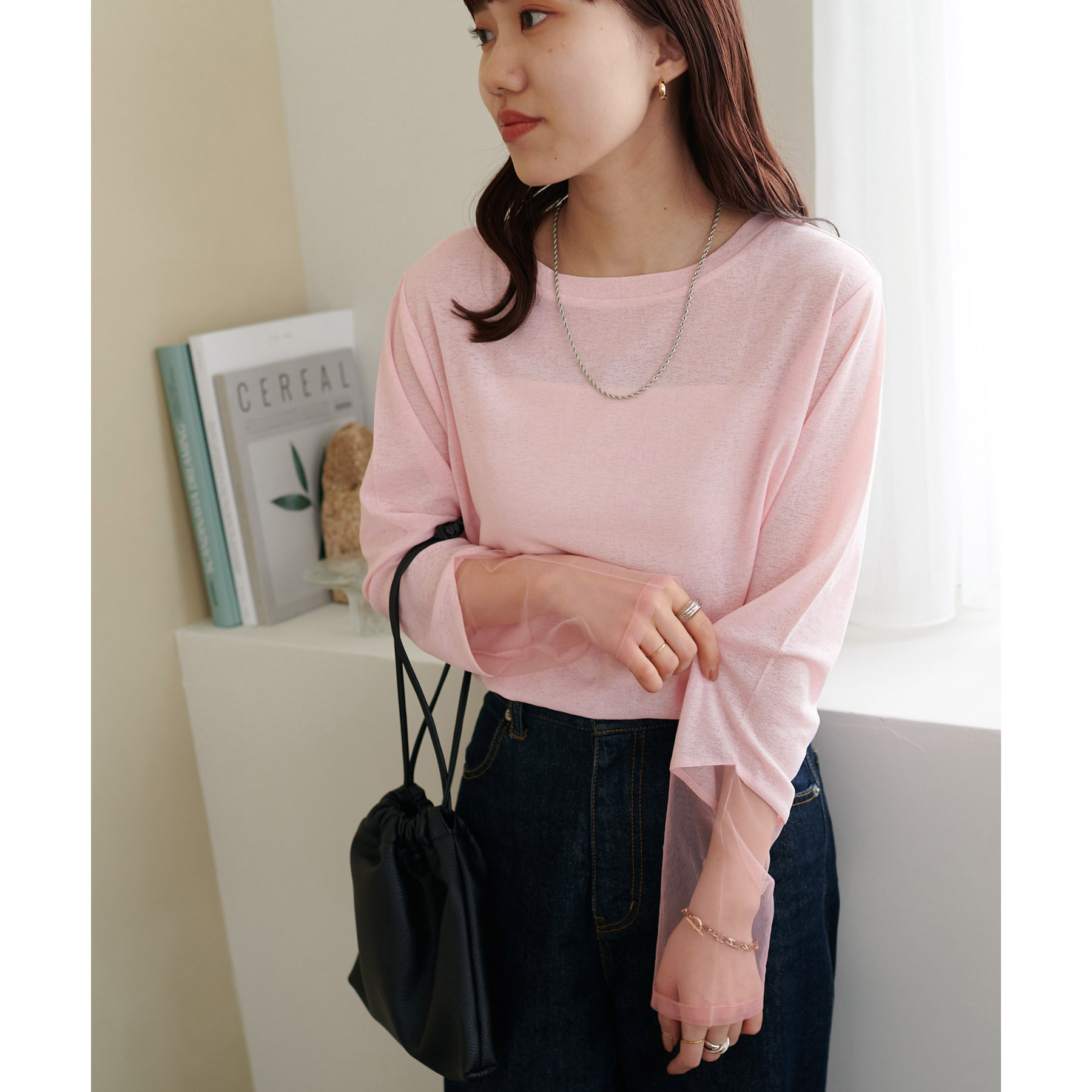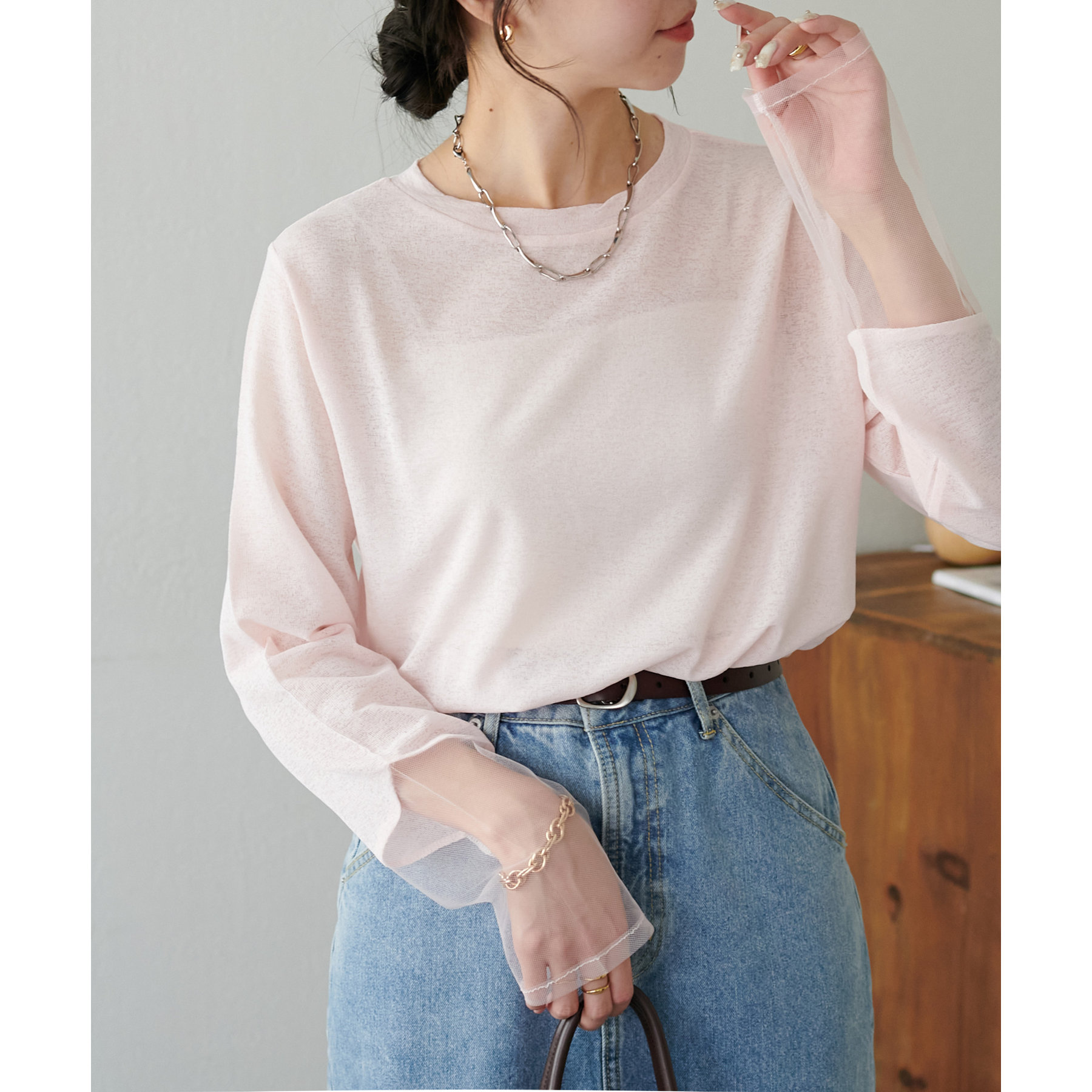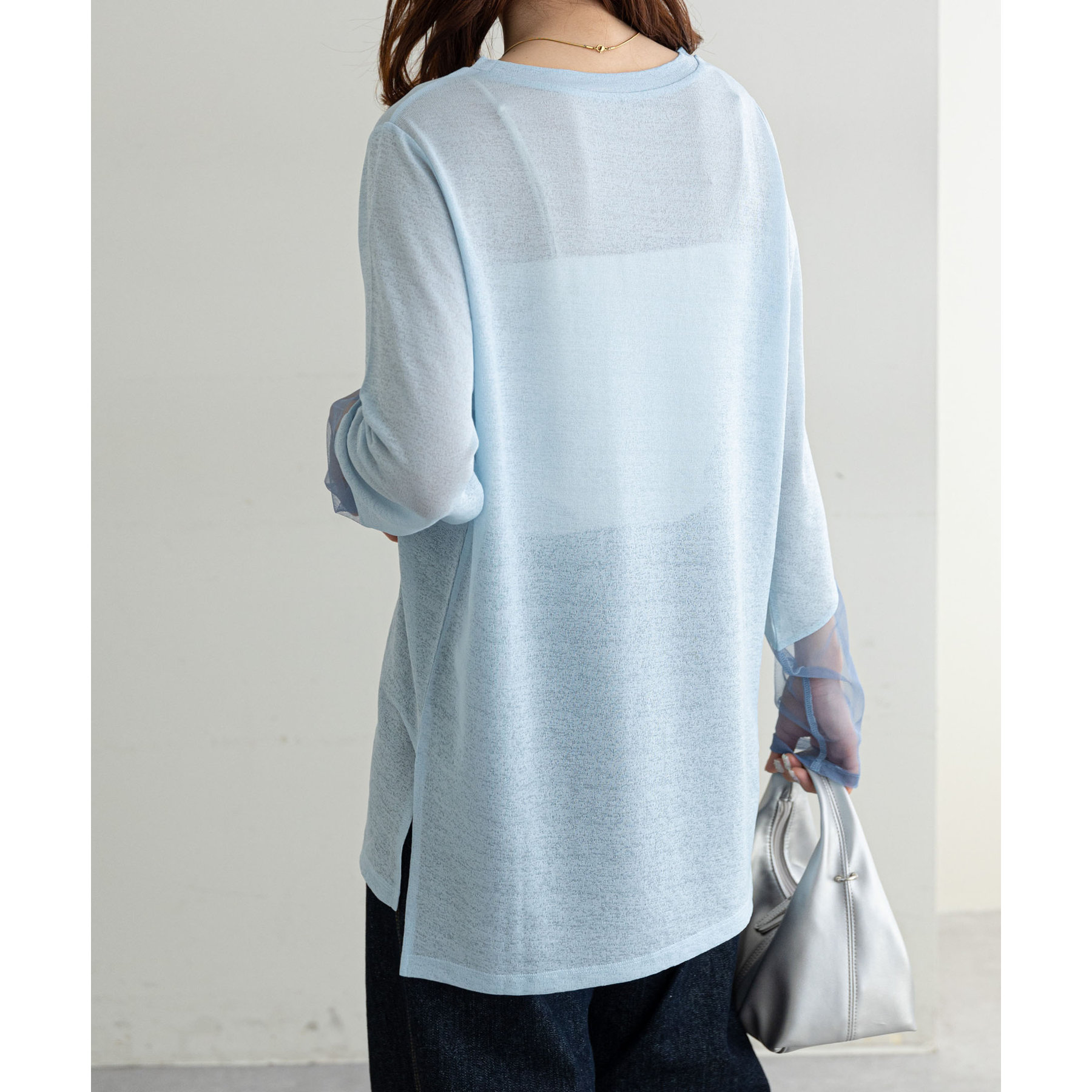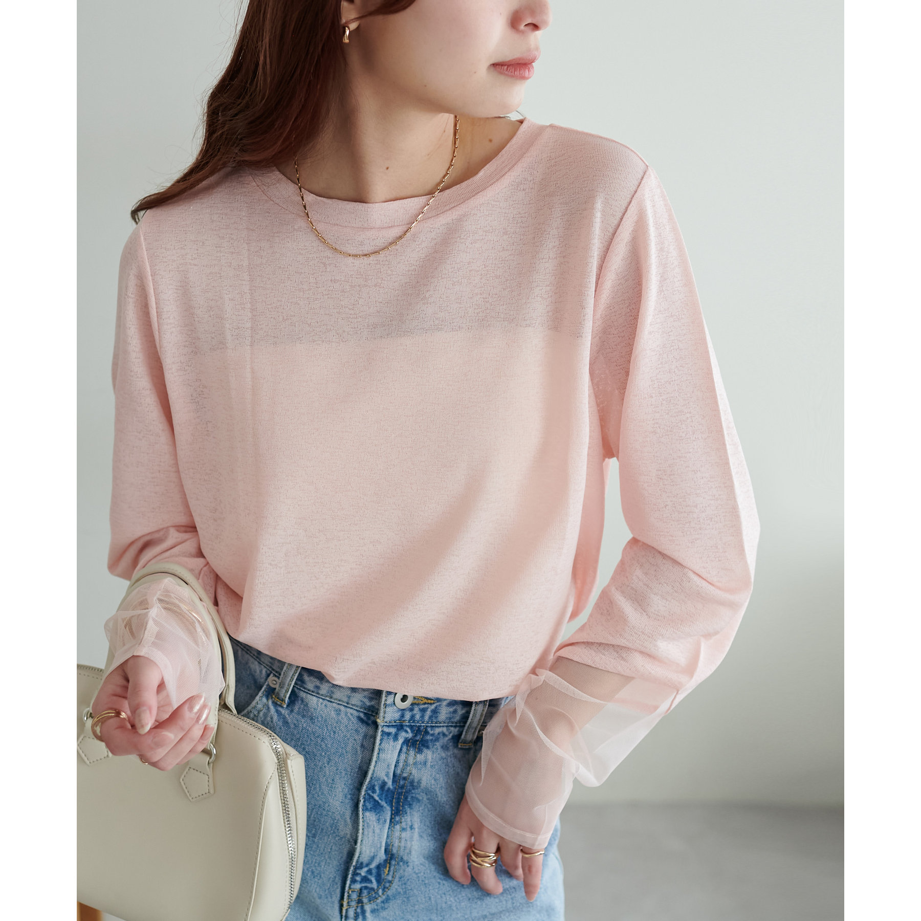 【新色追加!/全16色展開】シアー袖切替プルオーバー≪WEB限定カラーあり≫