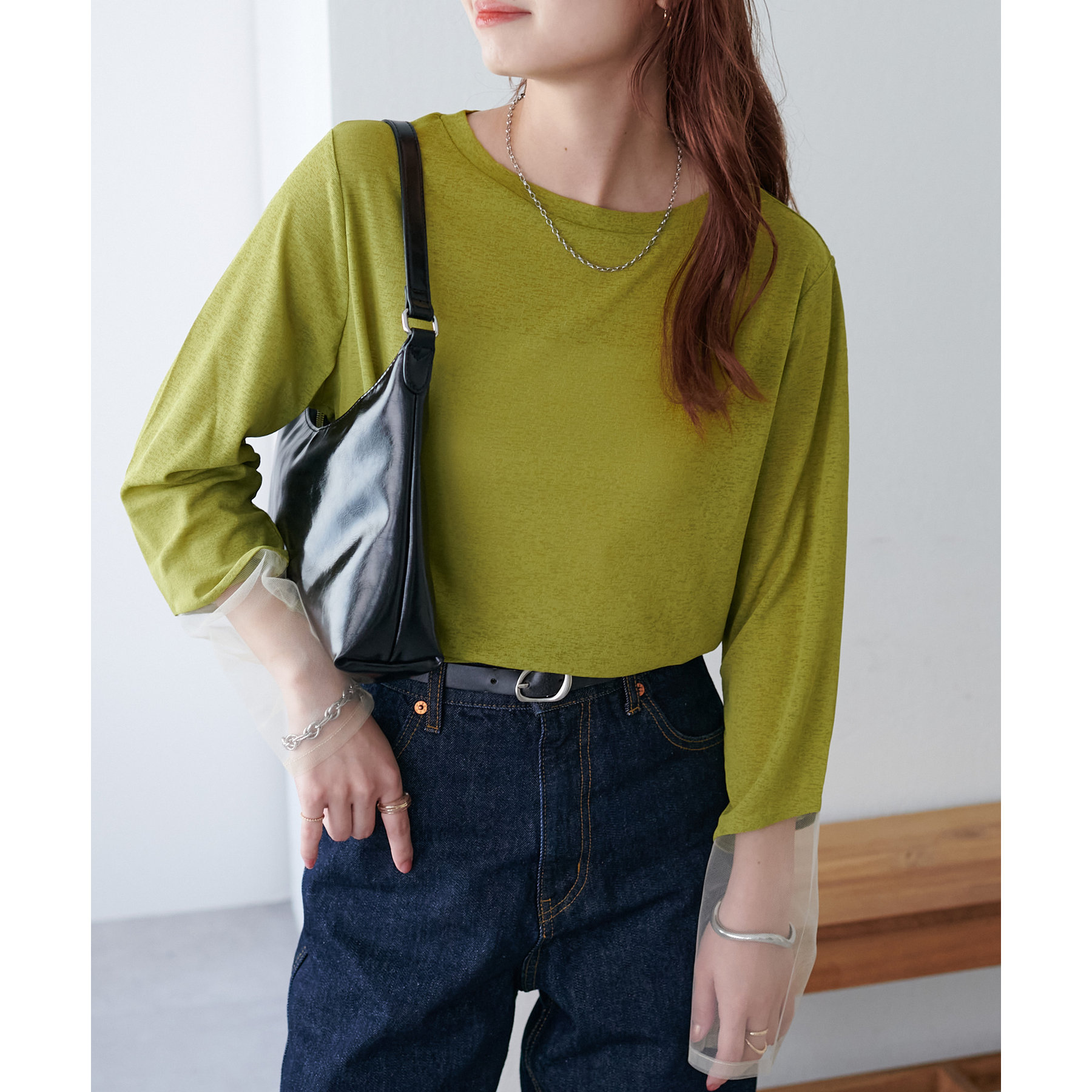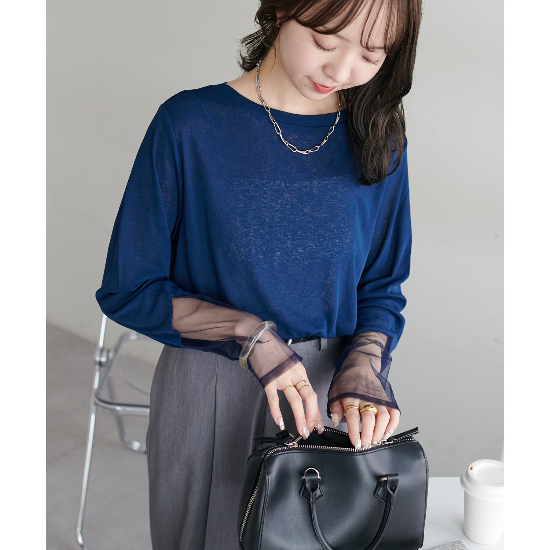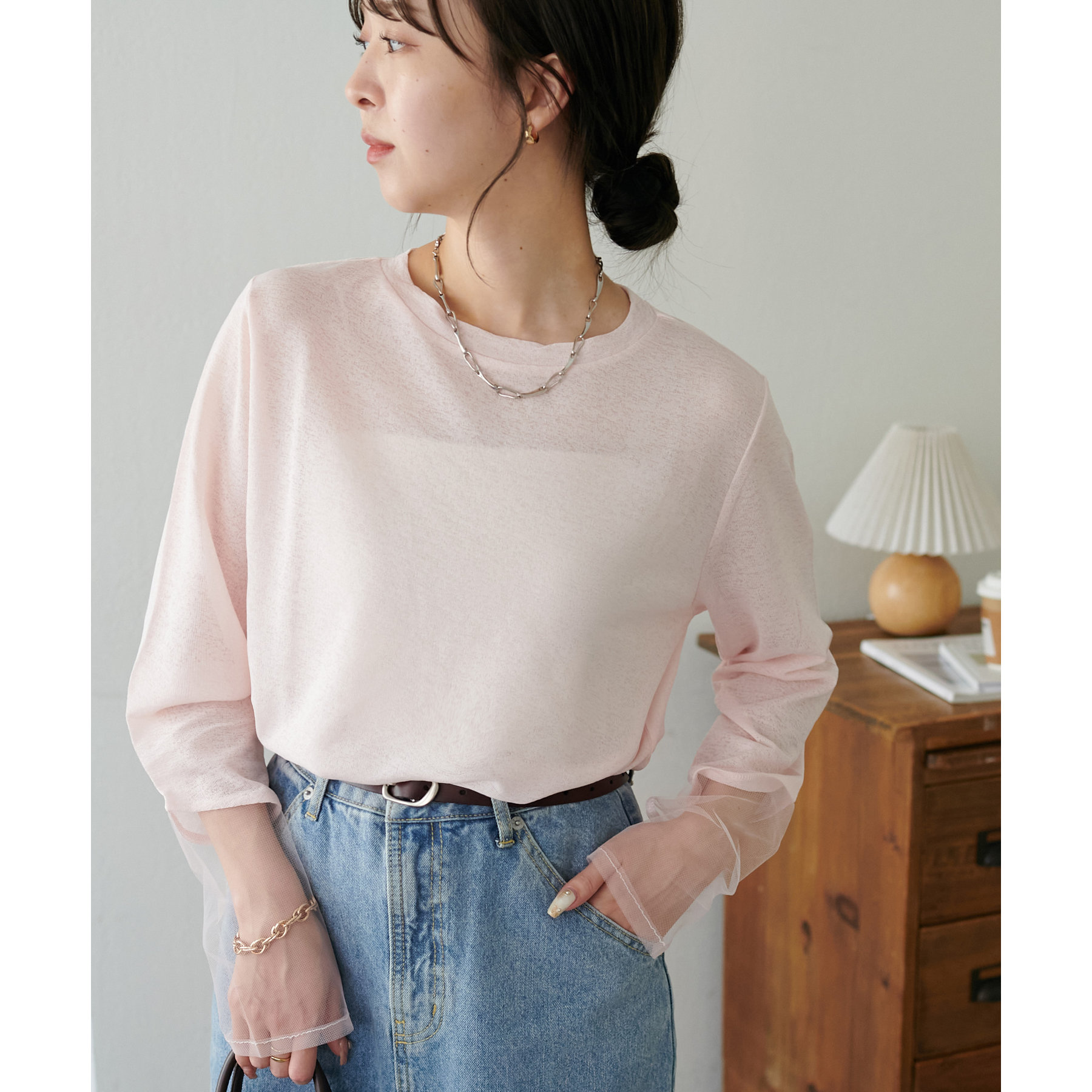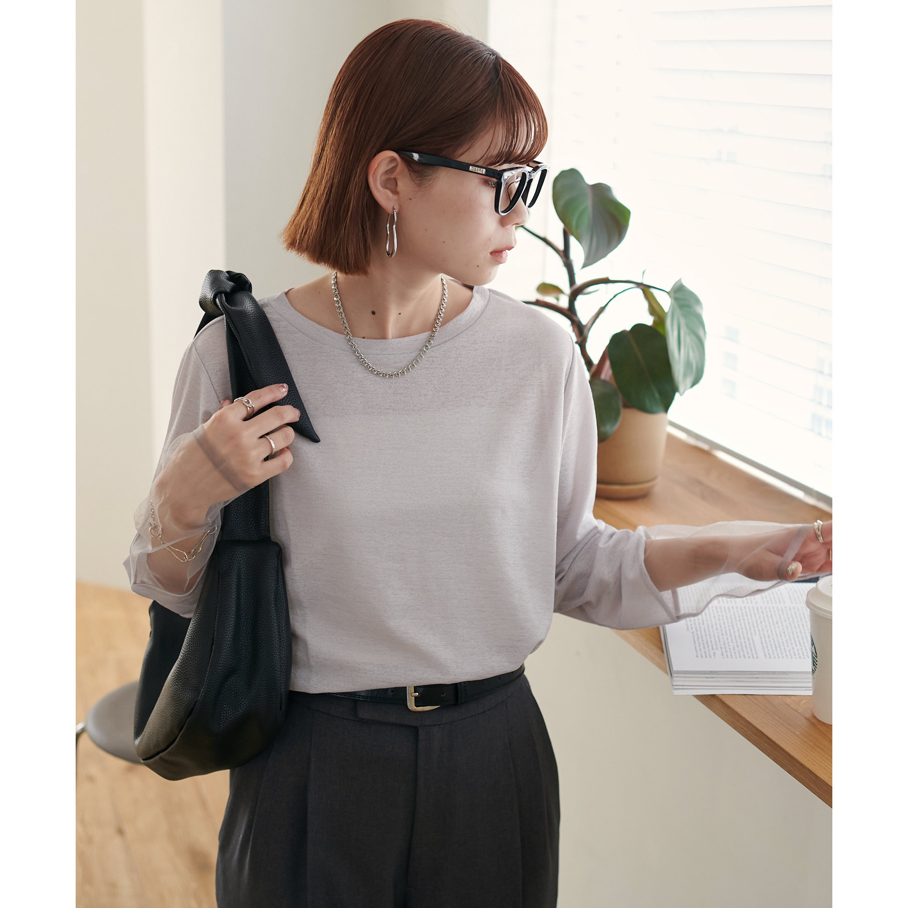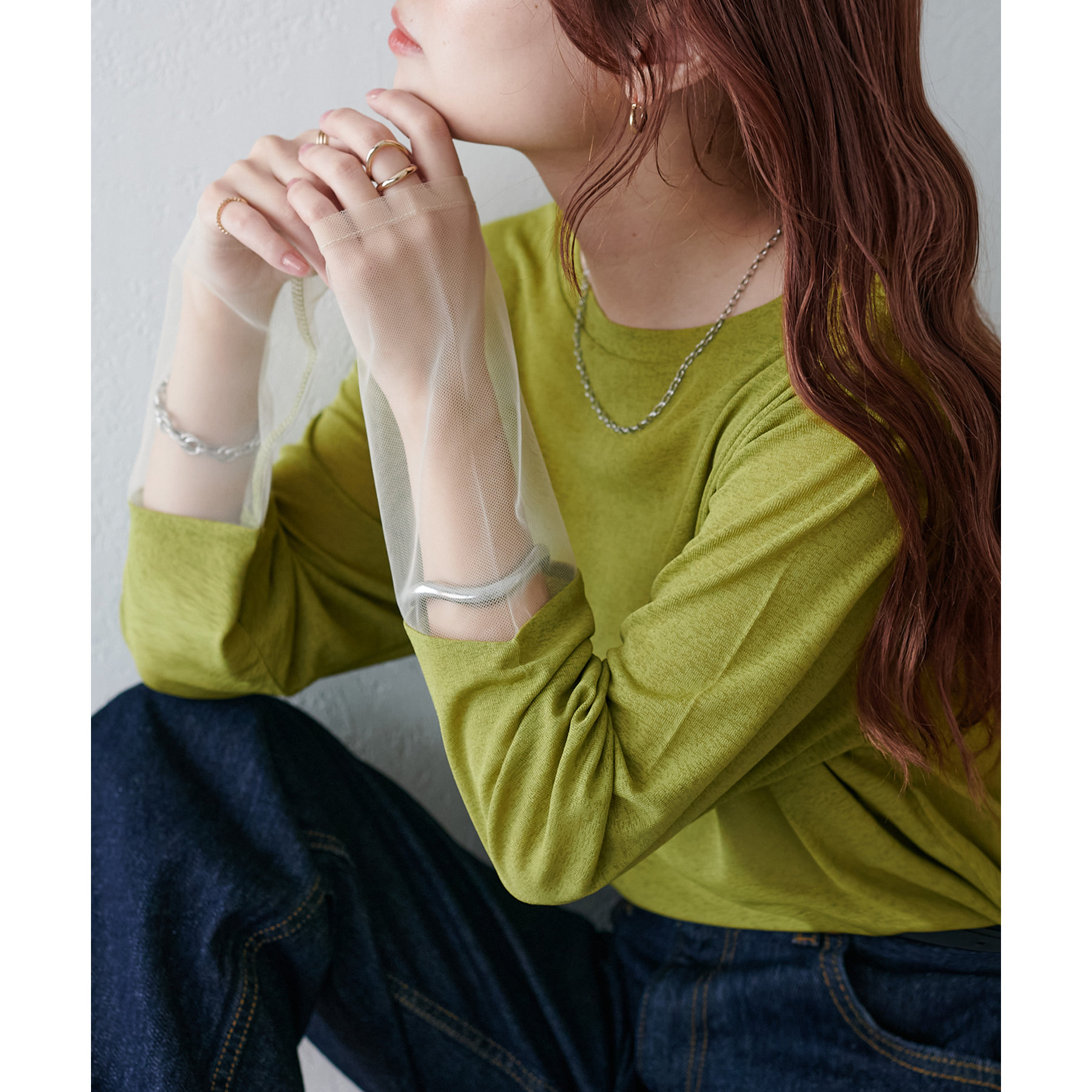 【新色追加!/全16色展開】シアー袖切替プルオーバー≪WEB限定カラーあり≫