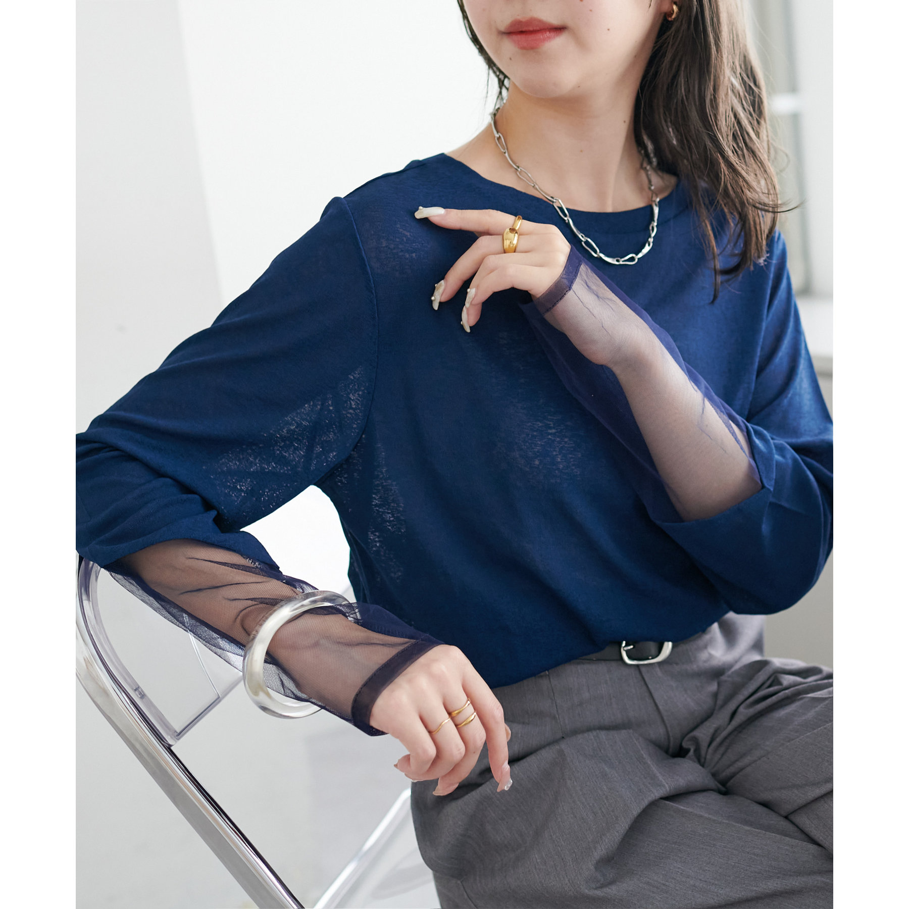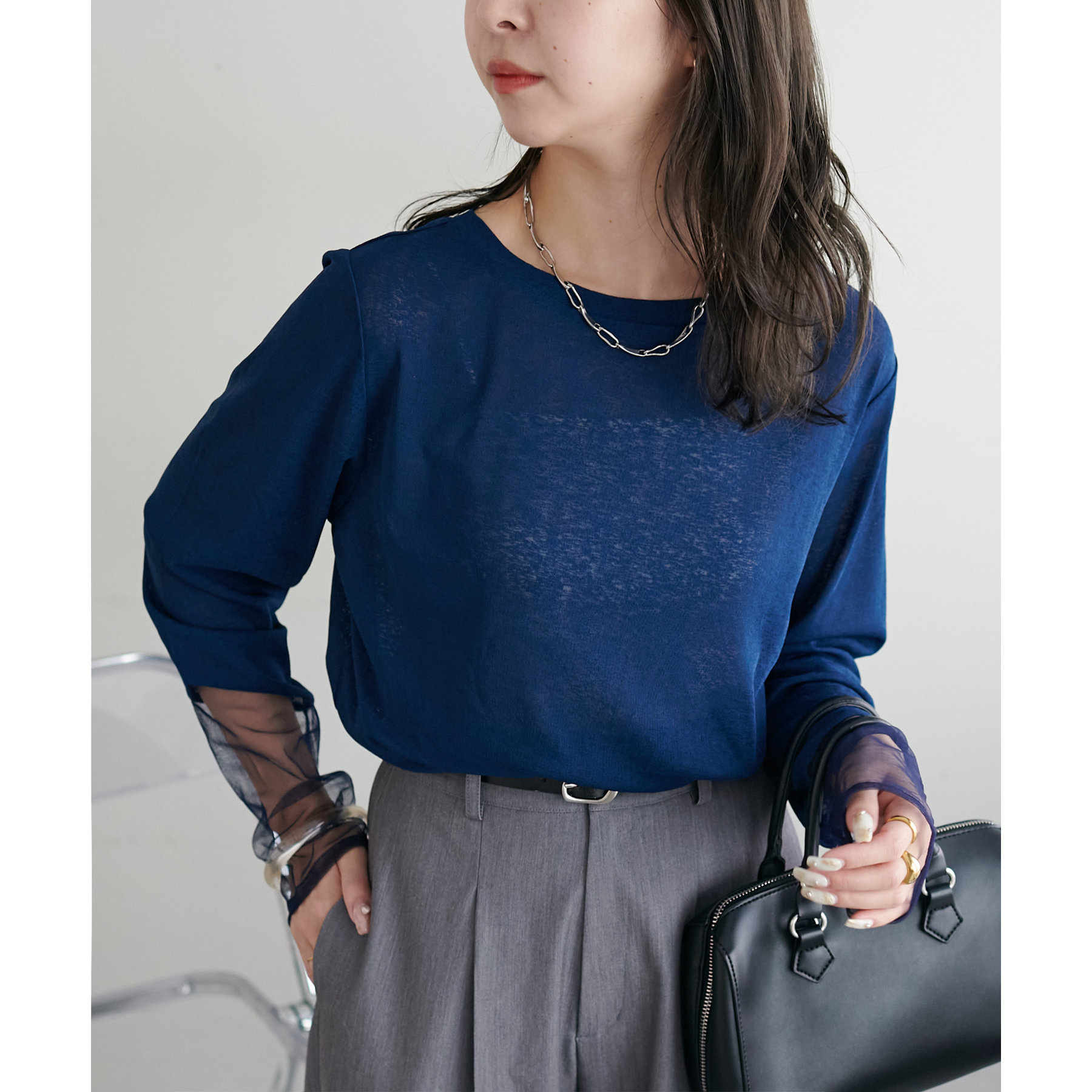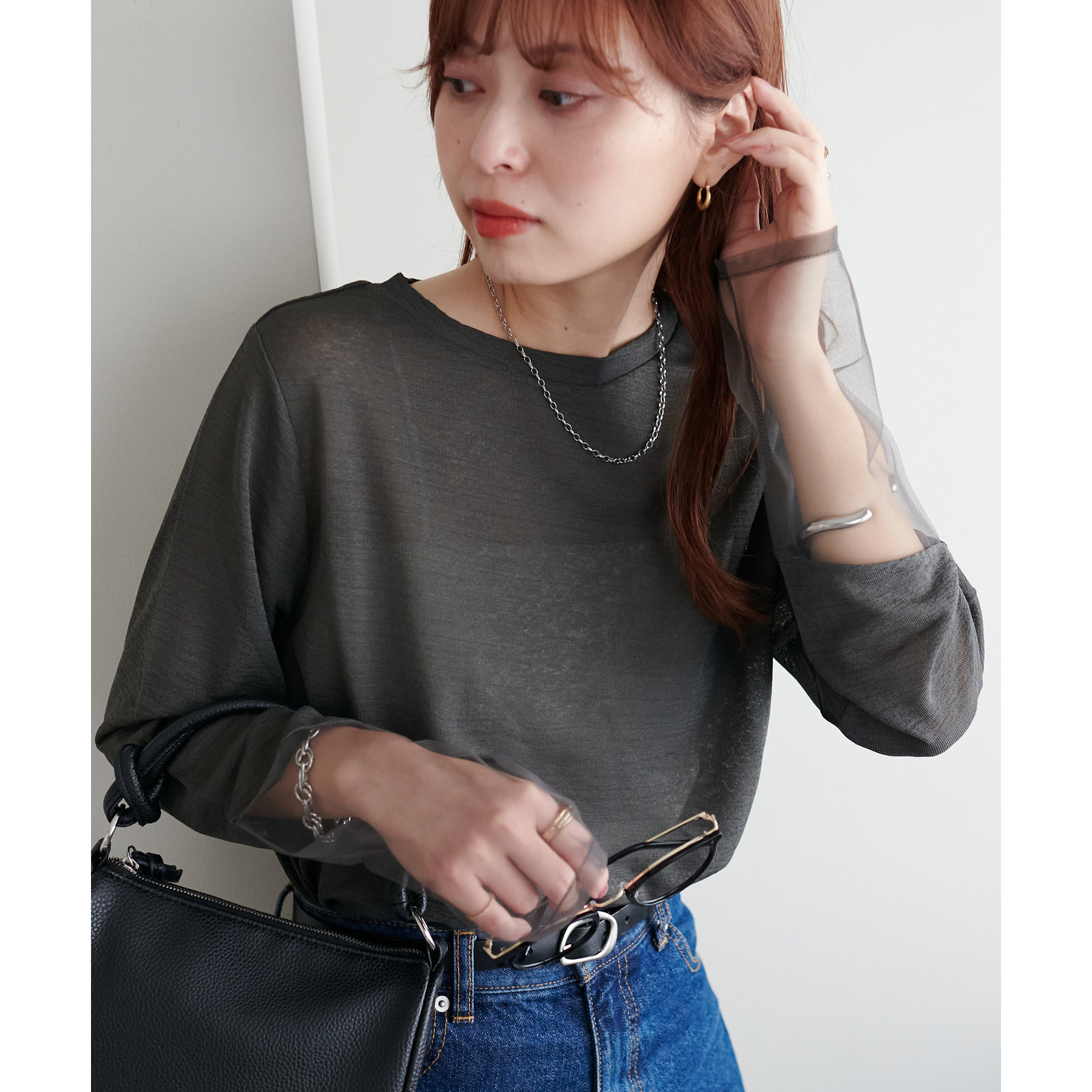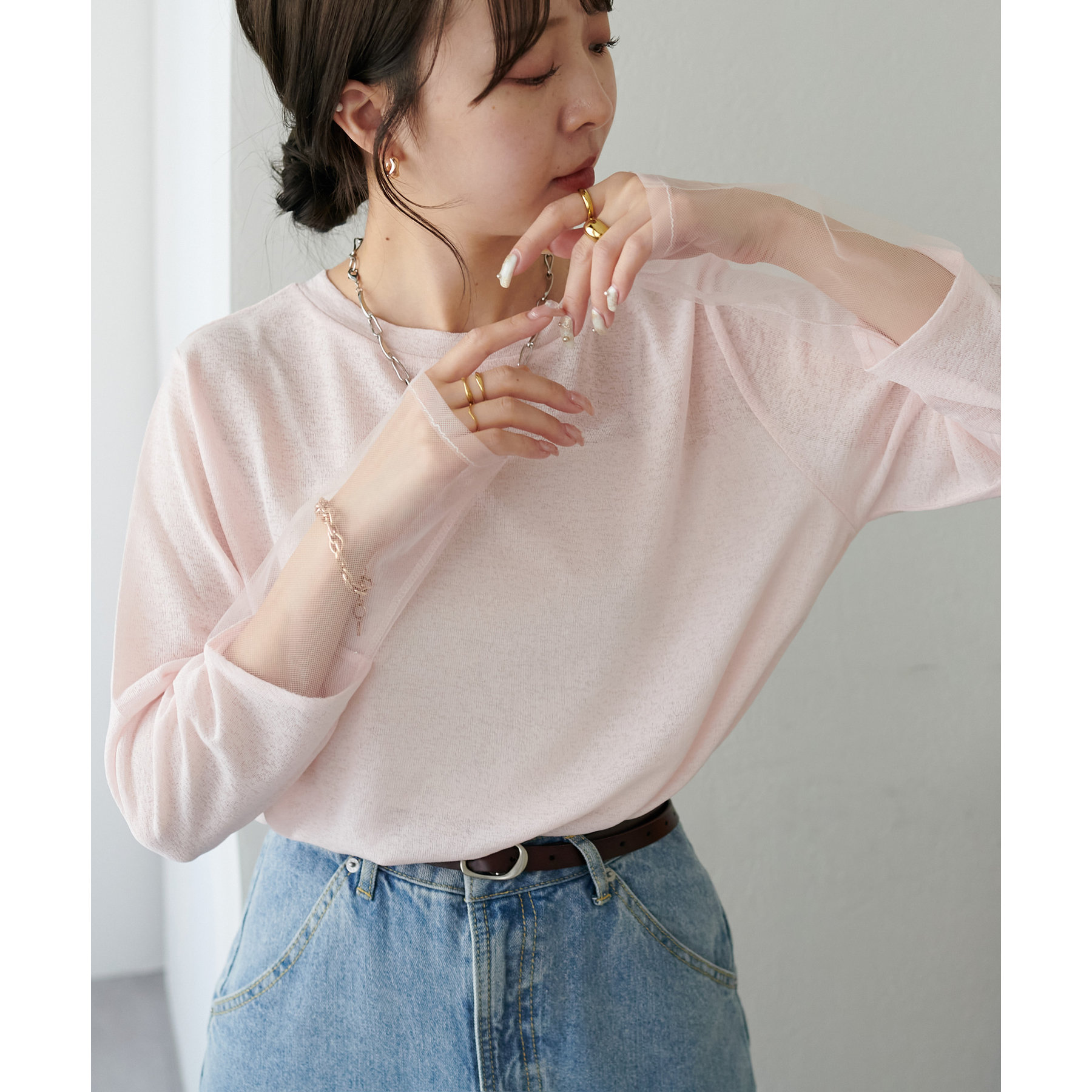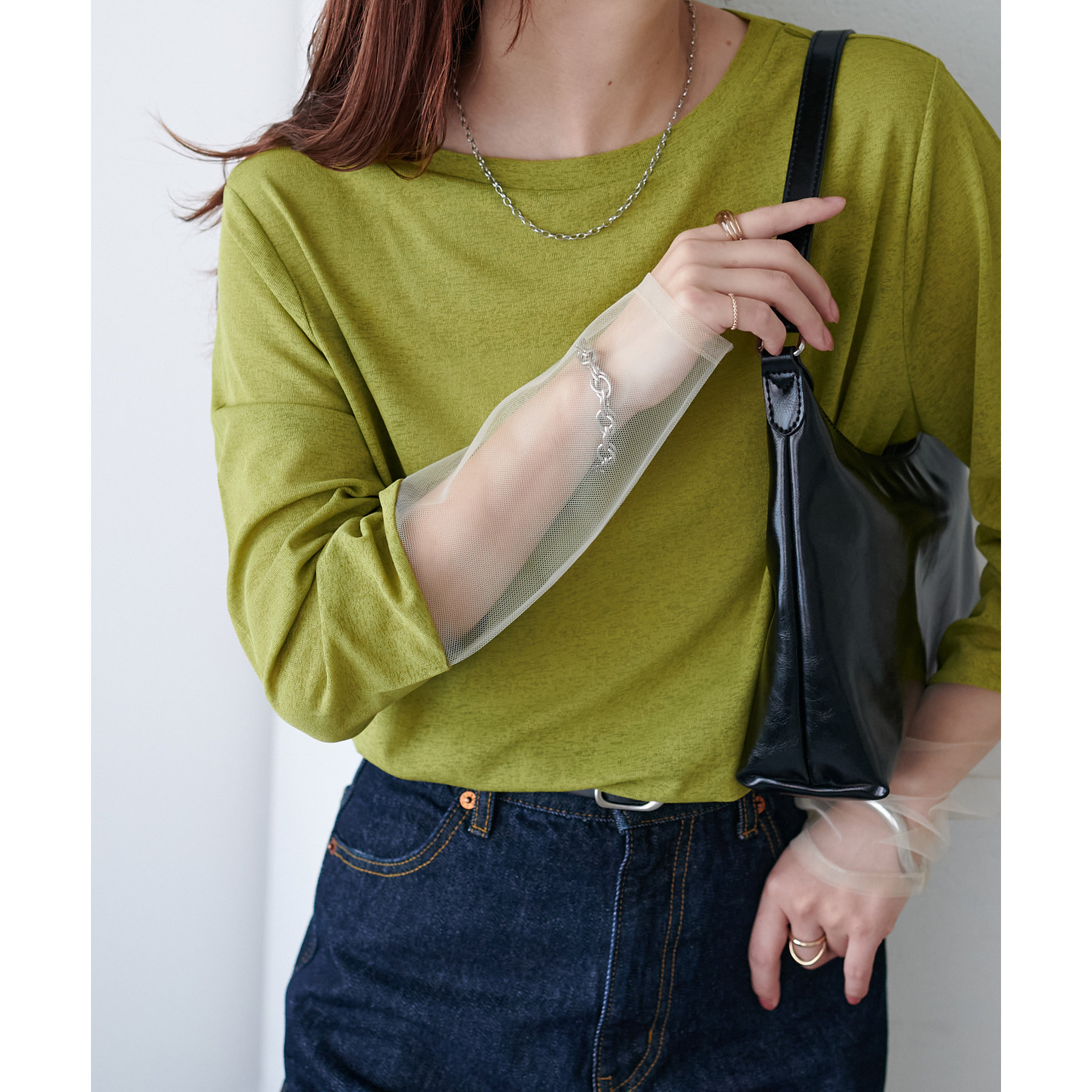 【新色追加!/全16色展開】シアー袖切替プルオーバー≪WEB限定カラーあり≫