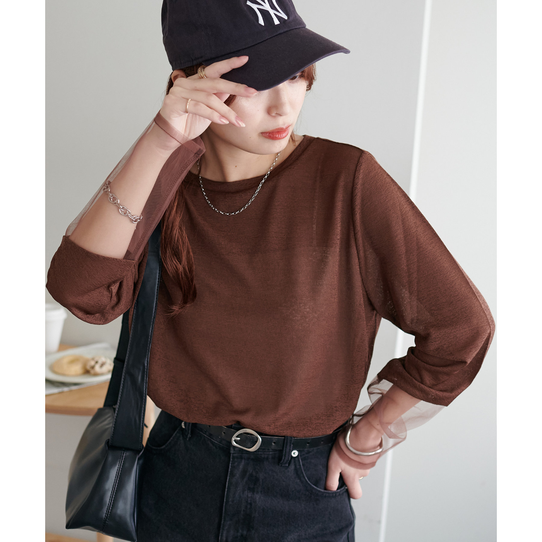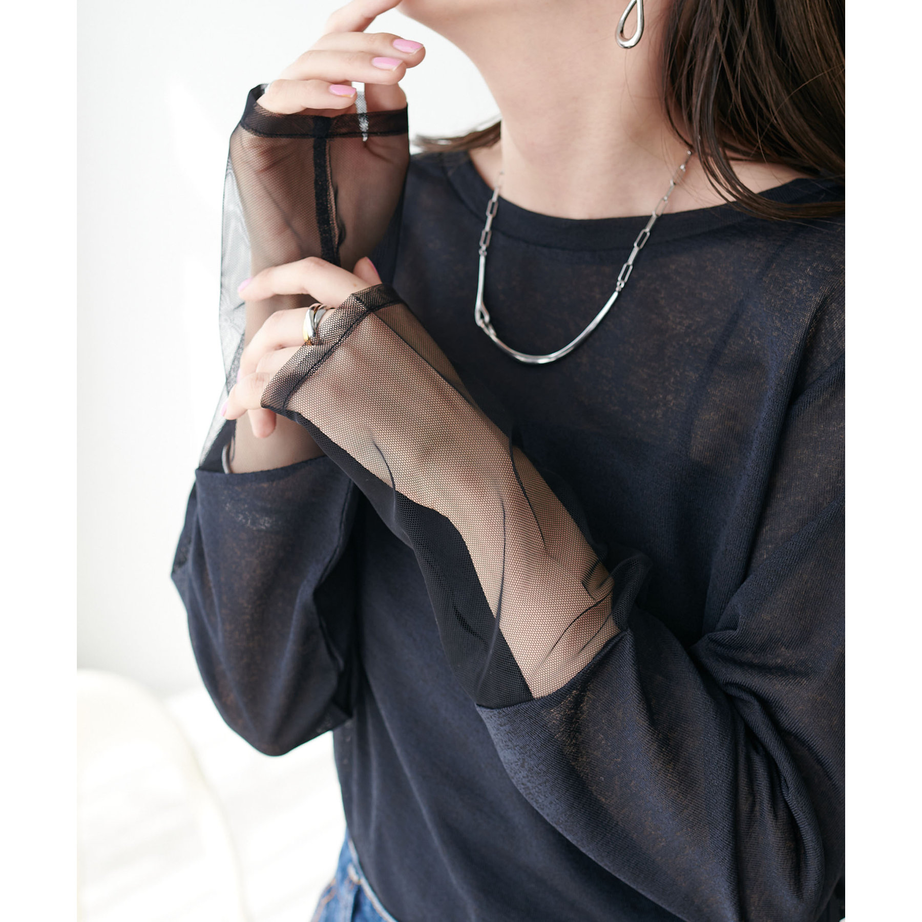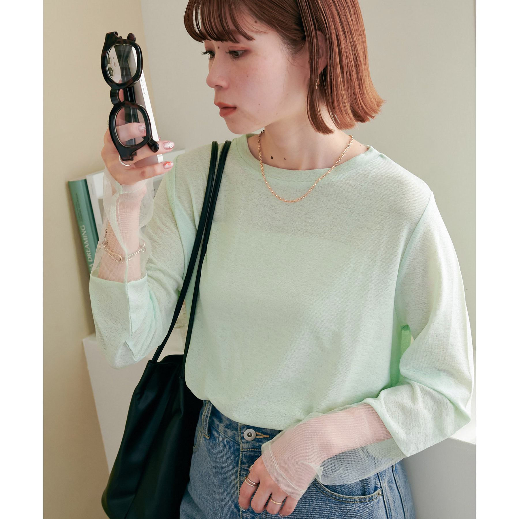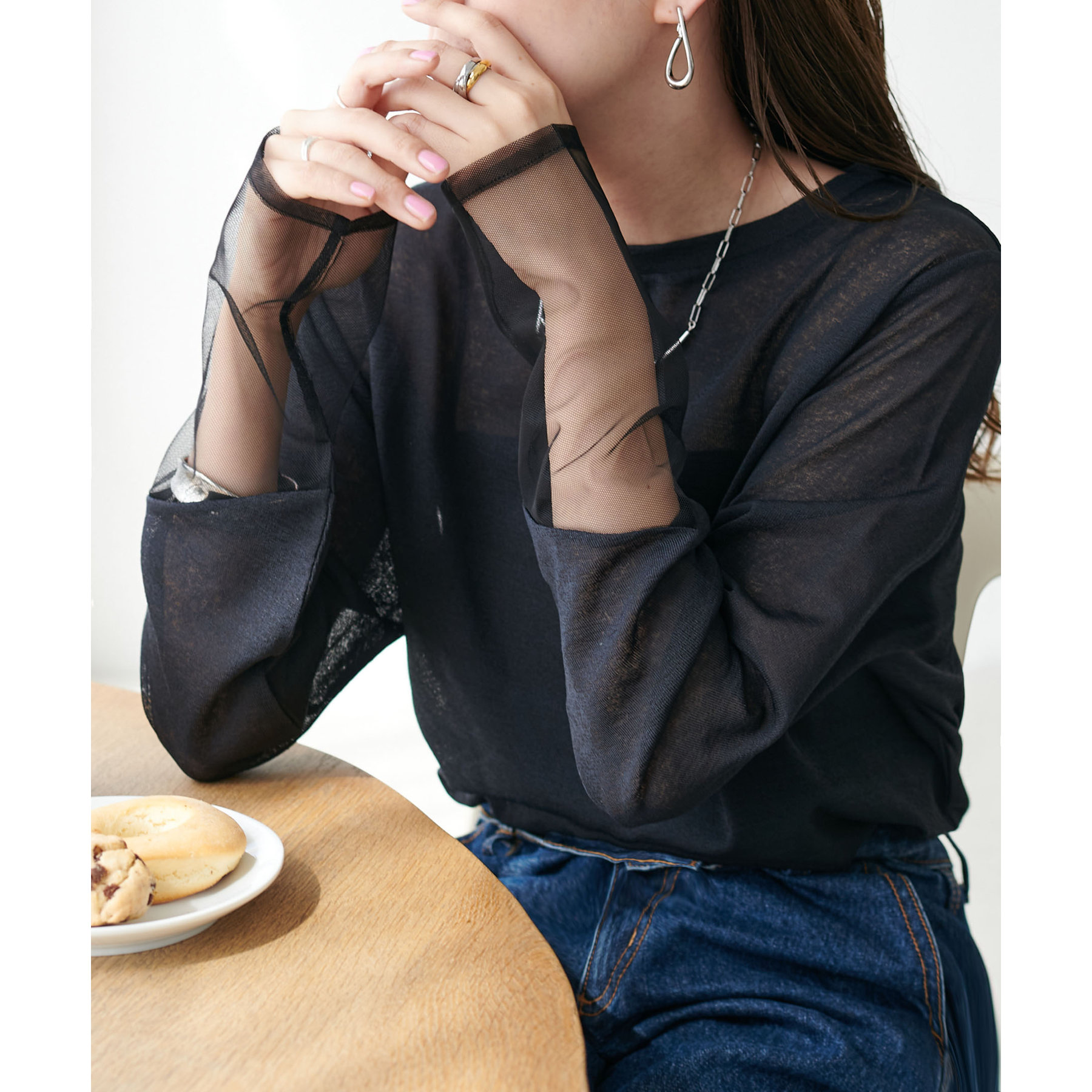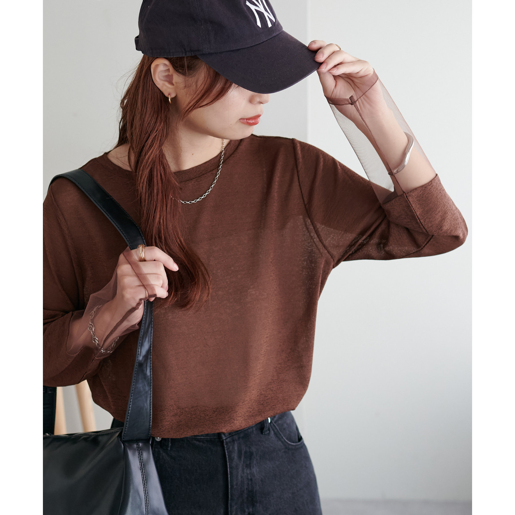 【新色追加!/全16色展開】シアー袖切替プルオーバー≪WEB限定カラーあり≫